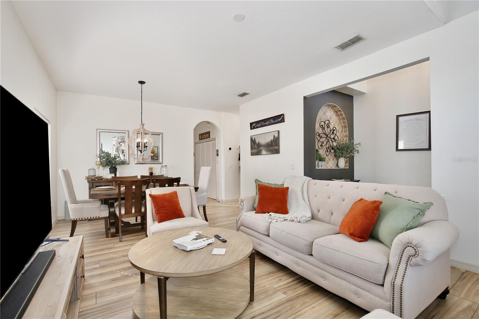 FLEXIBLE Floor plan. EXCELLENT Condition. EXCEPTIONAL Price!. This 4-bedroom, 2-bath SINGLE-STORY perfect for MULTI-GENERATIONAL FLEXIBLE Living in Beacon Park near LAKE NONA WEST is priced to MOVE and will not last! Take the 3D tour linked to the listing, then schedule your showing IMMEDIATELY so you don’t miss out. Before you get out of your car you'll notice the welcoming MANICURED LANDSCAPING and NEWER ROOF fitted with SOLAR. Step in to the FOYER and those of you who follow interior design will quickly notice the BEAUTIFULLY UPDATED interior transformed top to bottom from yesterday’s gray palette into TODAY's Warm, Natural Wood tones aligning with the Fresh JAPANDI NATURAL STYLING. The open BRIGHT LIVING AND DINING areas flow effortlessly into a LIGHT-FILLED KITCHEN, DINETTE & FAMILY ROOM. The kitchen is a SHOWSTOPPER with its UPDATED Natural JAPANDI inspired Solid WOOD HAUZI CABINETRY; luxurious easy care QUARTZ Counters; DESIGNER-BESPOKE Backsplash; EXTRA PREP Space and ISLAND BAR seating; OVERSIZED PANTRY and Dedicated BARISTA COUNTER-- luxury additions typically found only in pricier custom built homes. A SMART 2-Way SPLIT floor plan offers privacy for the OVERSIZED King-Sized PRIMARY Suite—complete with a LARGE WALK-IN Closet and REFRESHED Spa-like bath. The FAMILY ROOM with sliders to the covered porch provides FLEXIBILITY. Use as second gathering area for the whole family or do what you've been dreaming of and use the space for ZEN-ZONES for each family member. Off the family room THREE ADDITIONAL BEDROOMS share a SPACIOUS SECOND BATH with LOADS of COUNTER SPACE. USE THE SLIDERS and step outside to a COVERED PORCH and VINYL PRIVACY FENCED YARD perfect for pets and a blank slate for your creativity. You'll appreciate the extra touches like the DROP ZONE and EXTRA STORAGE CLOSETS AND CABINETS by the LAUNDRY ROOM and garage entrance. BETTER THAN NEW BUILDS this home includes not just UPGRADED FINISHES found in pricey CUSTOM BUILT homes, but UPDATED LIGHTING, STAINLESS Appliances, WINDOW COVERINGS, Ceiling FANS, and SOLAR PANELS—SAVING YOU LITERALLY THOUSANDS! Don't worry- THESE SOLAR PANELS are NOT LEASED - NO HIDDEN COSTS lie ahead just REDUCED ELECTRICITY Bills. Along with all the fresh interior design updates MAJOR UPDATES already DONE for YOU include:• 2021 ROOF • 2021 SOLAR PANELS • 2019 WATER HEATER • 2017 HVAC • Garage with Nema 14-50 outlet for your EV plug. House has been FULLY INSPECTED, HVAC SERVICED and IT'S READY to GO! Enjoy Beacon Park HOA AMENITIES: POOL, PLAYGROUND, PARKS, GRILLS, PICNIC BENCHES, EXTENSIVE SIDEWALKS and Orange County's A-rated schools including Stonewyck Elementary just down the street. Bet you're thinking WOW this is INCREDIBLE... IT IS...and it gets BETTER. How would you like some TAX SAVINGS other areas don't offer? This community sits in UNINCORPORATED Orange County and has NO CDD like so many in the area do. UNBEATABLE LOCATION between LAKE NONA and HUNTERS CREEK—minutes to OIA, Amazon, Medical City, Boxi Park, USTA, KPMG, 417, theme parks, and the beaches. New Lake Nona West shopping opening Spring 2026. If you’ve been waiting for the RIGHT one IN GREAT Condition at AFFORDABLE pricing — this is it! Schedule your showing today. Seriously- if you WAIT It WILL Be TOO LATE!