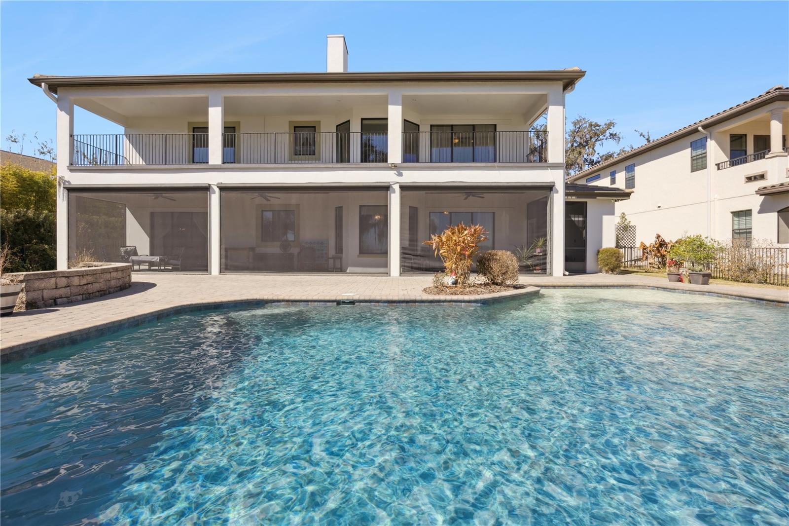 Fairway Prestige. Private Lake Serenity. Unmatched Lake Nona Luxury. Setting the bar for luxury and elegance in one of the most coveted areas of highly desirable Lake Nona, this exceptional estate is located within the private gated community of Lake Shore Estates at North Shore on Lake Hart — where residents enjoy premier golfing and boating. Spanning 5,165 square feet, this 5-bedroom, 7-bath residence offers the rare advantage of golf course views from the front and tranquil lake views from the rear. A long paver driveway and striking architectural elevation create impressive curb appeal. Inside, a grand entry with soaring ceilings and a dramatic curved staircase sets the tone for refined living. The formal living room with fireplace and elegant dining room provide sophisticated entertaining spaces, while expansive windows fill the home with natural light. The custom chef’s kitchen features granite countertops, a large center island, stainless steel appliances, gas cooktop, decorative tile backsplash, under-cabinet lighting, and rich custom cabinetry. A window over the sink frames peaceful lake views. The kitchen flows seamlessly into the main living areas, while a mud room and oversized garage add everyday convenience. Upstairs, a spacious loft offers flexible living space ideal for a media room, lounge, or study. The oversized primary suite is a private sanctuary with its own fireplace, dedicated his-and-hers closets, and exclusive access to a second-floor balcony overlooking Lake Hart — accessible only from the primary suite. The private second-floor balcony features durable wood-look composite decking, offering low-maintenance beauty while framing sweeping lake views. The spa-inspired ensuite bath features dual extended vanities, a garden soaking tub positioned beneath a large window capturing lake views, and an oversized glass-enclosed shower. The backyard is a true waterfront retreat. A sparkling saltwater pool and expansive paver deck overlook the lake, framed by a majestic oak draped in Spanish moss. A custom-built treehouse nestled within its branches adds a rare and charming feature. Fully fenced and thoughtfully designed, this outdoor space offers both unforgettable entertaining and peaceful living. Recent upgrades include exterior paint (2025), water heater (2025), A/C (2023), pool pump (2023), and two whole-home Sycom surge protectors. Residents enjoy access to North Shore Golf Club’s 18-hole course, along with a community pool, tennis and basketball courts, baseball field, playground, fitness center, and community boat dock. Conveniently located near top-rated schools, SR-417, Lake Nona Medical City, Orlando International Airport, shopping, and dining. This is more than a home — it is a lifestyle defined by elegance, recreation, and exclusivity. Call today to schedule your private showing.