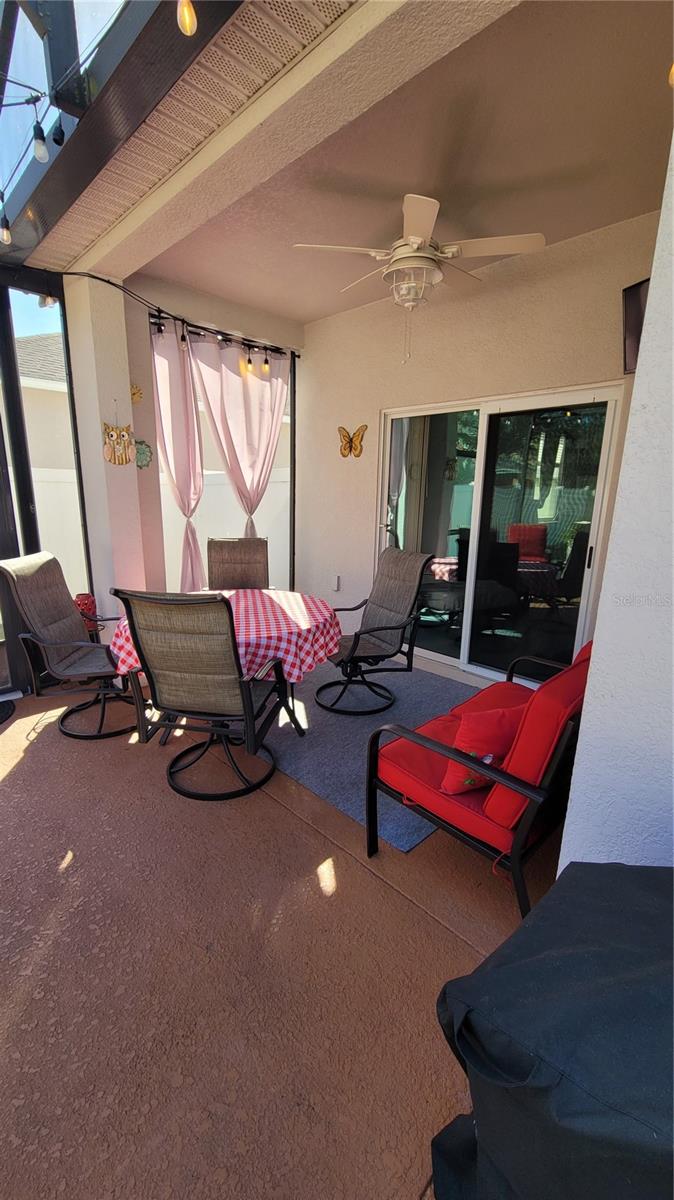Stunning 3 Bedroom, 2 Bath Home with Premium Upgrades Throughout! Welcome to this beautifully maintained home featuring an open and airy floor plan with exceptional upgrades. The expansive master suite offers a true retreat with a large walk-in closet and sitting room, perfect for relaxation or a home office. The upgraded kitchen is designed to impress with granite countertops, stainless steel appliances, a stylish color-glass backsplash, and a double pantry for abundant storage. Granite countertops continue into both bathrooms, adding a cohesive, upscale touch. Enjoy tile flooring throughout the main living areas, complemented by upgraded carpeting with premium padding in the bedrooms. A decorative tile medallion in the foyer creates a warm and elegant first impression. Step outside to a covered and screened, extended patio overlooking a fully fenced yard, ideal for outdoor dining, entertaining, or simply enjoying the Florida sunshine. All appliances — including the washer and dryer — are included, making this home truly move-in ready. Located in a highly desirable community, the HOA provides access to a resort-style pool, parks, playgrounds, tennis courts, basketball courts, and open green spaces — offering endless opportunities for recreation and relaxation with easy access to major roads, restaurants and shopping.