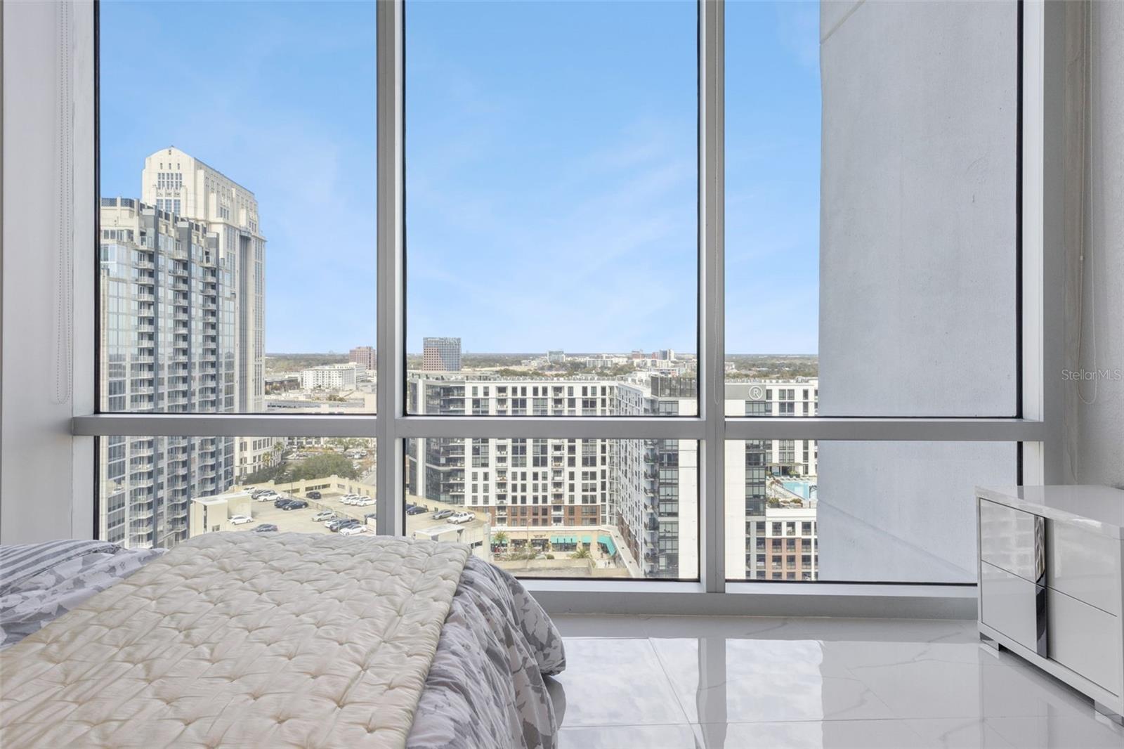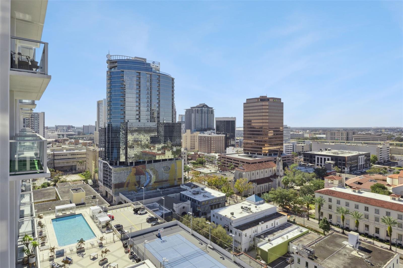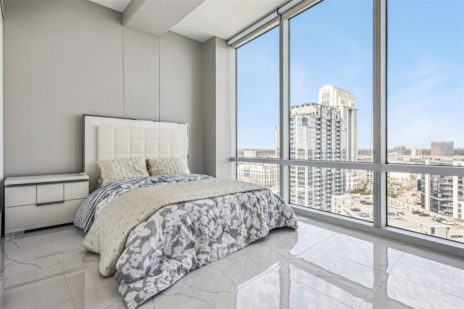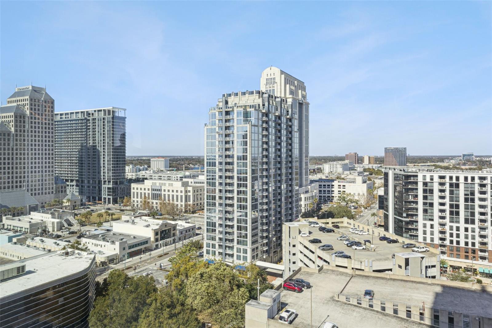 This Distinguished Condo speaks for itself! No expense was spared on the new finishes. Unit 1612 at The VUE at Lake Eola is a 1,285-square-foot Luxury Corner unit on the 16th floor, featuring 2 bedrooms and 2 bathrooms. It recently underwent a full remodel with high-end finishes and offers unobstructed city views with floor-to-ceiling windows. The unit has been renovated with a focus on modern elegance and high-end materials: Flooring: Gleaming white Italian porcelain tile throughout. Gourmet Kitchen: Fully upgraded open-concept kitchen with a gas stove, new stainless steel appliances, quartz countertops, custom European cabinetry, and designer finishes. High-End Designer Lighting throughout. Primary Suite: Includes custom double walk-in closets and a modernized ensuite bathroom with dual sinks and a spa-inspired design. Technology & Comfort: Equipped with electronic blinds in the living area, 10' high ceilings, and a private balcony. On-Site Storage, Cable TV, WiFi, and more. The Vue at Lake Eola offers a luxurious, modern high-rise living experience in Downtown Orlando, boasting breathtaking views, upscale amenities, and a prime location for residents to enjoy the best the city has to offer. The luxury building features a lavish lobby staffed with 24/Hr Security, Concierge, Valet parking, Jr. Olympic-size Rooftop Pool, Multi-million Dollar Health Club, Tennis/Basketball Court, Private Media Room, Dog Walk, and the Club Vue Lounge, which is exclusively for Residents and Their Guests. There is also Resident only Bio metric Fingerprint Access, which will ensure a SAFE and Private Environment. Outdoor Recreation: Directly adjacent to Lake Eola Park, home to a 1-mile walking loop and the weekly Orlando Farmers Market. Convenience: Within walking distance of a Publix grocery store, the Dr. Phillips Center for the Performing Arts, and various dining and nightlife options at Wall Street Plaza. Parking: Unit 1612 includes two reserved parking spots in the secured garage with valet service.