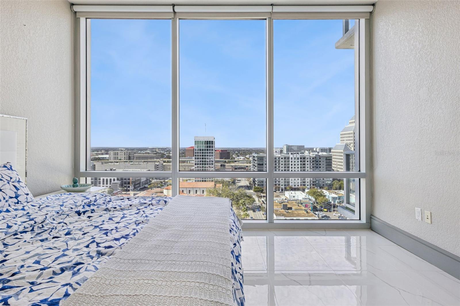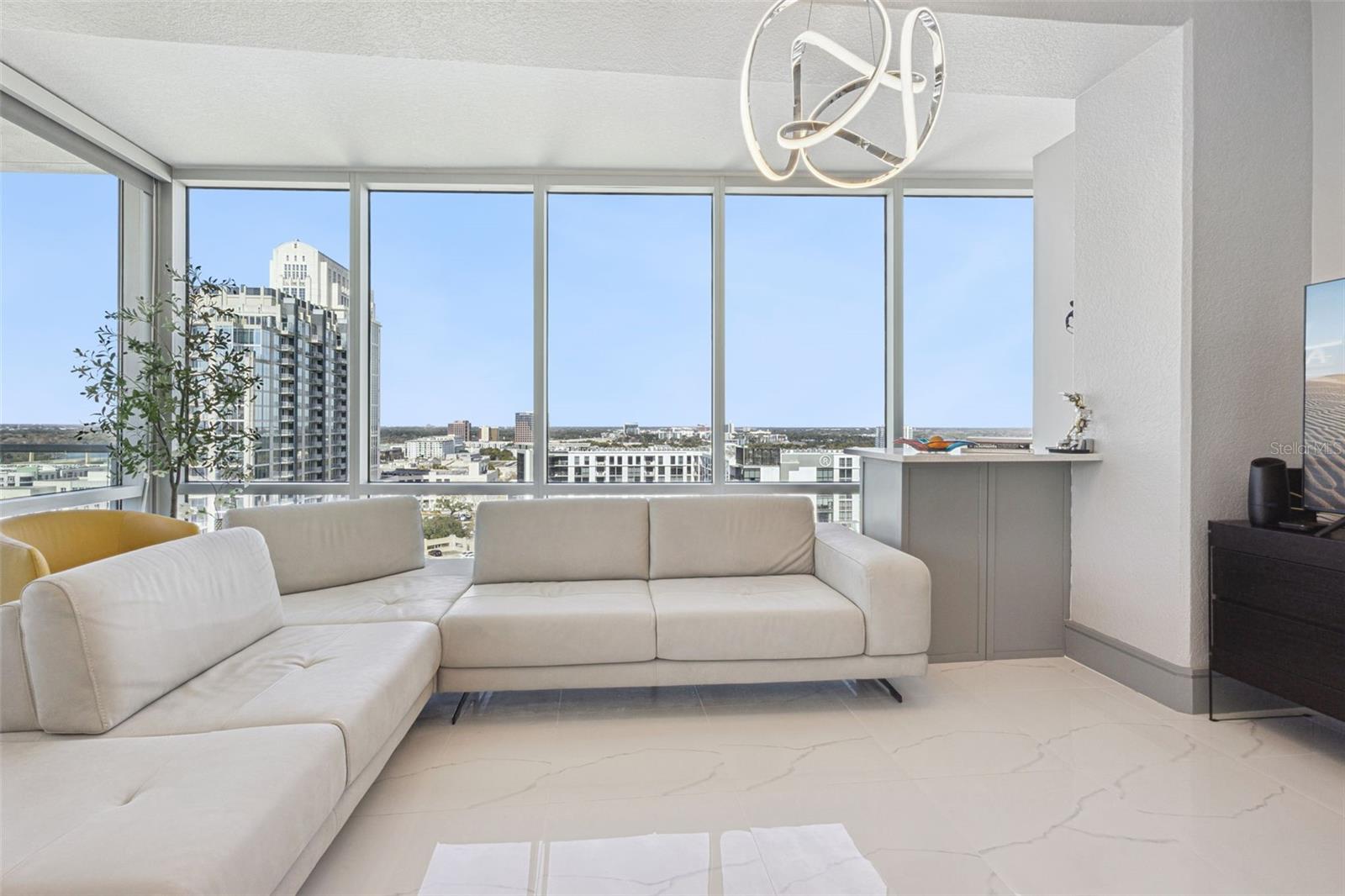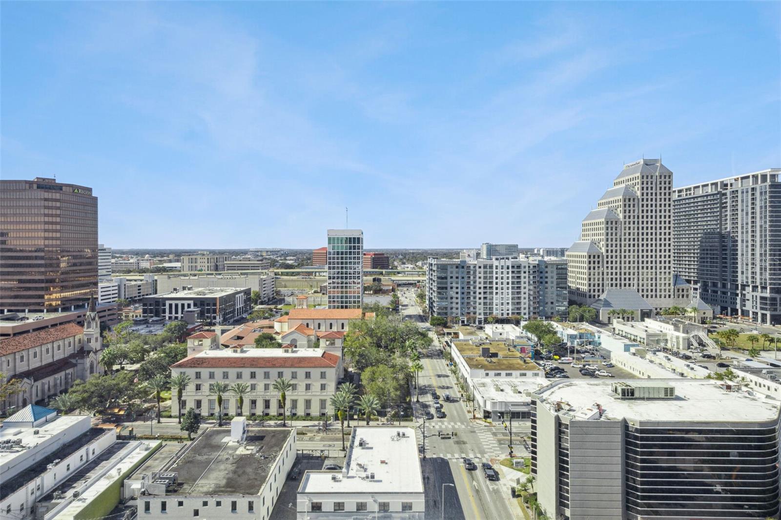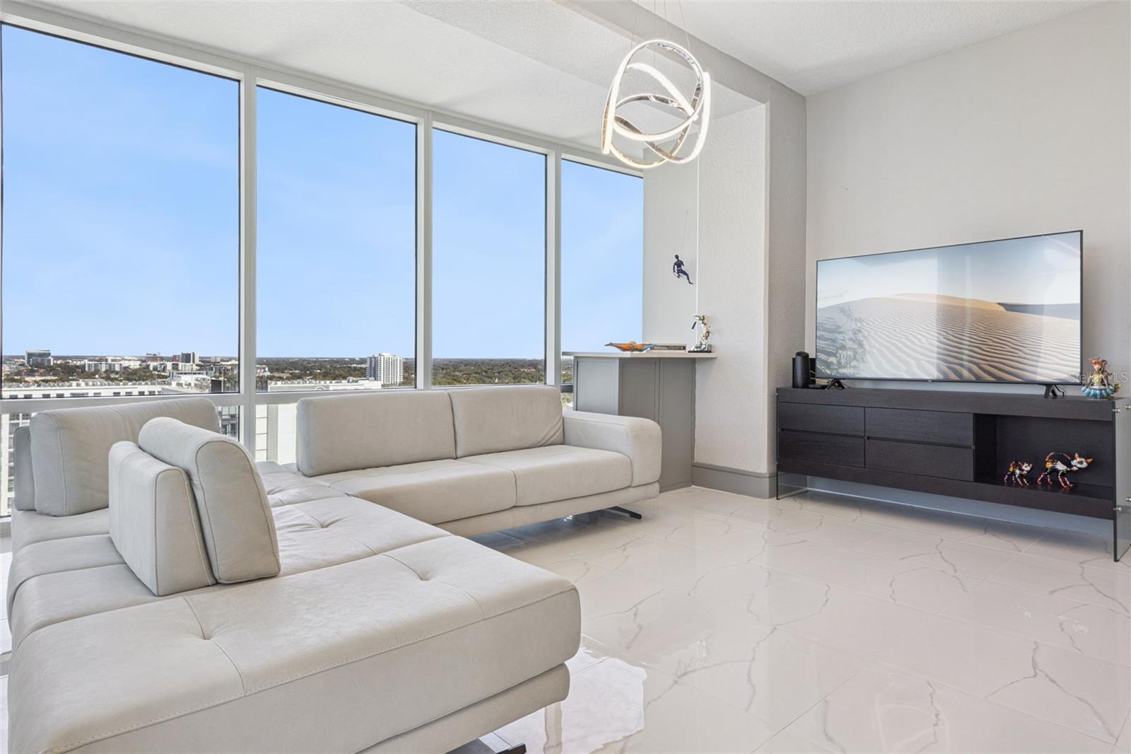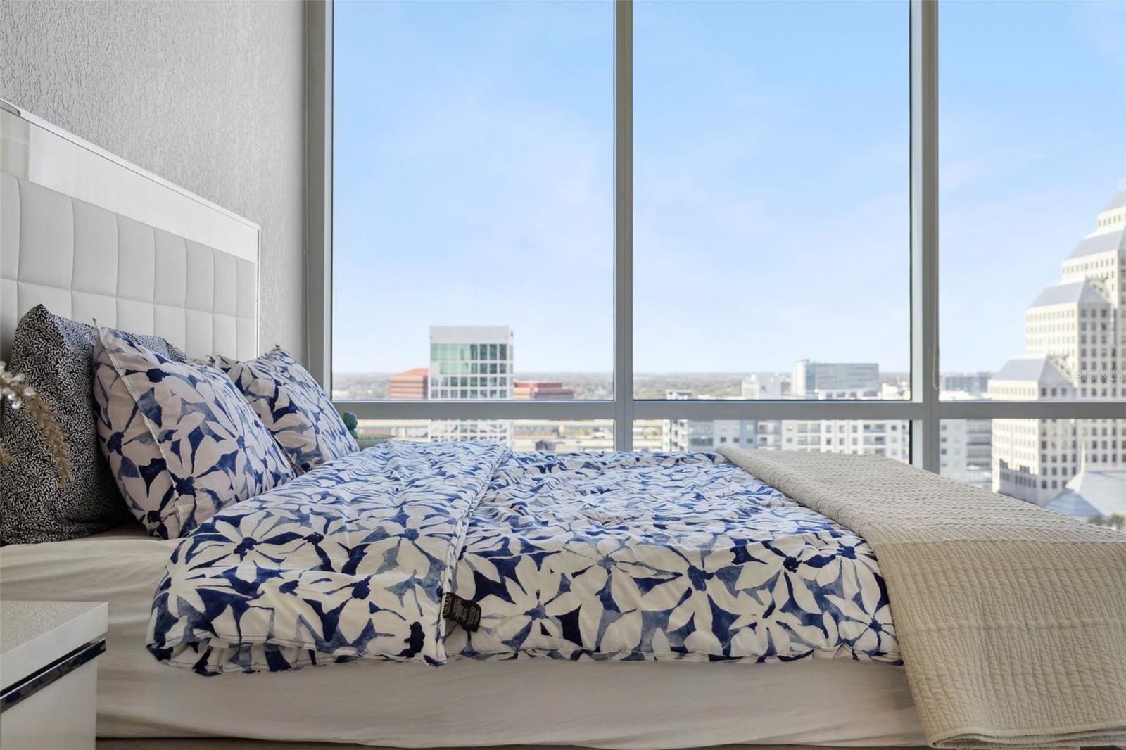 This Distinguished Condo speaks for itself! No expense was spared on the new finishes. Unit 1612 at The VUE at Lake Eola is a 1,285-square-foot Luxury Corner unit on the 16th floor, featuring 2 bedrooms and 2 bathrooms. It recently underwent a full remodel with high-end finishes and offers unobstructed city views with floor-to-ceiling windows. The unit has been renovated with a focus on modern elegance and high-end materials: Flooring: Gleaming white Italian porcelain tile throughout. Gourmet Kitchen: Fully upgraded open-concept kitchen with a gas stove, new stainless steel appliances, quartz countertops, custom European cabinetry, and designer finishes. High-End Designer Lighting throughout. Primary Suite: Includes custom double walk-in closets and a modernized ensuite bathroom with dual sinks and a spa-inspired design. Technology & Comfort: Equipped with electronic blinds in the living area, 10' high ceilings, and a private balcony. On-Site Storage, Cable TV, WiFi, and more. The Vue at Lake Eola offers a luxurious, modern high-rise living experience in Downtown Orlando, boasting breathtaking views, upscale amenities, and a prime location for residents to enjoy the best the city has to offer. The luxury building features a lavish lobby staffed with 24/Hr Security, Concierge, Valet parking, Jr. Olympic-size Rooftop Pool, Multi-million Dollar Health Club, Tennis/Basketball Court, Private Media Room, Dog Walk, and the Club Vue Lounge, which is exclusively for Residents and Their Guests. There is also Resident only Bio metric Fingerprint Access, which will ensure a SAFE and Private Environment. Outdoor Recreation: Directly adjacent to Lake Eola Park, home to a 1-mile walking loop and the weekly Orlando Farmers Market. Convenience: Within walking distance of a Publix grocery store, the Dr. Phillips Center for the Performing Arts, and various dining and nightlife options at Wall Street Plaza. Parking: Unit 1612 includes two reserved parking spots in the secured garage with valet service.