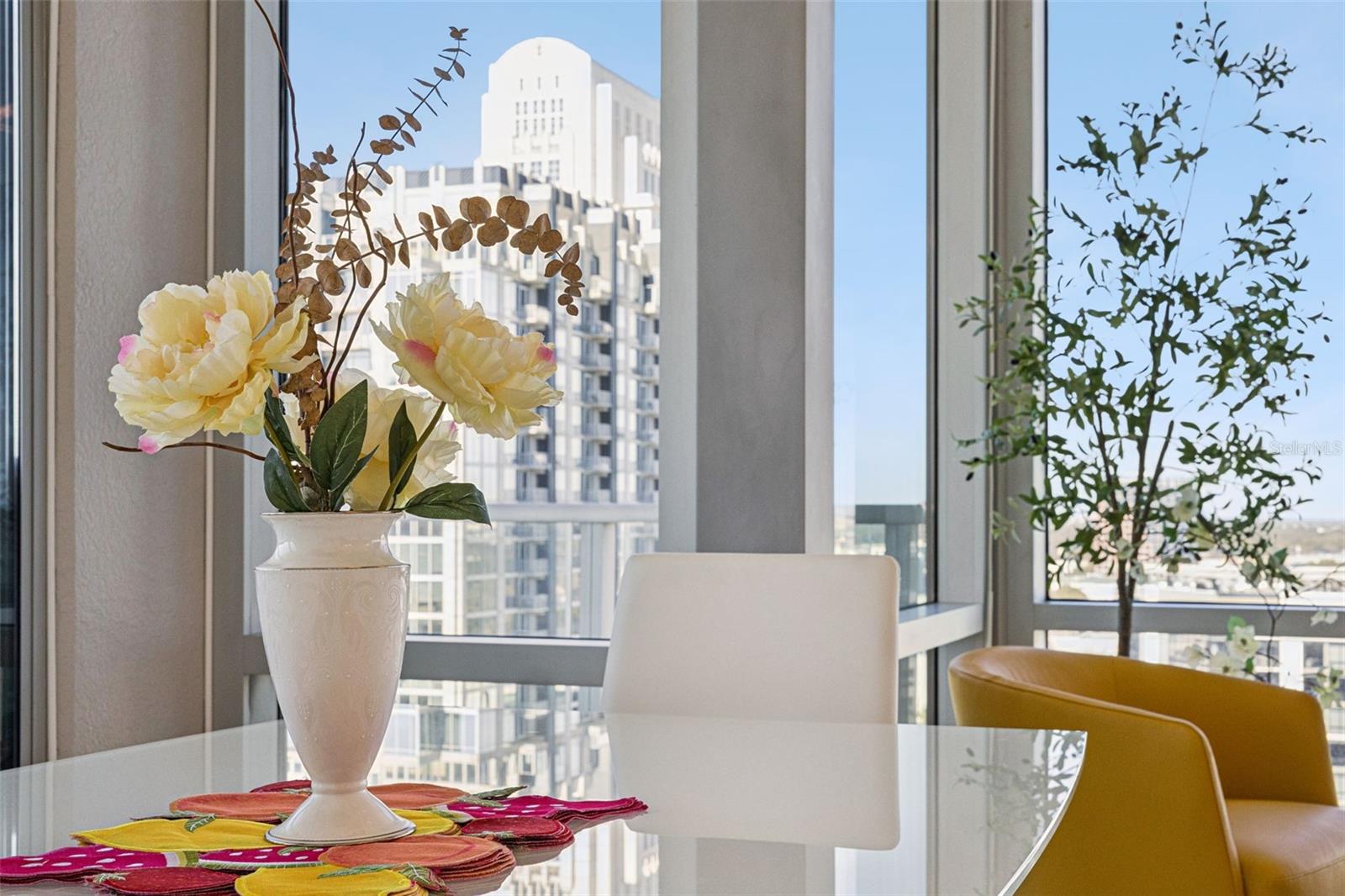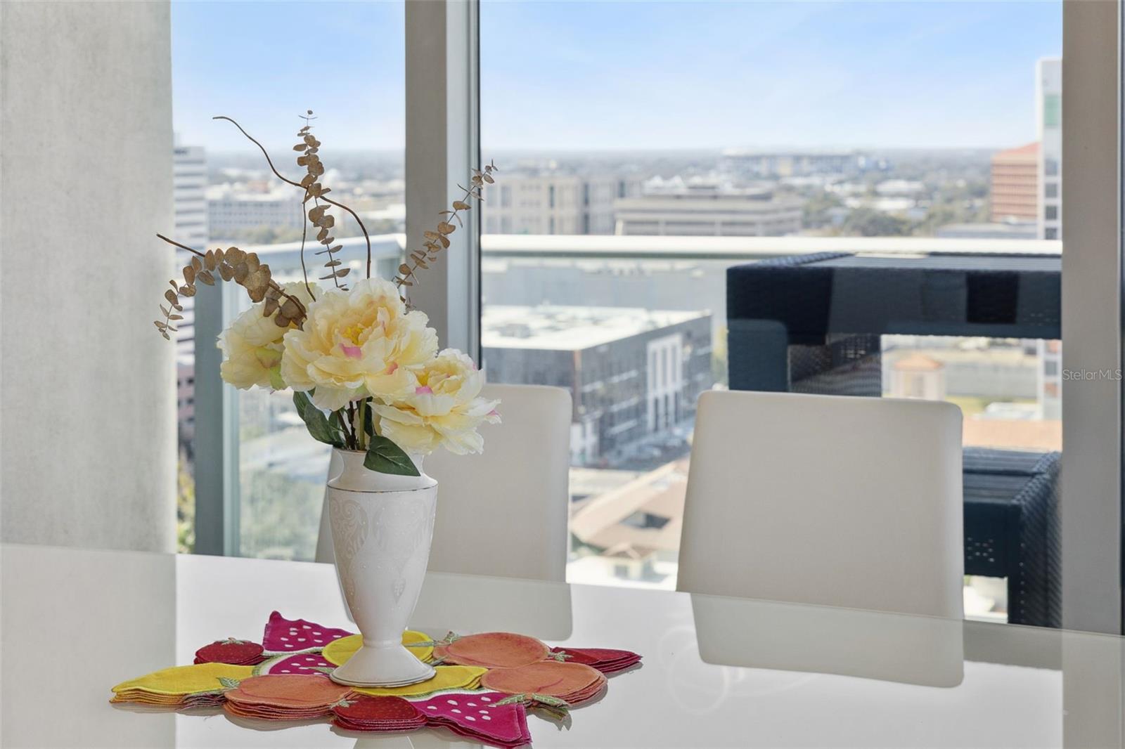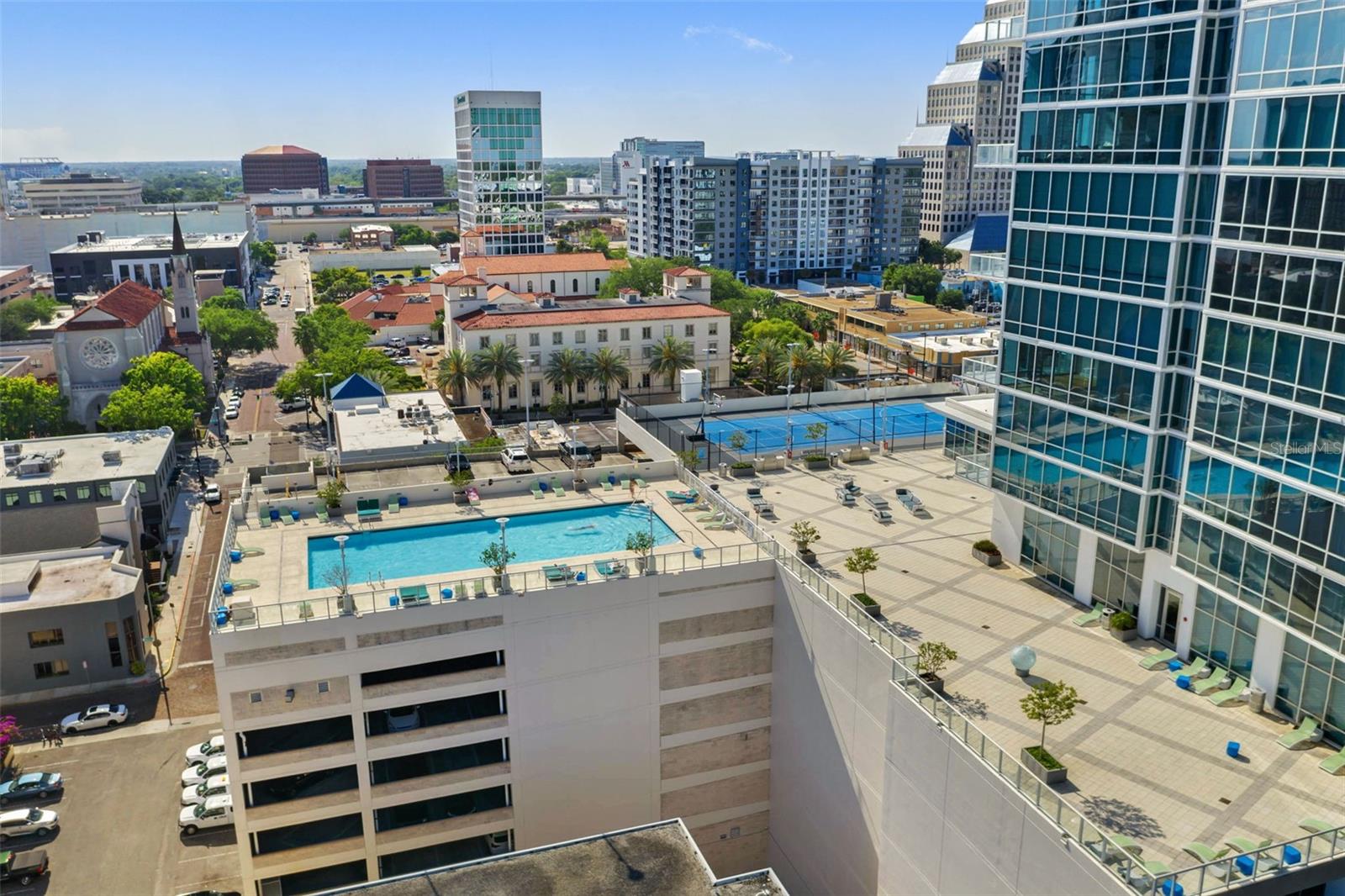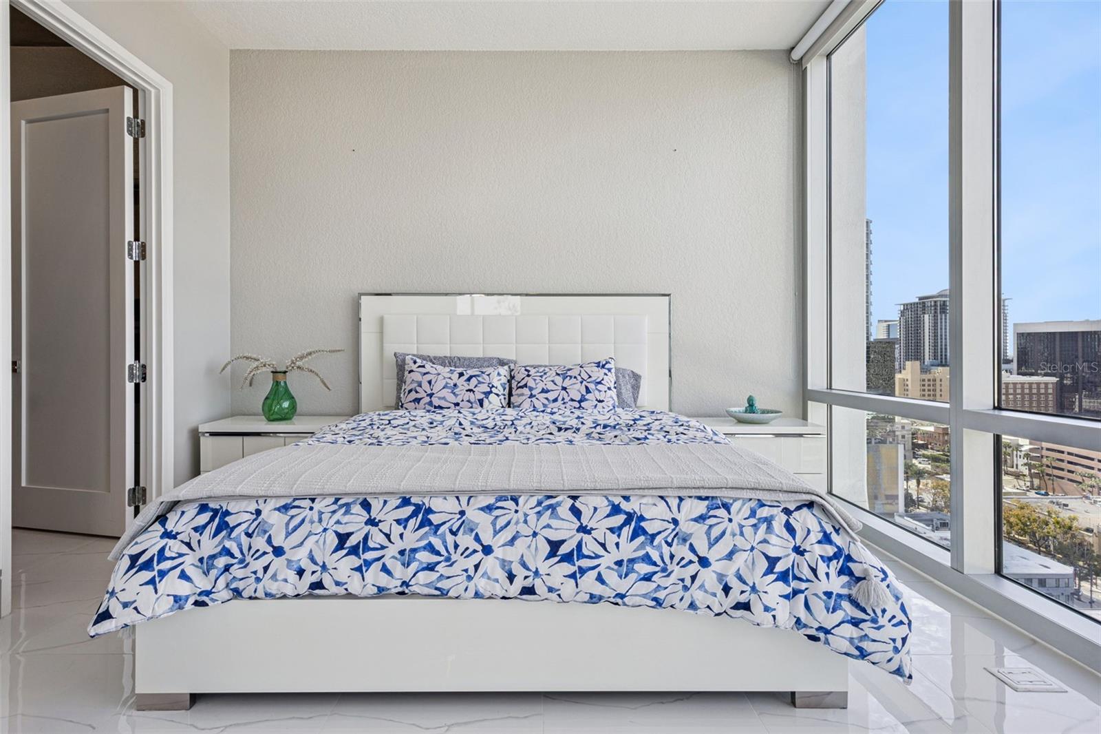 This Distinguished Condo speaks for itself! No expense was spared on the new finishes. Unit 1612 at The VUE at Lake Eola is a 1,285-square-foot Luxury Corner unit on the 16th floor, featuring 2 bedrooms and 2 bathrooms. It recently underwent a full remodel with high-end finishes and offers unobstructed city views with floor-to-ceiling windows. The unit has been renovated with a focus on modern elegance and high-end materials: Flooring: Gleaming white Italian porcelain tile throughout. Gourmet Kitchen: Fully upgraded open-concept kitchen with a gas stove, new stainless steel appliances, quartz countertops, custom European cabinetry, and designer finishes. High-End Designer Lighting throughout. Primary Suite: Includes custom double walk-in closets and a modernized ensuite bathroom with dual sinks and a spa-inspired design. Technology & Comfort: Equipped with electronic blinds in the living area, 10' high ceilings, and a private balcony. On-Site Storage, Cable TV, WiFi, and more. The Vue at Lake Eola offers a luxurious, modern high-rise living experience in Downtown Orlando, boasting breathtaking views, upscale amenities, and a prime location for residents to enjoy the best the city has to offer. The luxury building features a lavish lobby staffed with 24/Hr Security, Concierge, Valet parking, Jr. Olympic-size Rooftop Pool, Multi-million Dollar Health Club, Tennis/Basketball Court, Private Media Room, Dog Walk, and the Club Vue Lounge, which is exclusively for Residents and Their Guests. There is also Resident only Bio metric Fingerprint Access, which will ensure a SAFE and Private Environment. Outdoor Recreation: Directly adjacent to Lake Eola Park, home to a 1-mile walking loop and the weekly Orlando Farmers Market. Convenience: Within walking distance of a Publix grocery store, the Dr. Phillips Center for the Performing Arts, and various dining and nightlife options at Wall Street Plaza. Parking: Unit 1612 includes two reserved parking spots in the secured garage with valet service.