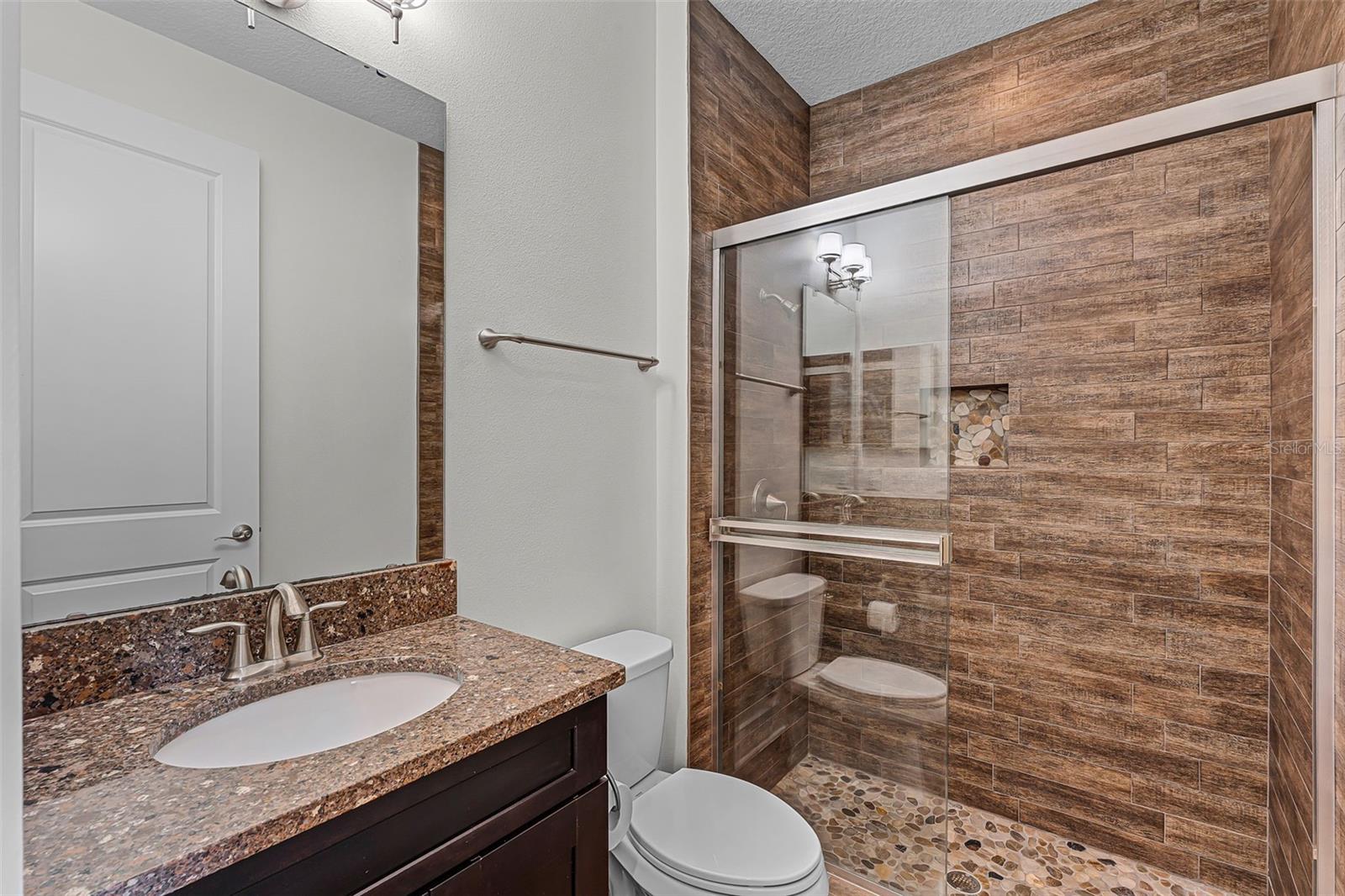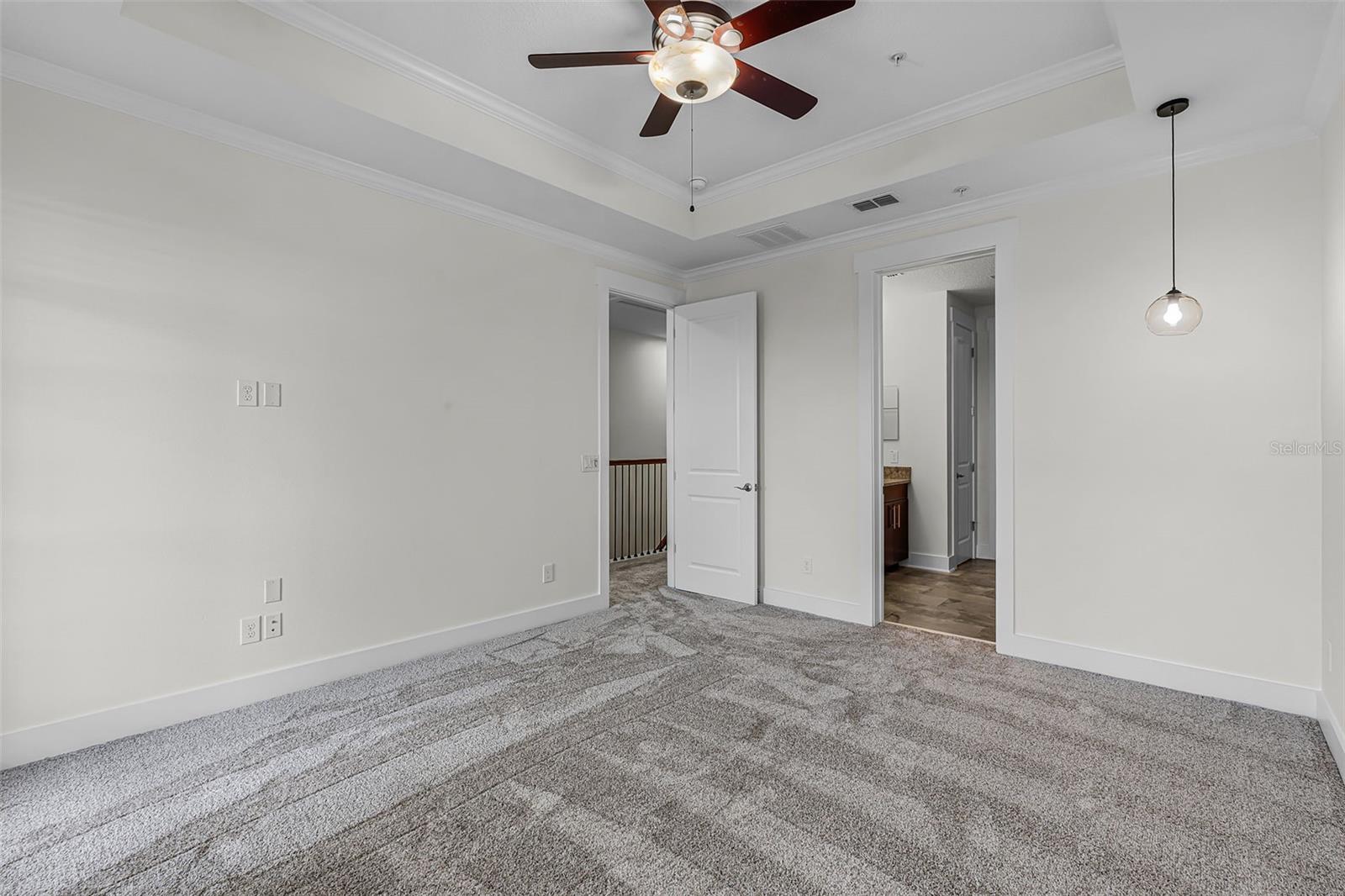 One or more photo(s) has been virtually staged. One or more photo(s) has been virtually staged. Prime Location in Baldwin Park! Welcome to this elegant David Weekley City Home, perfectly situated directly across from Blue Jacket Park and Lake Baldwin—offering picturesque views and outdoor living from the covered front porch and two private balconies on the 2nd and 3rd floors. Step inside to a versatile ground-level suite with a full bath, ideal for guests or a private home office, featuring stylish wood-look tile flooring throughout. Beautiful solid hickory wood stairs with classic wrought iron balusters guide you to the expansive main living level. The heart of this home is the gourmet kitchen, thoughtfully designed with an oversized quartz island, rich espresso cabinetry, brand-new LG appliances, glass tile backsplash, and a built-in wine fridge. A custom dry bar and matching espresso cabinets extend into the dining area, creating a seamless entertaining space. The open floor plan flows effortlessly into the spacious living room, all adorned with gorgeous hickory hardwood floors and bathed in natural light from oversized windows and the 2nd-floor balcony. Upstairs, plush new carpet with luxury padding leads you to the private bedroom level. The primary suite is a true retreat with its own private balcony, tray ceiling, a spa-like bathroom featuring a walk-in shower with river rock flooring, a garden tub, and an expansive walk-in closet. The secondary bedroom also enjoys a private ensuite bath, perfect for family or guests. A large laundry room on this level adds everyday convenience. Enjoy the incredible walkability to Baldwin Park Village Center, shops, dining, community pool, fitness center, dog park, and miles of scenic trails. This exceptional townhome blends luxury, location, and low-maintenance living in one of Orlando’s most sought-after communities. This townhome has been meticulously maintained and updated with NEW APPLIANCES, NEW INTERIOR PAINT, NEW CARPET UPSTAIRS, AND NEW HVAC.