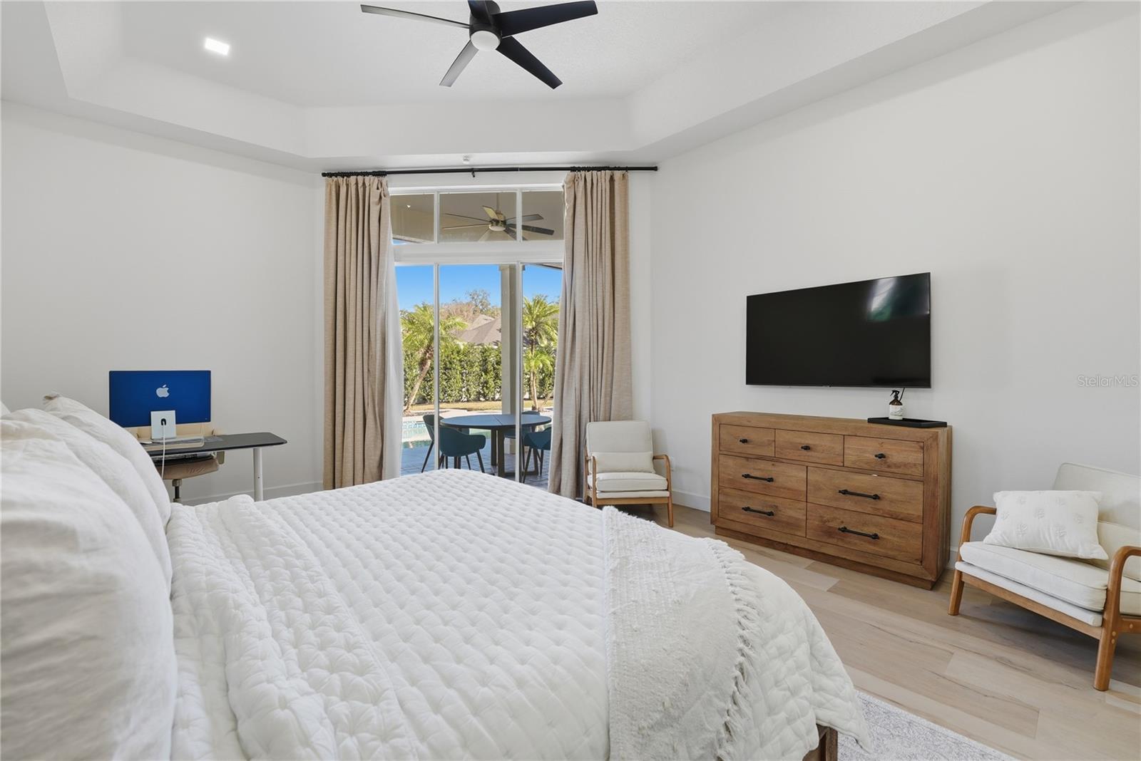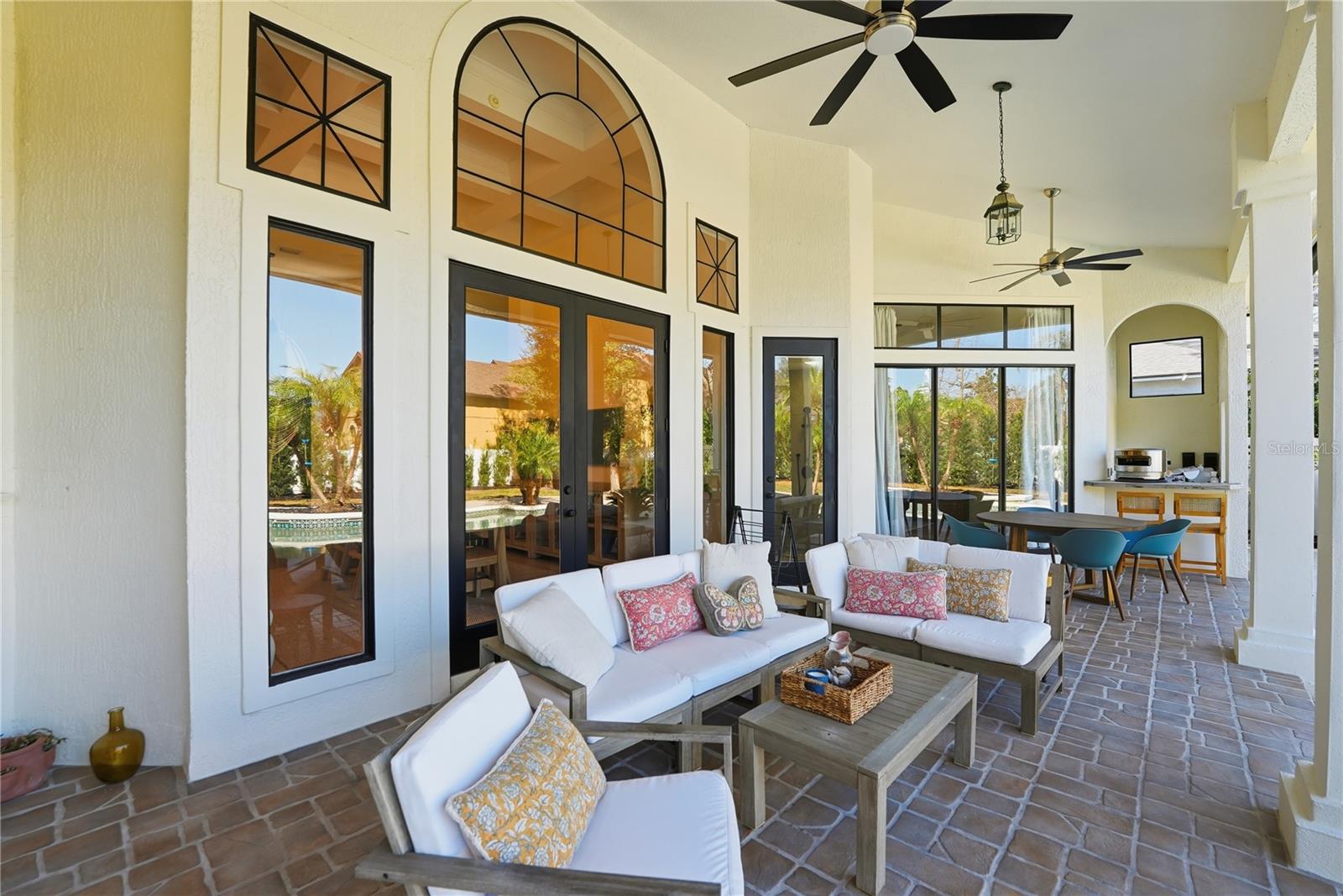 A rare opportunity to experience refined, design-forward living in one of Orlando's most established neighborhoods. Elegantly reimagined throughout with every detail considered, this executive home is immediately distinguished by soaring 13.5 ft ceilings, refined architectural lines, striking design elements, and a light-drenched layout that feels both expansive and intentional. This home has undergone a comprehensive, top-to-bottom renovation, including all new luxury vinyl plank flooring throughout, a fully redesigned kitchen, completely reimagined bathrooms, removed walls to enhance flow, and thoughtfully expanded outdoor living spaces. At the center of the home, the kitchen is a true statement - beautifully designed with custom cabinetry that extends to the ceiling, quartz countertops, Samsung gourmet appliances, and a pot filler at the cooktop. Positioned to connect effortlessly with both the dining area and the living room beyond, the space flows around a generous 9 foot island and breakfast nook overlooking the lanai and pool. The living room itself is expansive and inviting, anchored by a gas-burning fireplace with custom built-ins and framed by oversized 9.5 ft sliding glass doors to the patio. The primary suite is a true private retreat, featuring tray ceilings, a spa-inspired ensuite, and a custom-designed walk-through closet that completes the experience. The bath is thoughtfully appointed with a double vanity, a separate water closet with bidet, and a luxurious 'wet room' - spacious walk-in shower with integrated soaking tub, all finished with floor-to-ceiling tile. A dedicated flex space, formerly a fourth bedroom, makes the perfect office, den, or future guest suite. On the opposite side of the home, two well-appointed bedrooms share a beautifully updated Jack-and-Jill bath, offering privacy and functionality ideal for family or guests. Floor-to-ceiling tile elevates the bathrooms throughout the home, creating a cohesive and serene resort-like feel. Outdoors, an expanded lanai and a thoughtfully designed pavered fire pit area extend the living and entertaining spaces, creating an environment equally suited for relaxed evenings or larger gatherings. The fully fenced yard offers both privacy and versatility, while the property is completed by a three-car garage and expanded driveway. Elevated by designer lighting, smart home controls, and thoughtfully curated details throughout, this home offers modern convenience and a refined living experience. Set within a quiet, established neighborhood and conveniently located near the 408 and 417, this home offers easy access to downtown Orlando and UCF. A rare opportunity for those seeking design, comfort, and location - call today for your private showing and ask for the full list of features.