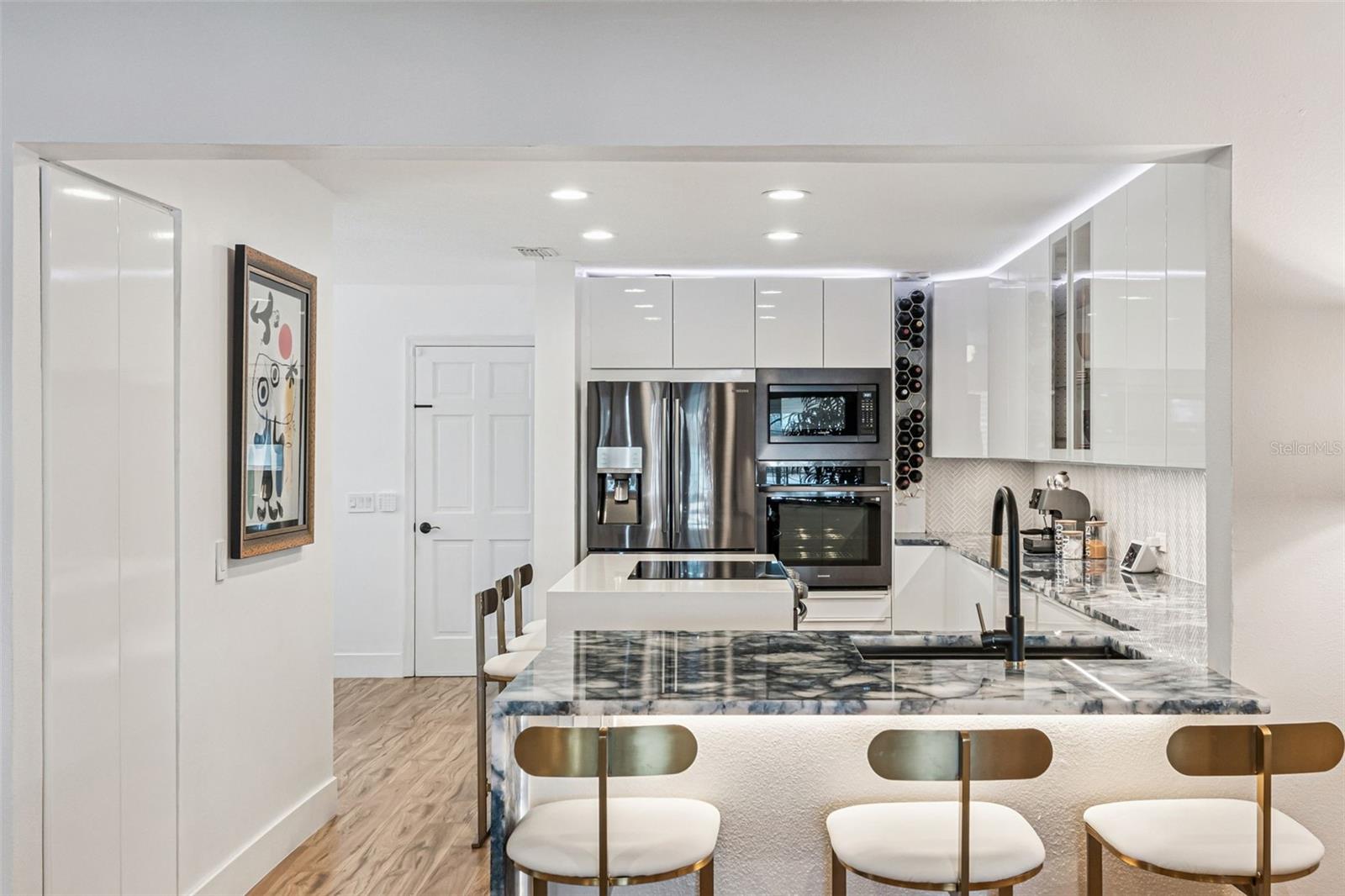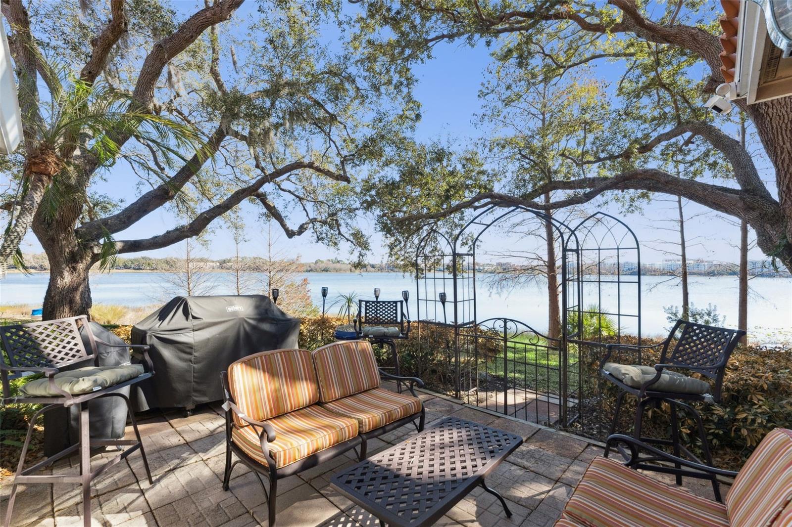 Waterfront living in the heart of Dr. Phillips. 7433 Somerset Shores Court is a beautifully updated lakefront townhome located within the gated community of Somerset Shores. Although classified as a townhome, it lives much more like a spacious single-family residence, offering generous living areas, high ceilings, and peaceful water views. The first floor is designed for everyday comfort and effortless entertaining, featuring an expansive family room with soaring ceilings and a cozy fireplace. The designer kitchen anchors the space with custom cabinetry, natural stone countertops, stainless steel appliances, and a large island ideal for gathering. The primary suite is also located on the main level, serving as a private retreat with tranquil lake views. Upstairs includes a spacious guest bedroom and a versatile loft area ideal for a home office, media room, or additional living space. The layout provides flexibility for guests, work-from-home needs, or multi-use living. A bright, enclosed Florida sunroom offers additional living space and creates a seamless connection to the outdoors, perfect for relaxing or entertaining year-round. Just beyond, the open patio overlooks the lake and provides an ideal setting for dining, unwinding, and enjoying the waterfront setting. Somerset Shores is a true hidden gem, private, gated, and meticulously maintained. Community amenities include a pool with entertaining area, fishing pier, and scenic water views. The HOA maintains the neighborhood year-round, keeping the properties pristine, with stable fees that do not increase annually. The location delivers the best of Dr. Phillips living. Restaurant Row is located nearby, offering endless dining options. Two supermarkets are directly across the street, along with nearby access to the YMCA, public library, and everyday conveniences. Major highways are close for easy access, yet the community remains quiet, safe, and peaceful. Orlando International Airport is approximately a 15-minute drive away. With friendly neighbors, a strong sense of community, and a setting that balances convenience with tranquility, this waterfront home offers a rare opportunity to enjoy one of Orlando’s most desirable locations.