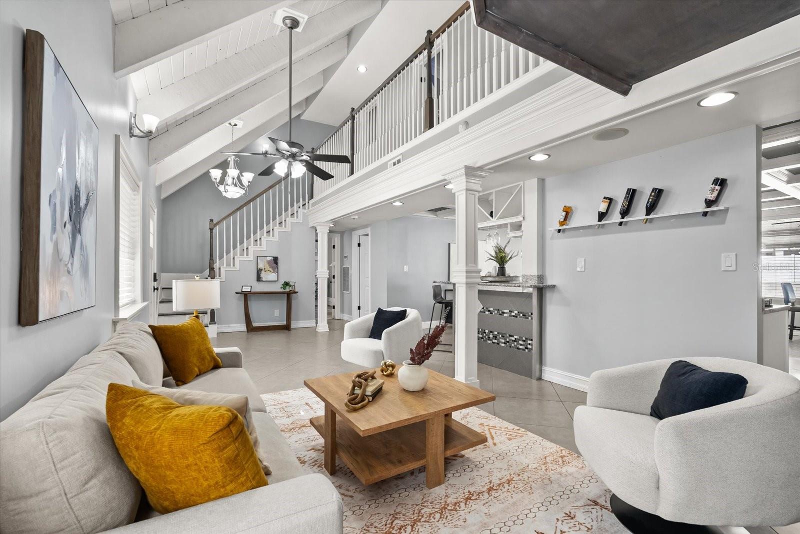 Discover the epitome of luxurious, multi-generational living in this stunning half-acre estate, where every detail whispers comfort and sophistication. Step into the expansive 2,900+ sq ft main house, a haven of high-end finishes and thoughtful design that feels like your forever home. Freshly painted throughout with custom coffered ceilings, recessed lighting, and high-quality trim everywhere, it lights up brightly for effortless entertaining. The living room boasts 3-level crown molding and a quiet reading nook overlooking the space, perfect for cozy evenings with family. At the heart is the gourmet kitchen, featuring a new fridge and dishwasher, a full wet bar with ice maker and mini drink fridge, walk-in pantry, and elegant tile backsplashes with built-in wine bottle racks. Adjacent is the walk-in laundry with custom cabinets and shelving for seamless daily living. Upstairs, three massive bedrooms each offer walk-in closets and exterior doors to a shared balcony, ideal for kids to enjoy fresh air and views. But the true retreat is the enormous master suite: custom shiplap siding, a 7-layer crown molding masterpiece, and a spa-like bath with a 2-person tub featuring LED lights, bubblers, and jets. The steam shower is pure indulgence—10 heads including a rain shower, 6 body jets, 3 additional heads, waterproof speakers, and a premium steam unit. Descend your private staircase to the exclusive salt room, with Himalayan sea salt floors, custom shiplap walls, and an LED feature wall for ultimate relaxation. Dual surround sound systems enhance the vibe: one for the master suite to play spa music while you soak or lounge, and another in the living area for movie nights. Outdoor bliss awaits with nearly 3,000 sq ft of deck space, starting with the 500 sq ft first-floor poly deck and paver area complete with an outdoor wet bar—your go-to spot for summer barbecues. The vinyl fenced backyard, enclosed by an 8' white vinyl fence, and the front yard boasts a beautiful perimeter masonry wall, with high hedges for privacy. The rear features a massive beach sand volleyball court for endless fun. Recent upgrades like new electrical panels, two new AC units, and an oversized 500+ sq ft garage with workbench ensure peace of mind. Elevate your family-oriented lifestyle with the attached 800 sq ft in-law suite on the second floor, fully renovated just a year ago with all-new appliances, solid-wood kitchen cabinets, paint, and flooring. Or, rent it out and cover the note. The choice is yours. However, it's so nice, you may want to live in this unit yourself! This 2-bed, 1-bath gem boasts an oversized chef's kitchen with quartz countertops, bar seating, and a farmhouse sink, and the bathroom is equipped with a new soaker tub for unwinding, and your guests can utilize their own laundry room. Step out to the private 1,000 sq ft second-floor deck for al fresco dining or stargazing—perfect for extended family or guests seeking independence without sacrificing connection. This isn't just a house; it's a personalized sanctuary where memories unfold. With its blend of opulence, functionality, and prime location just 7 minutes from downtown and 10 minutes to Waterford Lakes Town Center, it's poised to balance the silence of solitude with the conveniences of Orlando. A mere 1/2 mile to Publix and Starbucks, and less than a mile from the 408 on-ramp, all the modern conveniences are at your fingertips. Schedule your private tour today and envision your story here!