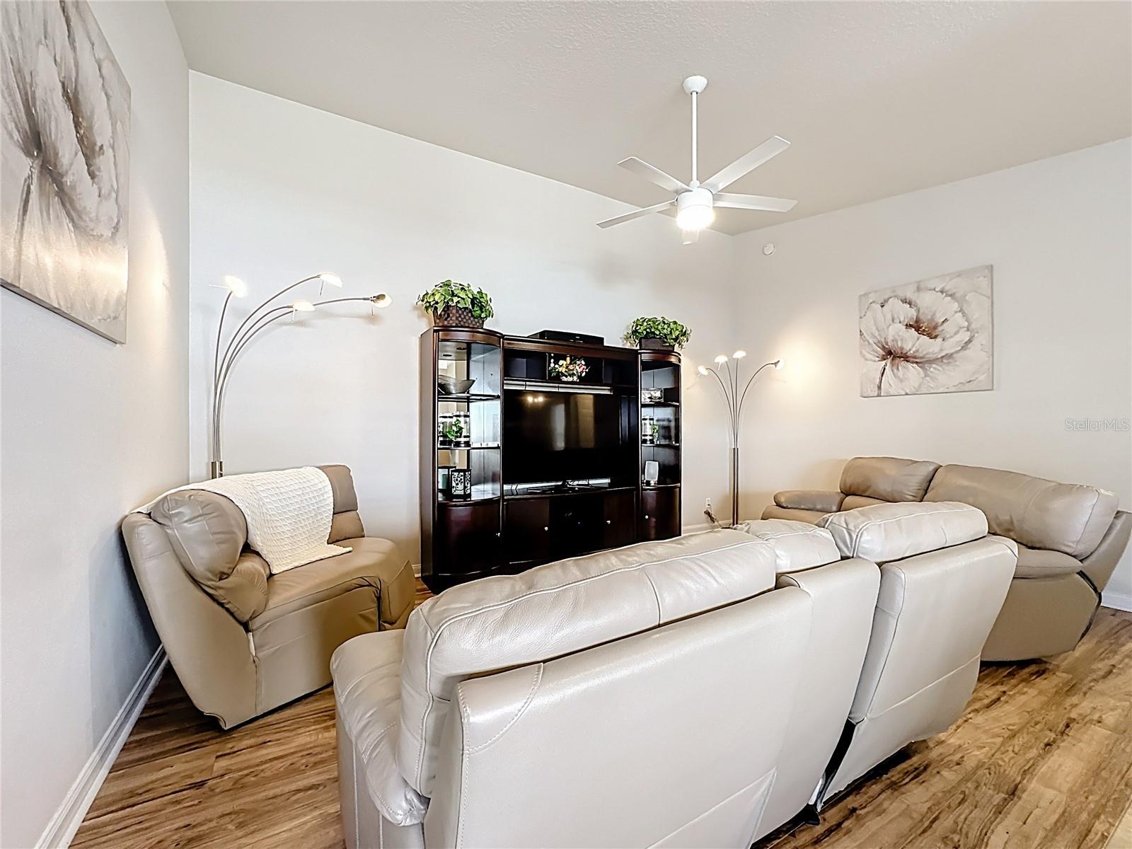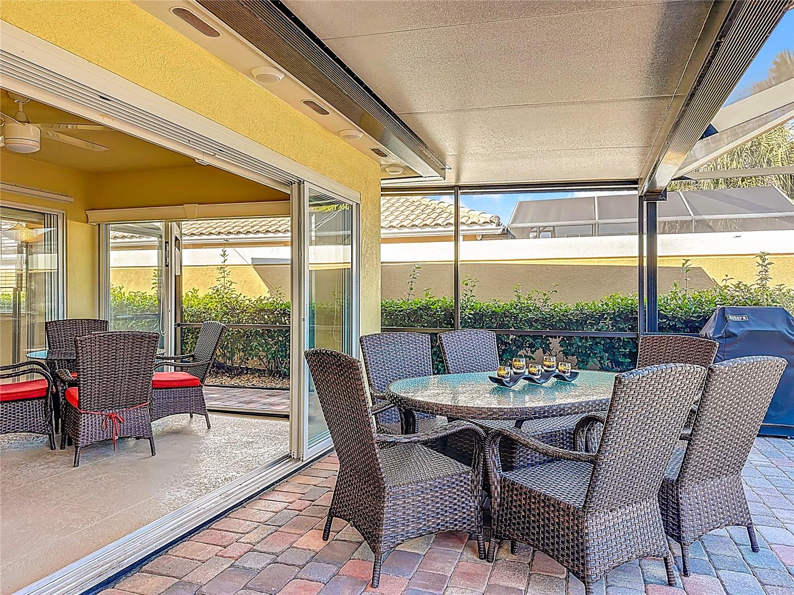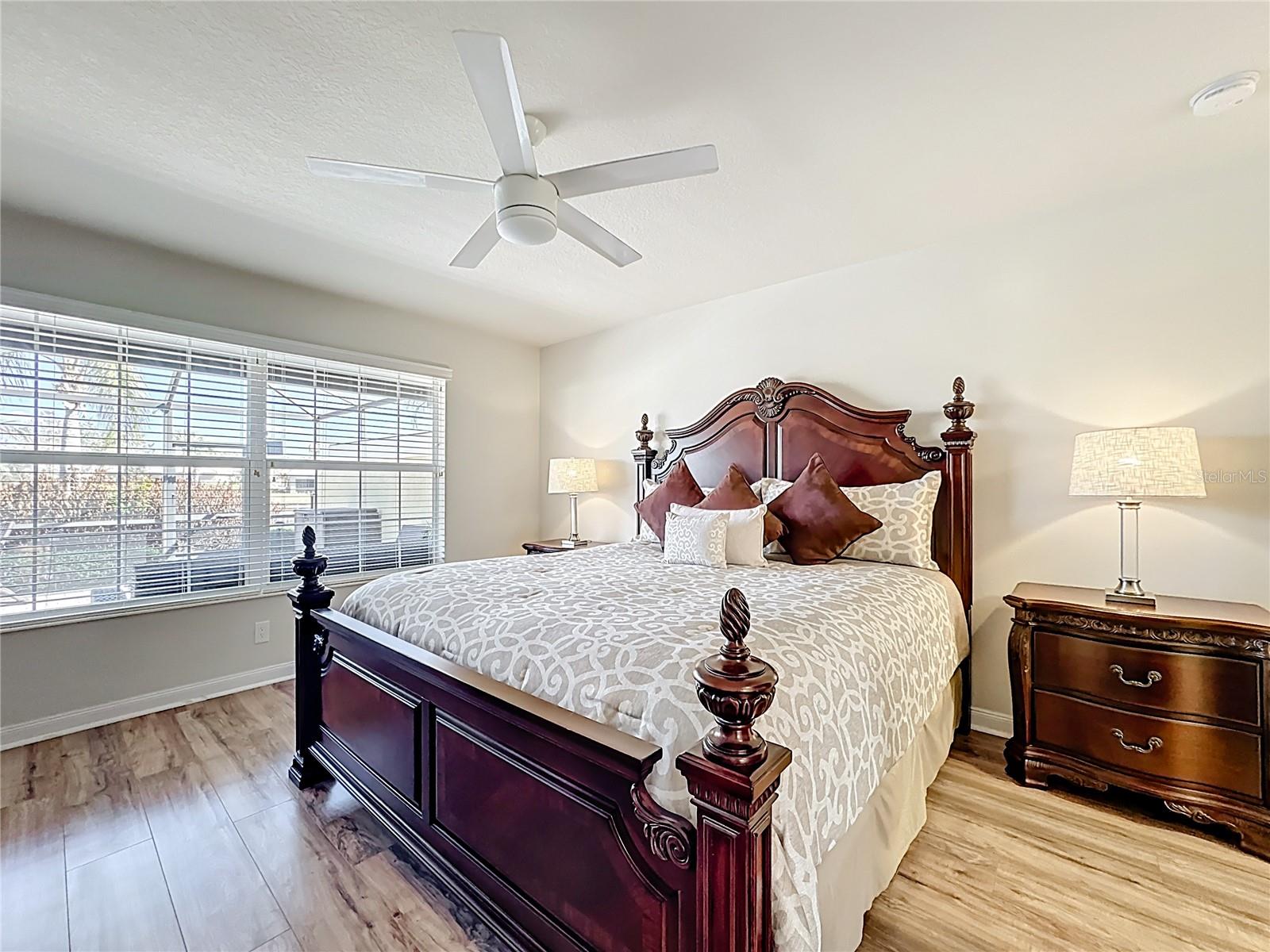 Wonderful 2-bedroom, 2-bath home with a desirable split floor plan. No carpet and beautifully updated throughout. Features include custom lighting, spacious walk-in closets, and large sliding glass doors that open to a private backyard. Enjoy stunning water views from the oversized screened-in patio with pavers. Additional highlights include a 2-car garage, side privacy entrance, central vacuum system throughout, and hurricane shutters. All furnishings and décor are included in the sale.