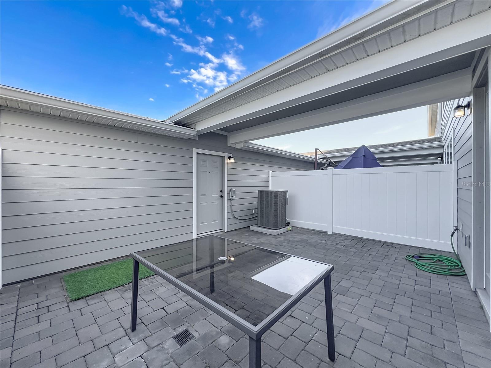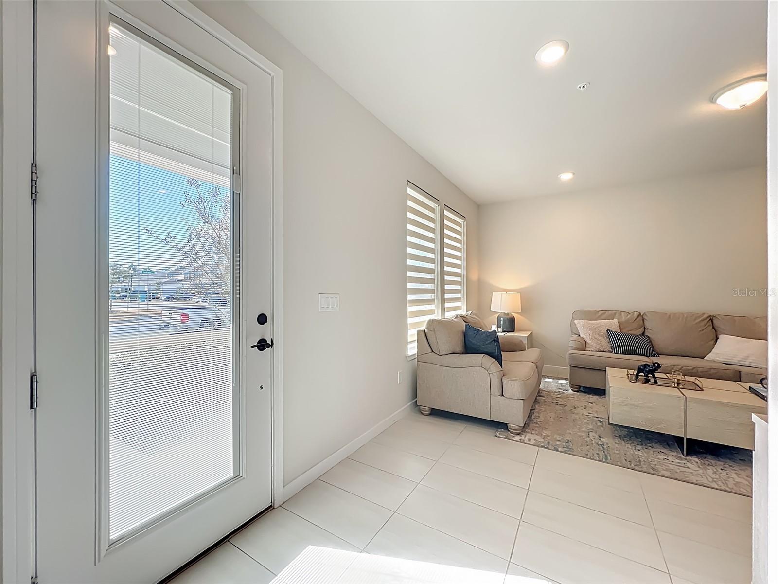 This impeccably maintained two-story end-unit townhome offers modern finishes, energy-efficient features, and a functional layout designed for comfortable living. The covered front porch and glass front door with built-in privacy blinds create a welcoming first impression. Inside, the spacious foyer opens to a bright, open-concept living and dining area filled with natural light. The layout allows flexibility for furniture placement and entertaining. Ceramic tile runs throughout the first floor, offering both style and easy upkeep. The kitchen features stainless steel appliances, an undermount sink, quartz countertops, and a large island with breakfast bar seating. Designer cabinets with crown molding provide generous storage, along with a walk-in pantry and an additional storage closet. Decorative pendant lighting, recessed LED lights, and an upgraded faucet add subtle modern touches. A conveniently located half bath completes the main level. Upstairs, all bedrooms are privately situated with plush carpeting throughout. The primary suite includes a walk-in closet and an ensuite bath with dual sinks, a tiled walk-in shower with frameless glass enclosure, and a private water closet. Two additional bedrooms have built-in closets and share a full bathroom with a tiled tub and shower combination. The private, fully fenced courtyard with concrete pavers is located just off the kitchen—ideal for relaxing, gardening, or gathering with guests. A covered walkway connects the home to the two-car garage, and a full driveway provides additional parking. Additional features include a convenient and reliable built-in pest control, The community offers guest parking, a playground, and access to Pinewood Reserve amenities including a pool, walking trail, and additional playground. Conveniently located near SR-417 with easy access to Downtown Orlando, UCF, Orlando International Airport, and Lake Nona. Close to local schools, including Orlando Science Middle/High Charter School. Shows like a model! Move-in ready and easy to maintain—schedule your showing today. Hablo español.