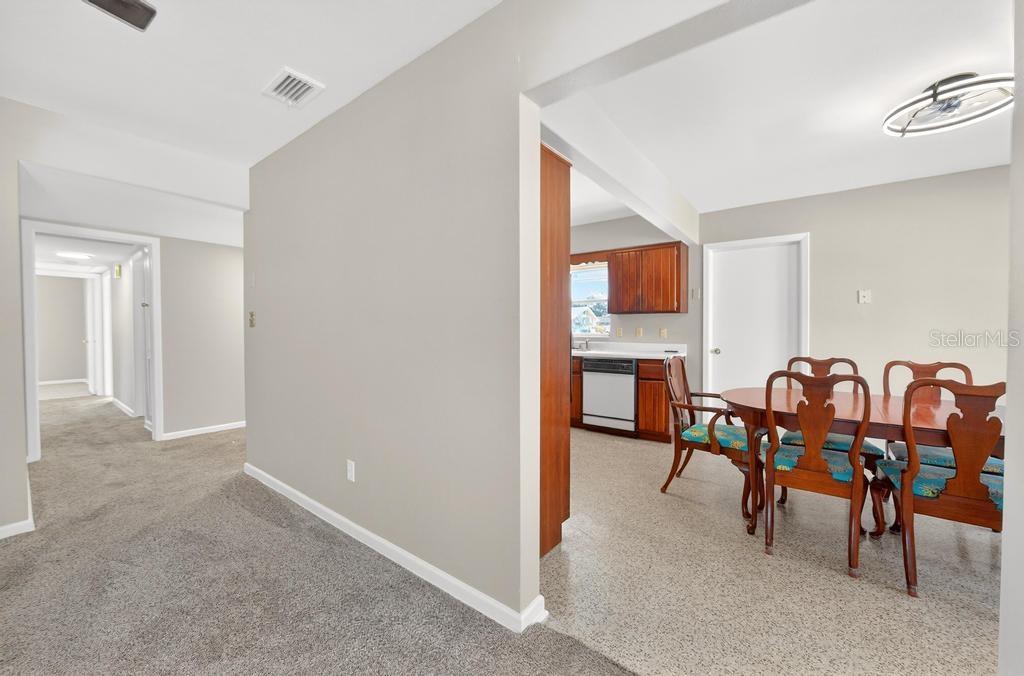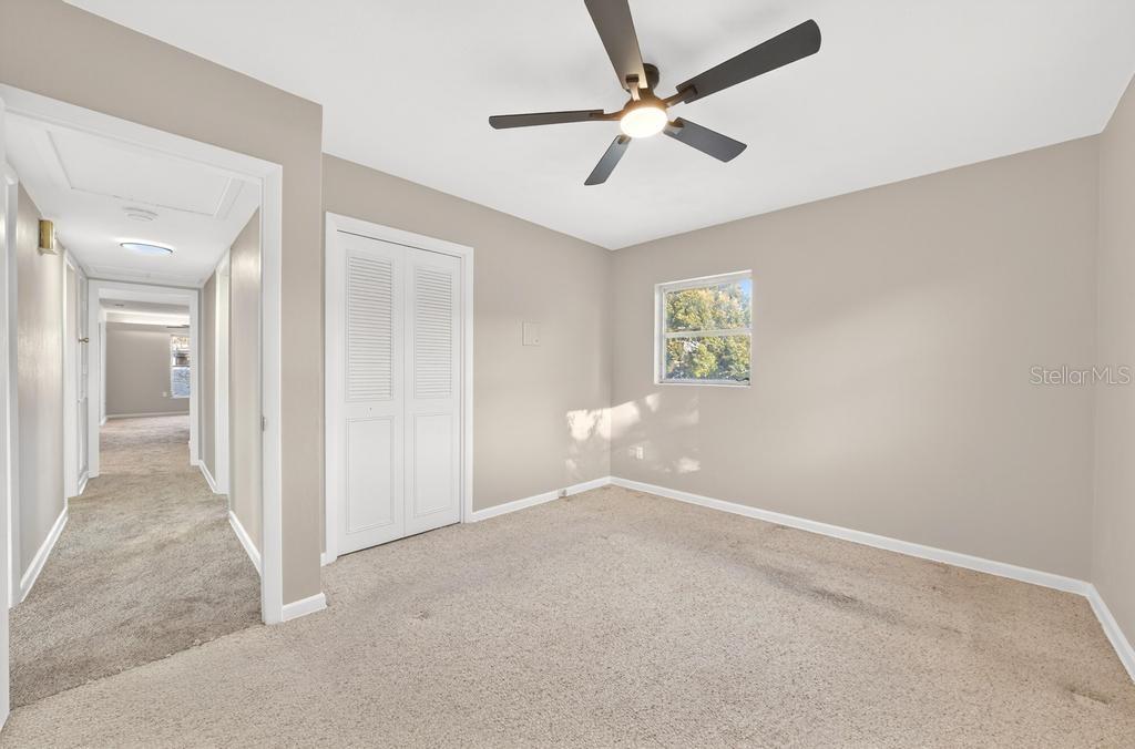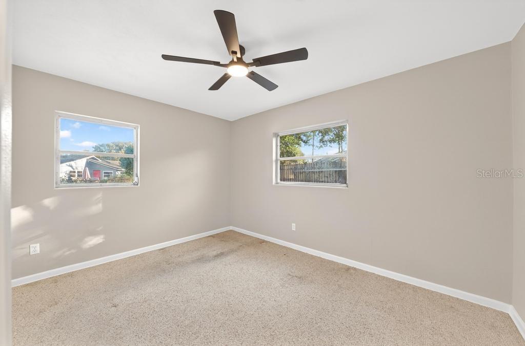 Step into your own private pool home and enjoy the Florida lifestyle. This move-in-ready property has been completely repainted inside and out using high-quality primer and paint, creating a fresh and modern feel throughout. The spacious living room offers an inviting layout with newly installed features including ceiling fans and updated light fixtures, plus a bonus rear sunroom perfect for relaxing or entertaining. Both bathrooms have been professionally reglazed, helping protect the shower and bathtub tile while giving each space a clean, like-new finish. Additional updates include a new vanity, updated shower faucets, and modern hardware. Durable terrazzo flooring throughout much of the home offers character and potential energy efficiency, while the carpeted bedrooms provide added comfort. Solid block construction further contributes to utility savings. Outside, new landscaping with fresh mulch and plants enhances curb appeal. The oversized backyard is fully fenced — ideal for pets or play — and a long driveway leads to an oversized covered carport with additional storage space. Conveniently located just minutes from Downtown Orlando, major roadways, and world-famous theme parks, this unique pool home offers beautiful Orlando views in a well-established neighborhood. The AC has been updated, and the roof is scheduled for 2026.