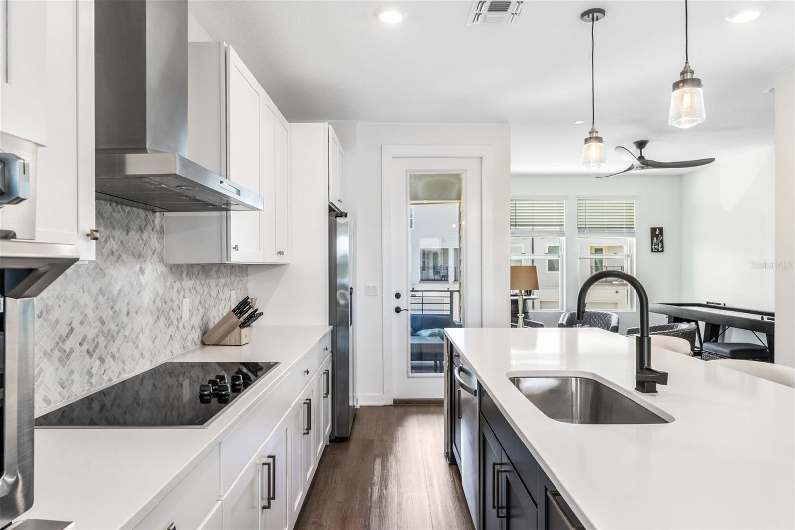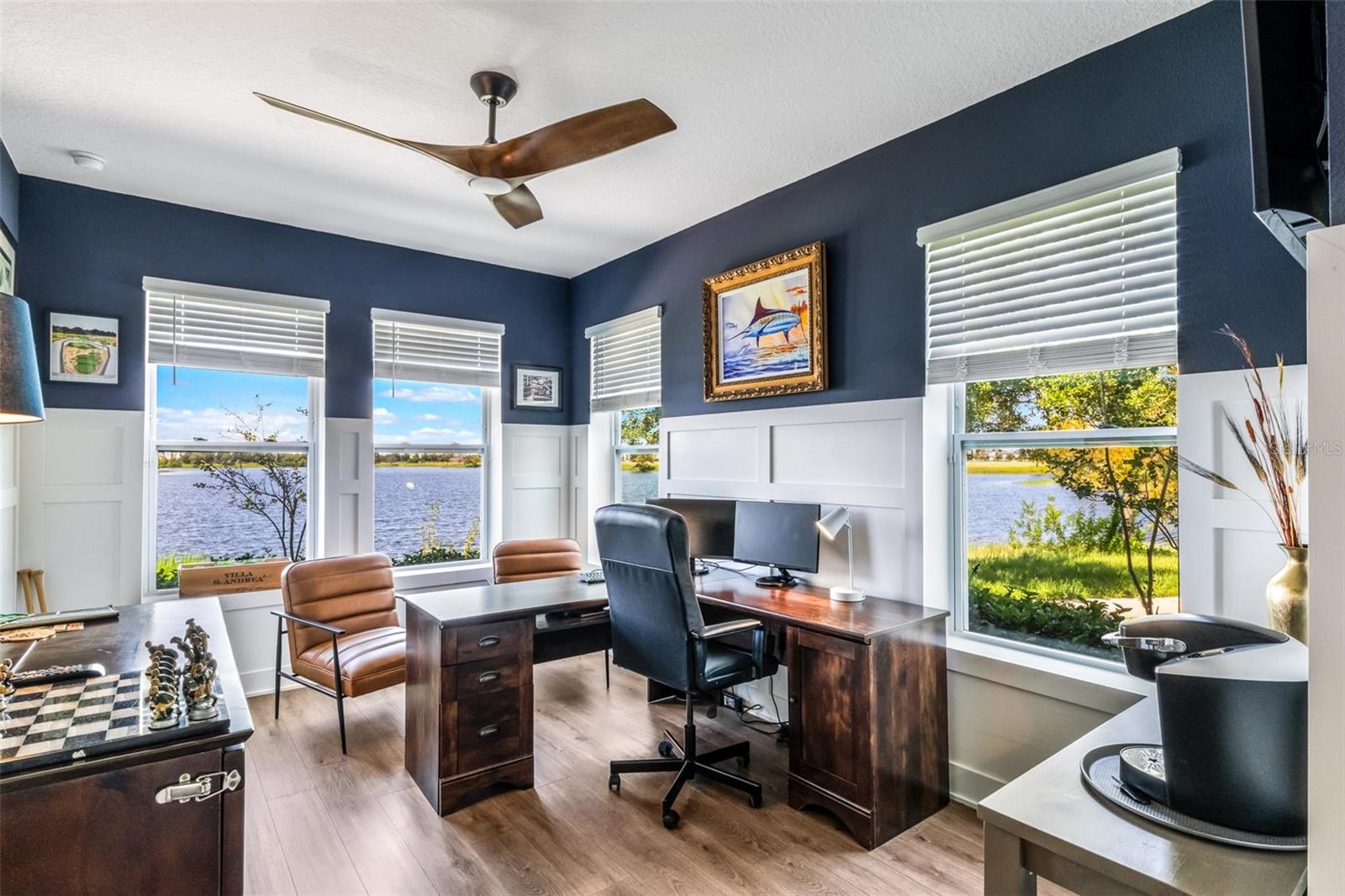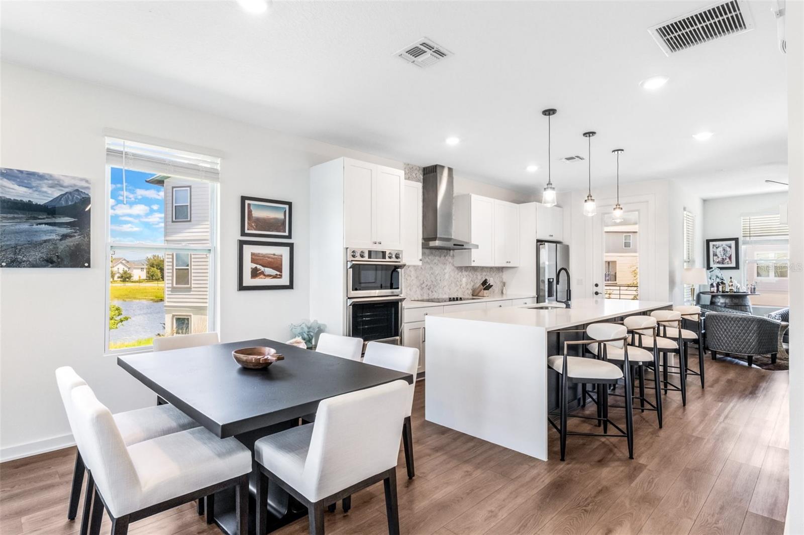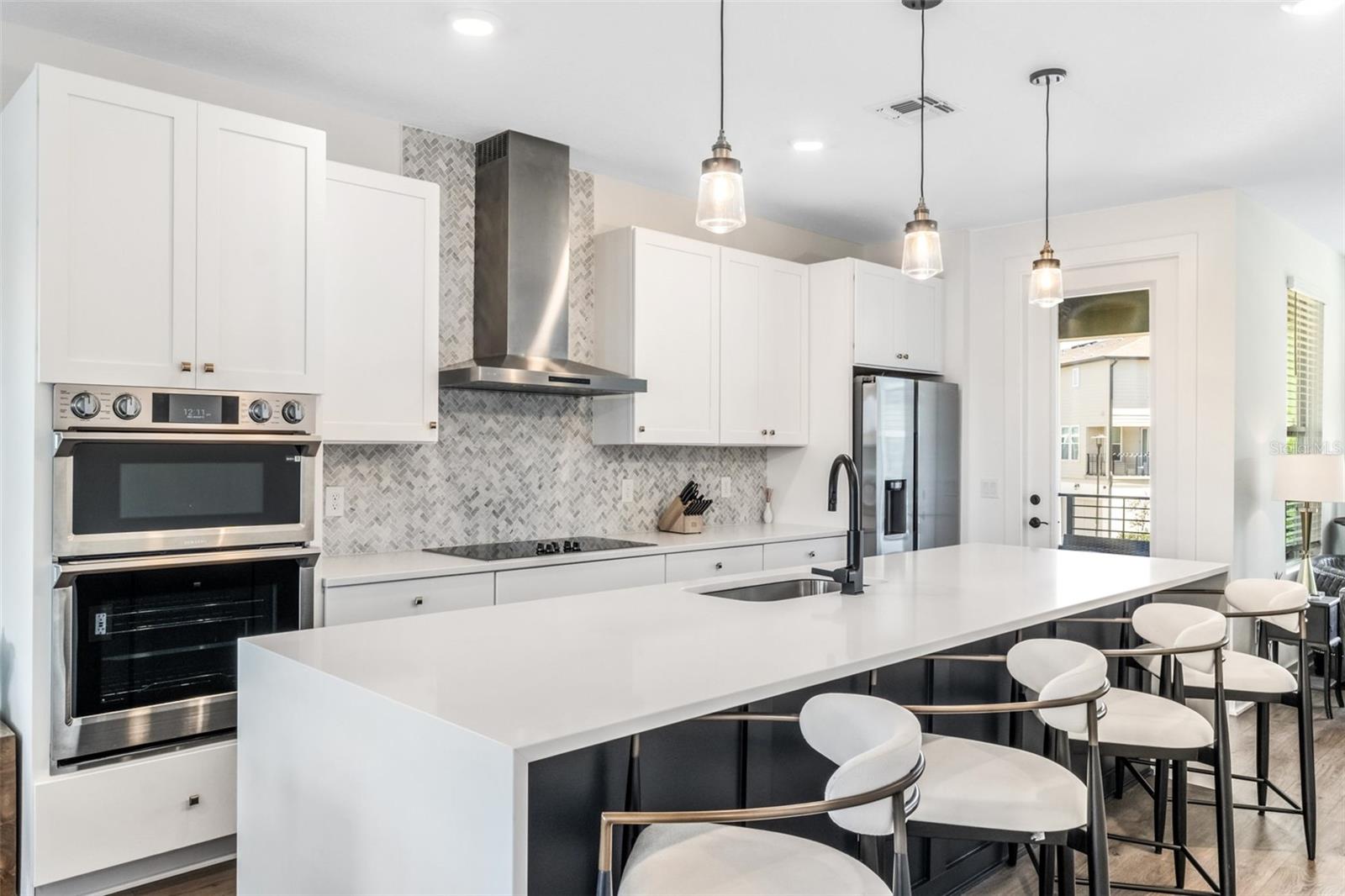 This custom corner luxury townhome screams sophistication with epic water views from nearly every room. We're talking 3 bedrooms, 3.5 baths in a sleek, modern open layout that's perfect for relaxation or throwing epic parties. As a corner unit, there is plenty of natural light and extra privacy. The gourmet kitchen is the total showstopper: massive island, stunning quartz waterfall countertops, top-tier built-in ovens, and premium appliances that make cooking feel like a chef's dream. It flows effortlessly into the living and dining spaces; open-concept magic for seamless entertaining. Level up the fun with a custom built-in bar complete with beverage center and a sleek glass-door wine cellar ready to impress. The spacious owner's suite is a retreat with waterviews from every window! It also features: walk-in closet (custom built-ins galore), spa-like ensuite bath with dual-sink quartz vanity, and an oversized shower featuring a luxurious rain head and steam function. Other killer upgrades: custom fans & lighting throughout, gorgeous woodwork accents and accent walls that add serious style points. Bonus perks: a second-floor balcony begging for sunset cocktails or morning coffee, and thoughtfully designed 2nd and 3rd bedrooms with ensuite full bathrooms that keep everyone comfy and flexible. This isn't just a home, it's your front-row, waterfront seat to the best of Lake Nona living. It's also in a convenient location - not far from the pools, fitness center, coffee shop and Canvas Restaurant and Bar. The community of Laureate Park is in the heart of Lake Nona's Medical City, USTA, KPMG, and Sports District. Plenty of shopping, restaurants and the 417 expressway nearby. Zoned for all A-Rated Lake Nona schools.