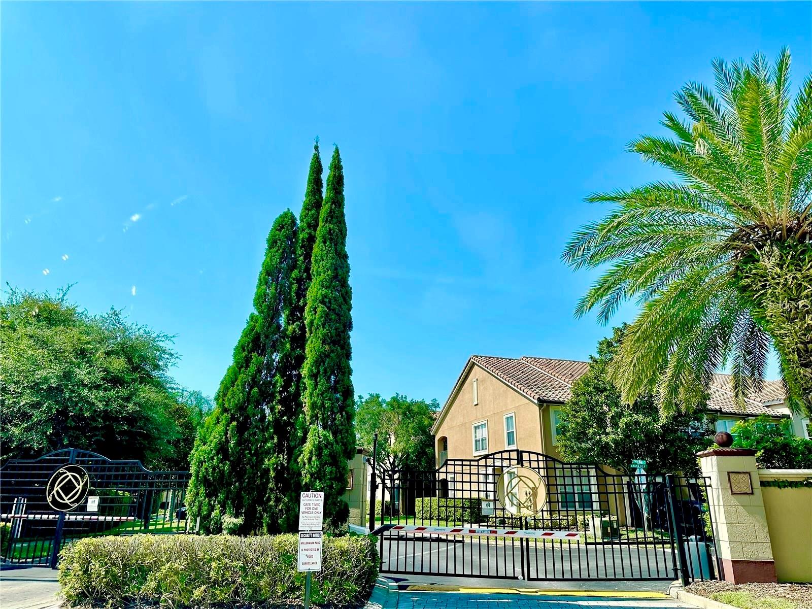 Beautifully maintained 3-bedroom, 2.5-bath townhome offering over 1,500 square feet of thoughtfully designed living space in the sought-after gated community of Millennium Parc. Step inside to an inviting open-concept layout designed for both everyday comfort and effortless entertaining. Just off the entryway, you’ll find a convenient half bath before the space opens into a spacious living and dining room combination. The kitchen overlooks the main living area and features stone countertops, stainless steel appliances, and an extended breakfast bar, perfect for casual dining or adding barstools for guests while entertaining. The home is enhanced with stylish laminate and tile flooring throughout, fixtures, and ceiling fans that add both comfort and charm. Upstairs, all three bedrooms are privately situated. The nice sized primary suite offers a large walk-in closet and indoor/outdoor space, creating a relaxing retreat. Two additional bedrooms and a full bath provide flexibility for family, guests, or a home office. Both sets of french doors lead to your private outdoor downstairs patio, while the upstairs balcony, off the primary bedroom, offers additional space to unwind and enjoy the Florida lifestyle. Ideally located in a central Orlando corridor, this home is just minutes from shopping, dining, supermarkets, and major attractions including The Mall at Millenia, Universal Studios Florida, and Universal CityWalk Orlando. With easy access to Interstate 4 and other major highways, commuting is convenient and seamless. This townhome offers the perfect combination of comfort, style, and location. This an exceptional opportunity in one of Orlando’s most desirable gated communities. Schedule a viewing today!