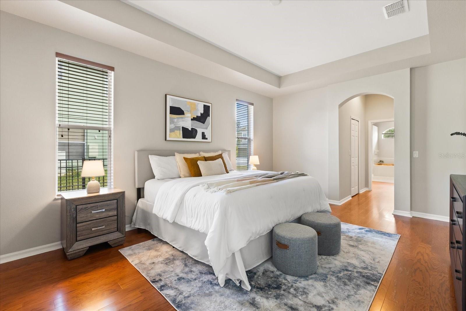 Welcome to 10368 Mallard Landing Way. A spacious 4-bedroom, 3-bath home with a dedicated office offering a beautifully maintained living space in the gated golf community of North Shore at Lake Hart. Perfectly positioned at the end of a quiet cul-de-sac, this home offers exceptional privacy with no neighbors to the left and serene conservation behind. Enjoy the best of both worlds, peaceful surroundings and picturesque fairway scenery on a lakefront street lined with luxury homes. This single-story home features a desirable split floor plan filled with natural light, high ceilings, and elegant architectural details including archways, recessed lighting, decorative fixtures, and engineered hardwood flooring. The centrally located kitchen is designed to impress with granite countertops, stainless steel appliances, abundant storage, and a large eat in kitchen area. The extended owner’s retreat offers dual closets, a garden tub, spacious tiled shower, and dual vanities. Generous secondary bedrooms and a flexible office space provide room for everyone. Step outside through a wall of sliding glass doors to your screened in lanai, perfect for enjoying Florida living year-round. New roof installed in 2024 to add comfort and peace of mind. Residents of North Shore at Lake Hart enjoy resort-style amenities including a community pool, tennis courts, basketball court, fitness center, clubhouse, softball field, playground, fishing pier on Lake Hart, scenic nature trails, a beautiful community dock with lake views, and a dog park with options for both large and small dogs. Conveniently located minutes from Lake Nona Medical City, Orlando International Airport, major highways, Downtown Orlando, Disney, and the Atlantic beaches. Enjoy direct access to SR-417 just one light on Narcoossee from Kirby Smith Road, giving you quick, convenient connectivity without the hassle of driving down Narcoossee. This move-in-ready home offers luxury, privacy, and lifestyle in one of Orlando’s most desirable communities. Don’t miss your opportunity to make it yours!