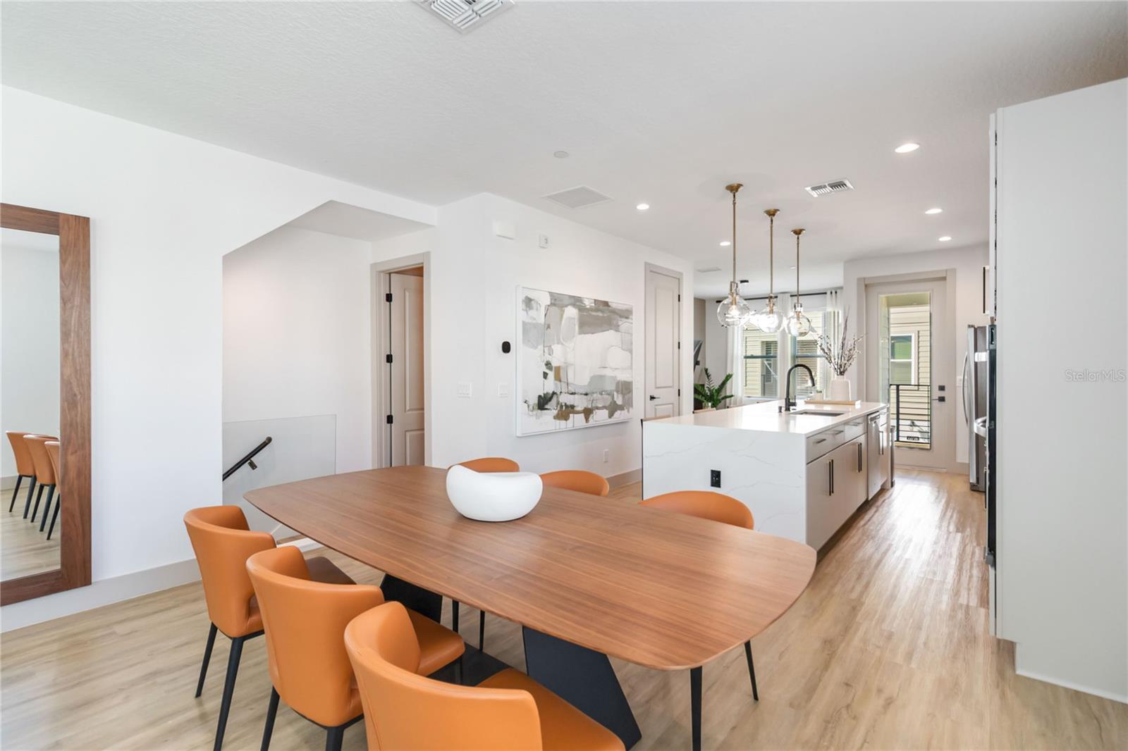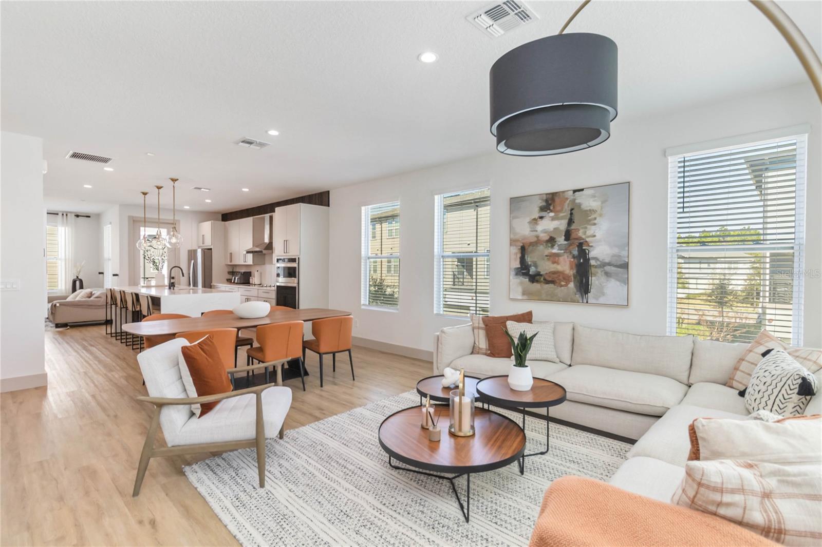 WOW! CUSTOM DESIGNED LUXURY Ashton Woods 3 story townhome with an A+ WALKING SCORE! This amazing home is centrally located just a short walk from the community epicenter “Laureate Park Village Center” and Zip Line Park. Here you’ll find the LP Fitness Center, resort-style pool, and Canvas Market & Restaurant. Not only is this home an END UNIT with tons of lighting and soaring ceilings but it is also fully customized throughout! You’ll find luxury vinyl, custom tile and wood flooring throughout, designed glass stairwell railings, an amazing updated gourmet kitchen and 3 and a half fully customized bathrooms! STARTING ON THE GROUND FLOOR -- Your front entrance connects to a completely private guest bedroom with hall drop zone space, garage access and a fully upgraded CUSTOM ensuite bathroom with marble tiled floor to ceiling walk-in shower and walk in closet. FROM THERE it’s just a few steps up to the 2nd floor OPEN CONCEPT LIVING SPACE which combines the family room, dining area, and a GOURMET KITCHEN featuring upgraded stainless appliances, impressive center island with quartz waterfall countertops and matching quartz backsplash, designer hardware and custom noise canceling wall treatments. The space is completed with a second living space adjacent to a charming, covered balcony perfect for enjoying stunning Lake Nona sunsets. WHEN YOU ARE READY TO RELAX you’ll be just a few more steps away from the primary bedroom suite and 2nd guest suite both complete with their own fully customized ensuite bathrooms and walk in closets plus a stylish laundry room. Additional features an attached two-car garage with epoxy flooring and ample guest parking near the home. HOA includes high-speed internet (up to 1 GIG), fitness center access, resort-style aquatic center, beach volleyball court, and half basketball court. Ideally located in the heart of Lake Nona’s Medical City and convenient to A-rated schools, Orlando International Airport, USTA, KPMG, top-tier shopping, dining, and entertainment. The owners have only used this home a few times a year. It is available furnished but furnishings will be sold separately.