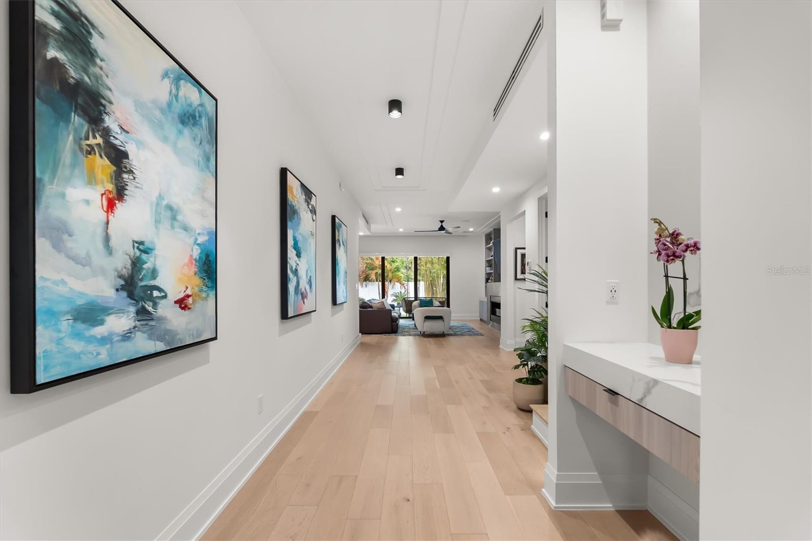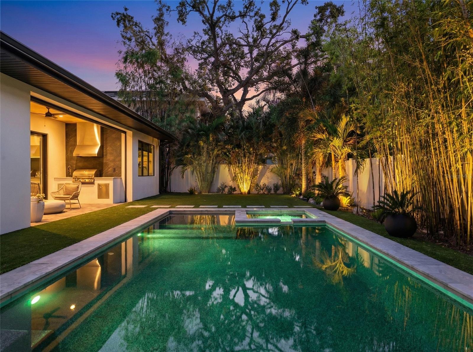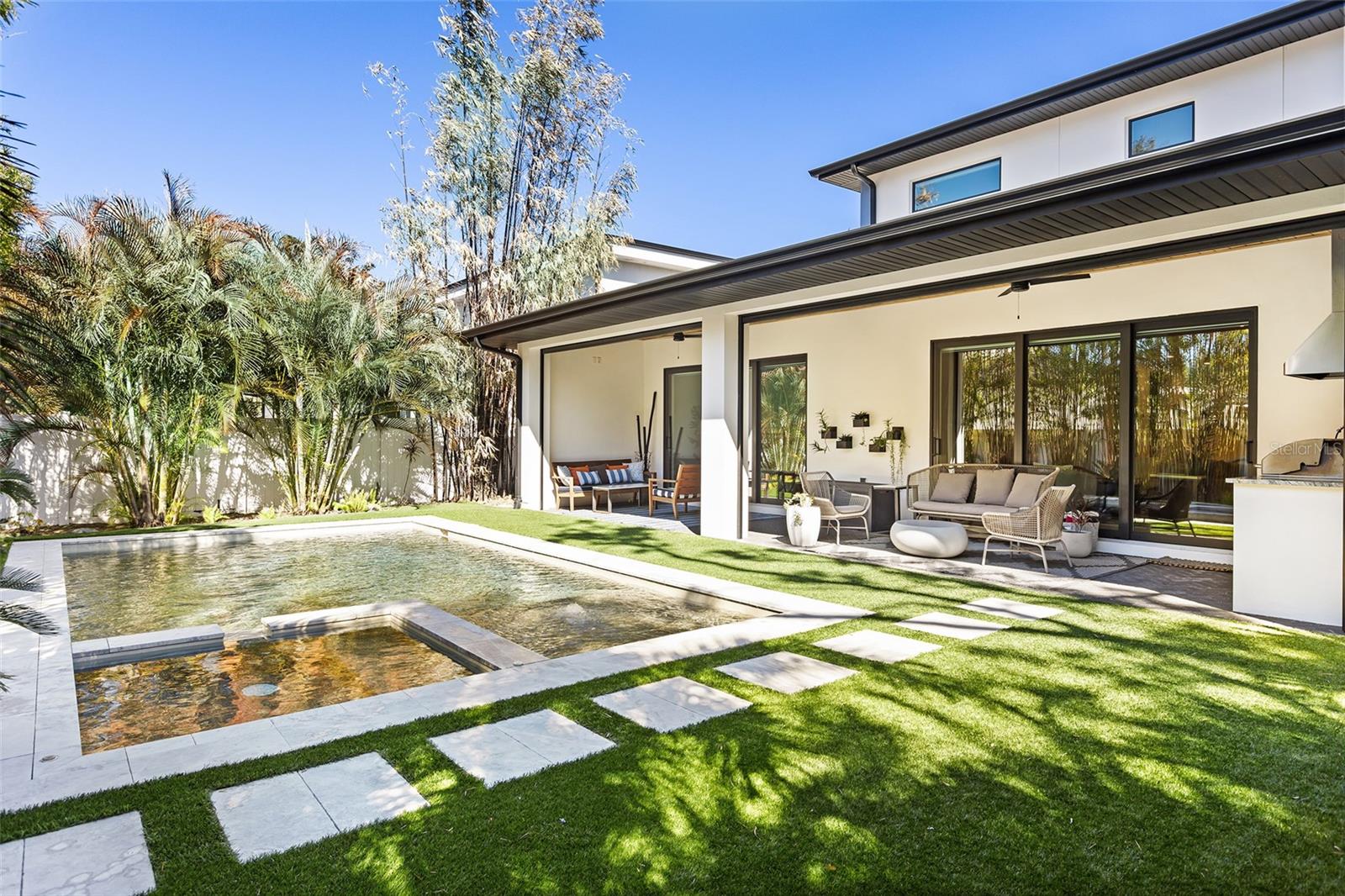 Welcome to a modern home in the heart of College Park that has all the bells and whistles - without the wait or hassle of the new-construction process. It’s truly better than new. Offering over 3,650 square feet of thoughtfully designed living space, this transitional modern residence blends elevated style with everyday comfort. The home features 4 spacious bedrooms, 3.5 bathrooms, a dedicated office, and a first-floor primary suite designed for privacy and ease. At the center of the home, the oversized chef’s kitchen opens effortlessly to the living and dining areas, highlighted by refined ceiling details and sleek linear AC vents. Each bathroom is appointed with marble tiles, custom cabinetry, and LED toe-kick lighting. A premium Dacor appliance package - including a 36" range, paneled 42" refrigerator/freezer, wine fridge, and hidden walk-in pantry creates a true culinary showcase. The indoor-outdoor flow is exceptional. A large rear lanai offers a full summer kitchen, generous entertainment space, and motorized Phantom screens. Beyond it, the backyard lives like a private resort: a gas-heated, saltwater pool finished in midnight-blue PebbleTec, surrounded by sandblasted marble, mature tropical landscaping, smart lighting, and low-maintenance artificial turf that looks pristine year-round. Energy-efficient upgrades include spray-foam insulation, high-end window treatments, a gas tankless water heater, and high-efficiency appliances. Inside, the home features engineered oak flooring, custom closet systems, and a natural gas fireplace that anchors the living space with clean, modern warmth. The home has been freshly painted on both exterior and interior in 2026. Meticulously cared for, loved, and thoughtfully upgraded, this home delivers a level of finish and livability that surpasses most new construction - right in one of College Park’s most desirable pockets.