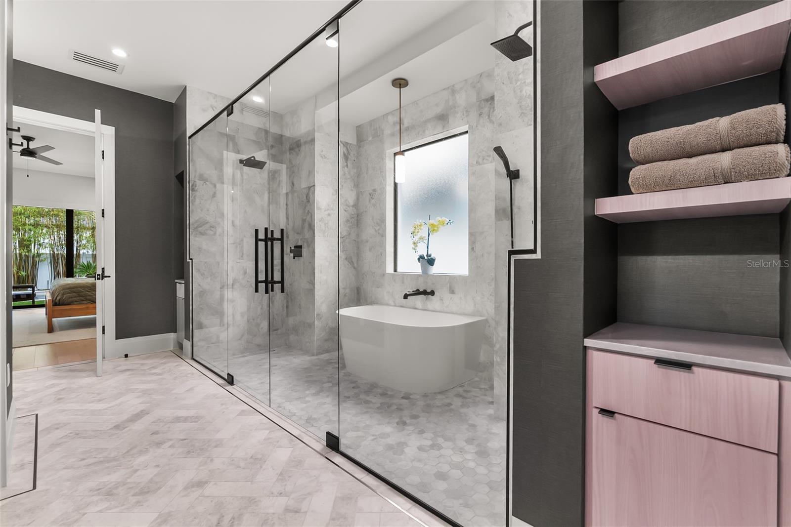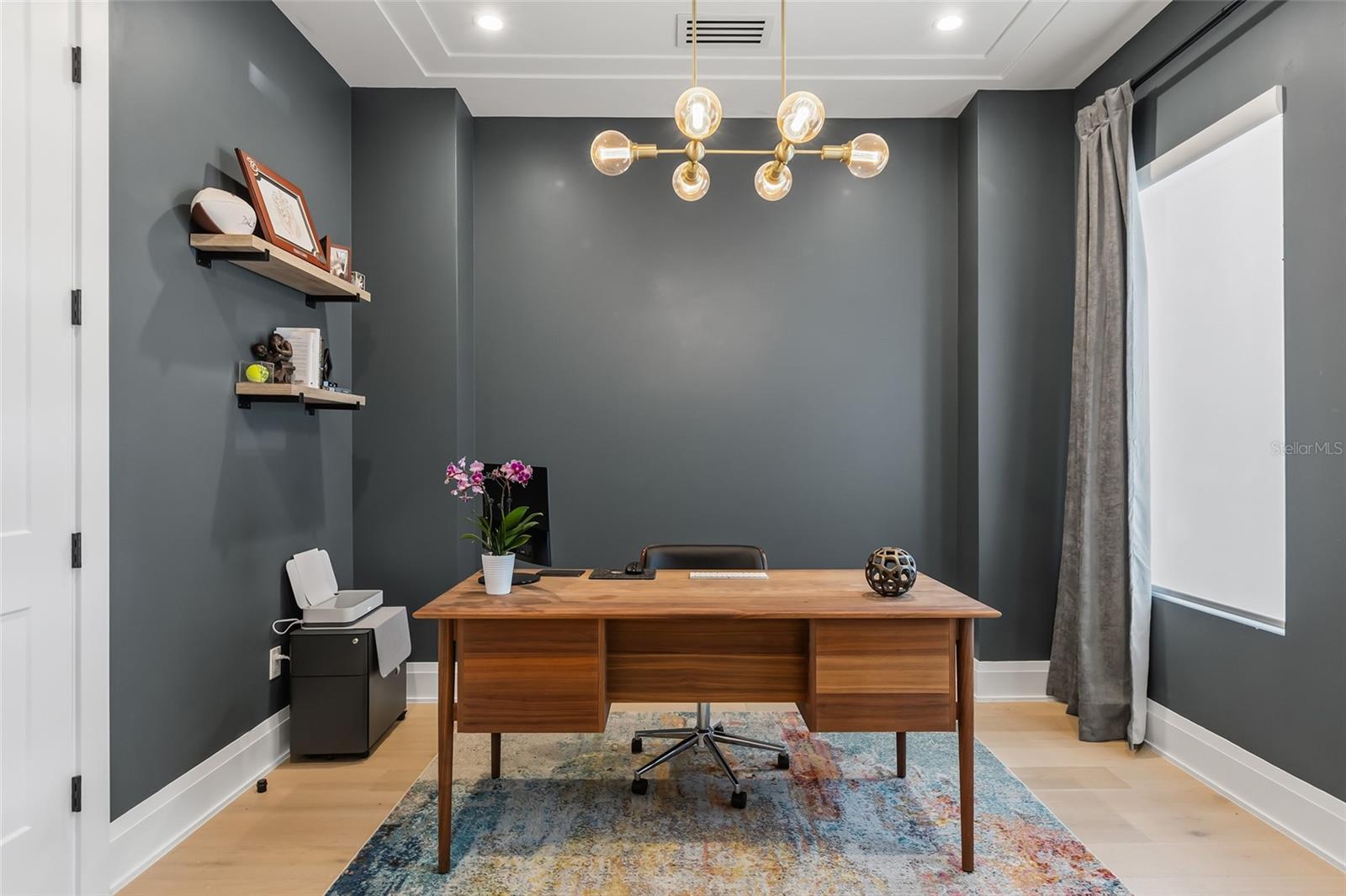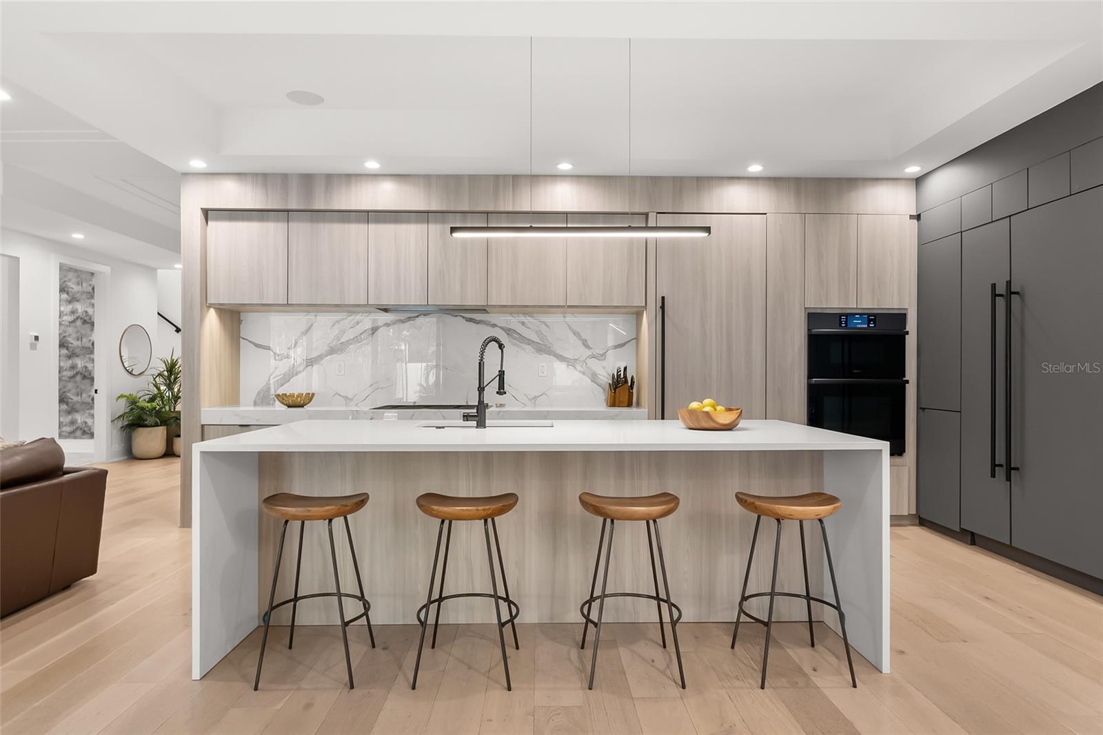 Welcome to a modern home in the heart of College Park that has all the bells and whistles - without the wait or hassle of the new-construction process. It’s truly better than new. Offering over 3,650 square feet of thoughtfully designed living space, this transitional modern residence blends elevated style with everyday comfort. The home features 4 spacious bedrooms, 3.5 bathrooms, a dedicated office, and a first-floor primary suite designed for privacy and ease. At the center of the home, the oversized chef’s kitchen opens effortlessly to the living and dining areas, highlighted by refined ceiling details and sleek linear AC vents. Each bathroom is appointed with marble tiles, custom cabinetry, and LED toe-kick lighting. A premium Dacor appliance package - including a 36" range, paneled 42" refrigerator/freezer, wine fridge, and hidden walk-in pantry creates a true culinary showcase. The indoor-outdoor flow is exceptional. A large rear lanai offers a full summer kitchen, generous entertainment space, and motorized Phantom screens. Beyond it, the backyard lives like a private resort: a gas-heated, saltwater pool finished in midnight-blue PebbleTec, surrounded by sandblasted marble, mature tropical landscaping, smart lighting, and low-maintenance artificial turf that looks pristine year-round. Energy-efficient upgrades include spray-foam insulation, high-end window treatments, a gas tankless water heater, and high-efficiency appliances. Inside, the home features engineered oak flooring, custom closet systems, and a natural gas fireplace that anchors the living space with clean, modern warmth. The home has been freshly painted on both exterior and interior in 2026. Meticulously cared for, loved, and thoughtfully upgraded, this home delivers a level of finish and livability that surpasses most new construction - right in one of College Park’s most desirable pockets.