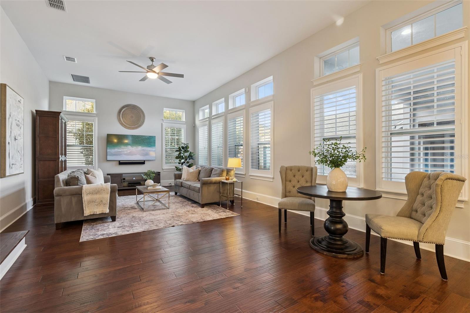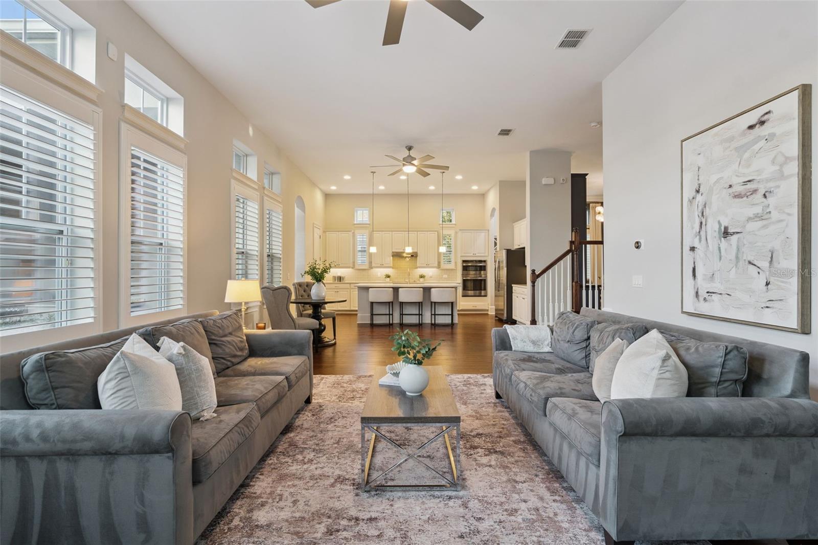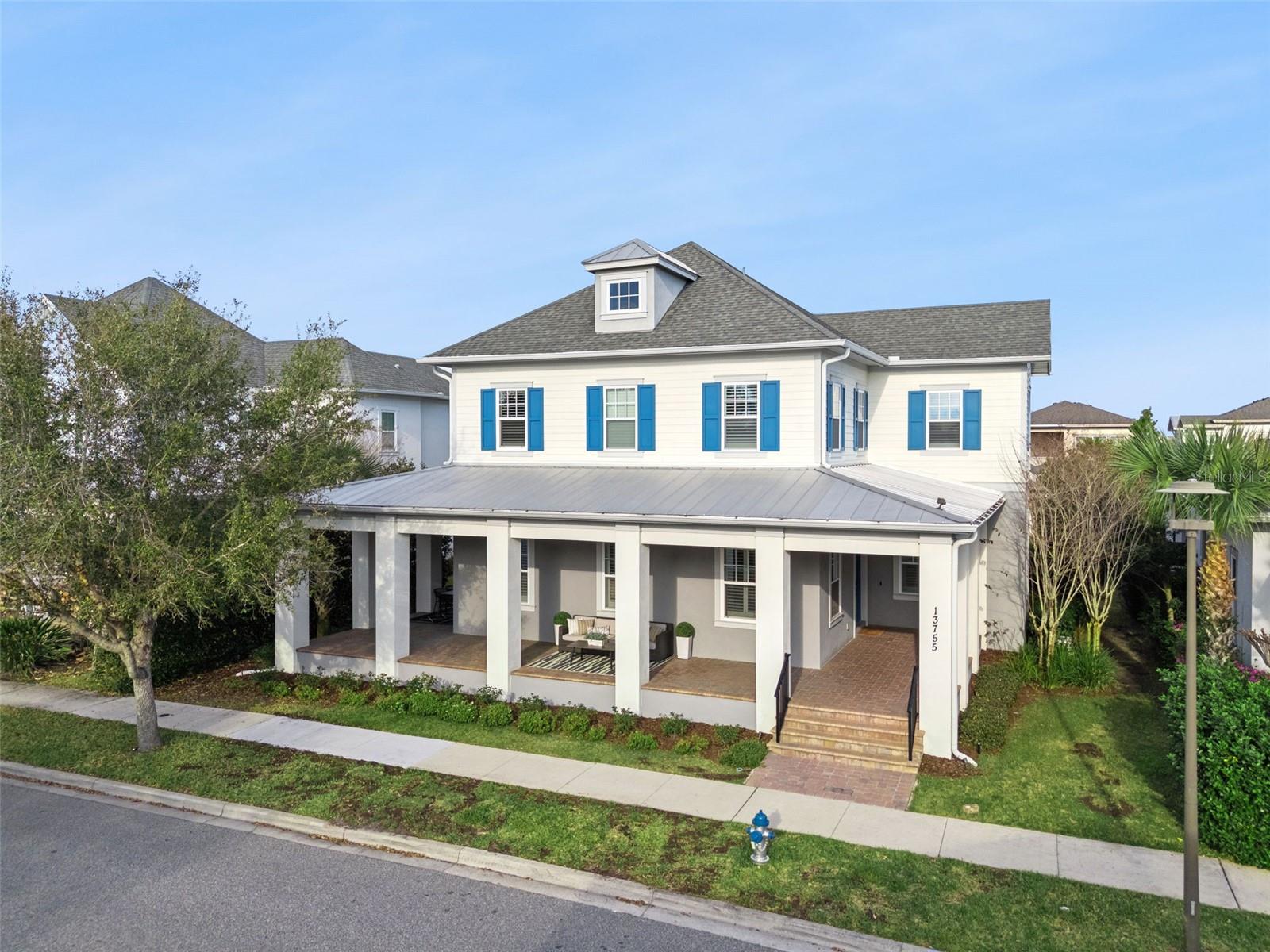 One or more photo(s) has been virtually staged. *** SUNSET PORCH LAKEVIEWS LUXURY *** If you have been waiting for a truly special home in this community, this is it. ONE OF ONLY FIVE of this highly sought after Packard floor plan, 13755 Granger Avenue pairs a massive WRAPAROUND FRONT PORCH, designer finishes, and a rare PRIVATE CASITA that feels like its own retreat. The layout lives like a dream with a FIRST FLOOR PRIMARY SUITE, a showpiece dining space, and effortless indoor outdoor flow. This is the kind of home that stops people in their tracks the moment they arrive. Offering 3,892 SQUARE FEET, this exceptional luxury residence delivers a rare blend of refined design, thoughtful function, and a location within easy WALKING DISTANCE TO AMENITIES. From the moment you arrive, the home makes a statement with its massive WRAPAROUND FRONT PORCH, the perfect place to unwind and enjoy gorgeous SUNSET VIEWS and breathtaking LAKE VIEWS. Inside, rich wide plank wood floors, tall ceilings, and abundant natural light set a refined tone throughout. A dedicated home office just off the entry features CUSTOM BUILT INS, creating a polished, functional workspace. The formal dining space is an absolute showpiece, featuring a stunning designer chandelier, statement accent wall, and a custom built in serving and beverage bar with open shelving and a WINE FRIDGE, creating the perfect setting for hosting. At the heart of the home, the CHEF INSPIRED KITCHEN is both beautiful and functional, showcasing crisp cabinetry, QUARTZ COUNTERS, a large center island with seating, stainless appliances, a cooktop, and DOUBLE WALL OVENS. A spacious WALK IN PANTRY and an additional beverage and wine station add the kind of convenience and sophistication luxury buyers expect. The kitchen flows seamlessly into the expansive family room, framed by walls of windows with PLANTATION SHUTTERS that bring in gorgeous natural light and capture the peaceful outdoor setting. The PRIMARY RETREAT is on the first floor and is designed as a true escape. The oversized bedroom features soaring ceilings, beautiful natural light, and plenty of space for a sitting area, creating a calm, private haven at the end of the day. The spa inspired bath offers a long double vanity, a SOAKING TUB, and an OVERSIZED WALK IN SHOWER, all under dramatic ceiling height that elevates the experience, plus a CUSTOM WALK IN CLOSET in the primary bedroom for effortless storage and organization. Upstairs, you will find three additional bedrooms, two full bathrooms, and a spacious loft that offers the perfect second living area, media room, or game space. Step outside to enjoy a large backyard designed for the Florida lifestyle, anchored by a gorgeous SUMMER KITCHEN and COVERED OUTDOOR LIVING area that makes entertaining feel effortless year round. Whether you are hosting game day, family celebrations, or a quiet dinner at home, this outdoor setup truly extends the living space. Check out our AI inspired deign idea for POOL INSPIRATION and the amazing appeal for the separate PRIVATE CASITA with a full bathroom and walk in closet, ideal for multigenerational living, guests, a private studio, or a luxe work from home space. Perfectly positioned within easy WALKING DISTANCE TO AMENITIES, this home is a rare opportunity to own a truly standout residence where space, style, and lifestyle come together in one exceptional address.