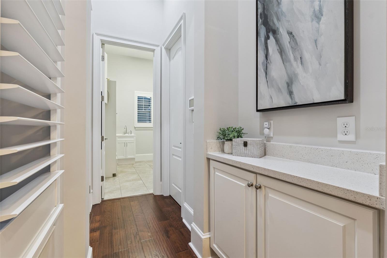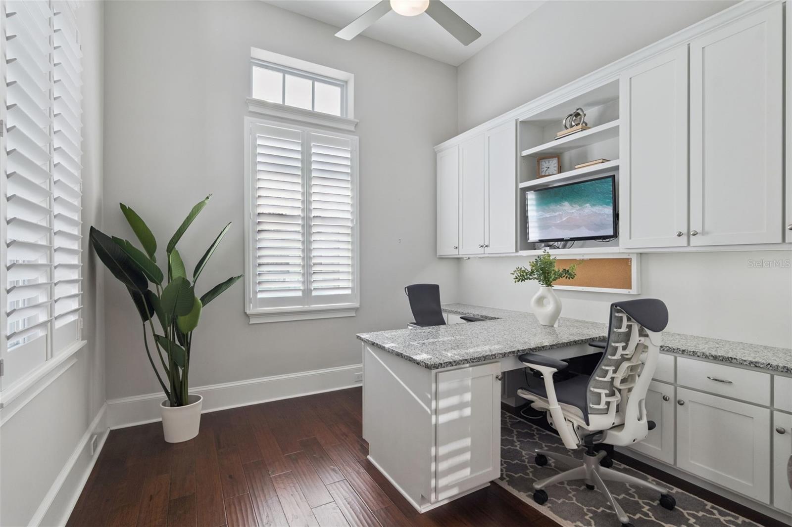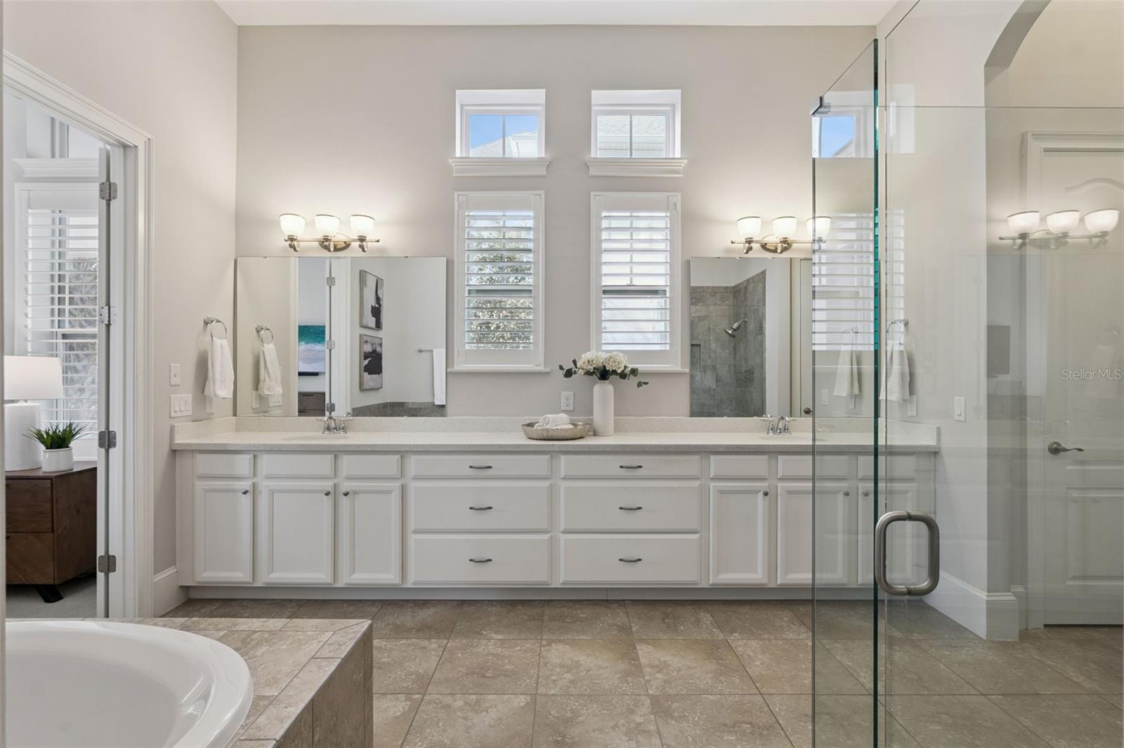 One or more photo(s) has been virtually staged. *** SUNSET PORCH LAKEVIEWS LUXURY *** If you have been waiting for a truly special home in this community, this is it. ONE OF ONLY FIVE of this highly sought after Packard floor plan, 13755 Granger Avenue pairs a massive WRAPAROUND FRONT PORCH, designer finishes, and a rare PRIVATE CASITA that feels like its own retreat. The layout lives like a dream with a FIRST FLOOR PRIMARY SUITE, a showpiece dining space, and effortless indoor outdoor flow. This is the kind of home that stops people in their tracks the moment they arrive. Offering 3,892 SQUARE FEET, this exceptional luxury residence delivers a rare blend of refined design, thoughtful function, and a location within easy WALKING DISTANCE TO AMENITIES. From the moment you arrive, the home makes a statement with its massive WRAPAROUND FRONT PORCH, the perfect place to unwind and enjoy gorgeous SUNSET VIEWS and breathtaking LAKE VIEWS. Inside, rich wide plank wood floors, tall ceilings, and abundant natural light set a refined tone throughout. A dedicated home office just off the entry features CUSTOM BUILT INS, creating a polished, functional workspace. The formal dining space is an absolute showpiece, featuring a stunning designer chandelier, statement accent wall, and a custom built in serving and beverage bar with open shelving and a WINE FRIDGE, creating the perfect setting for hosting. At the heart of the home, the CHEF INSPIRED KITCHEN is both beautiful and functional, showcasing crisp cabinetry, QUARTZ COUNTERS, a large center island with seating, stainless appliances, a cooktop, and DOUBLE WALL OVENS. A spacious WALK IN PANTRY and an additional beverage and wine station add the kind of convenience and sophistication luxury buyers expect. The kitchen flows seamlessly into the expansive family room, framed by walls of windows with PLANTATION SHUTTERS that bring in gorgeous natural light and capture the peaceful outdoor setting. The PRIMARY RETREAT is on the first floor and is designed as a true escape. The oversized bedroom features soaring ceilings, beautiful natural light, and plenty of space for a sitting area, creating a calm, private haven at the end of the day. The spa inspired bath offers a long double vanity, a SOAKING TUB, and an OVERSIZED WALK IN SHOWER, all under dramatic ceiling height that elevates the experience, plus a CUSTOM WALK IN CLOSET in the primary bedroom for effortless storage and organization. Upstairs, you will find three additional bedrooms, two full bathrooms, and a spacious loft that offers the perfect second living area, media room, or game space. Step outside to enjoy a large backyard designed for the Florida lifestyle, anchored by a gorgeous SUMMER KITCHEN and COVERED OUTDOOR LIVING area that makes entertaining feel effortless year round. Whether you are hosting game day, family celebrations, or a quiet dinner at home, this outdoor setup truly extends the living space. Check out our AI inspired deign idea for POOL INSPIRATION and the amazing appeal for the separate PRIVATE CASITA with a full bathroom and walk in closet, ideal for multigenerational living, guests, a private studio, or a luxe work from home space. Perfectly positioned within easy WALKING DISTANCE TO AMENITIES, this home is a rare opportunity to own a truly standout residence where space, style, and lifestyle come together in one exceptional address.