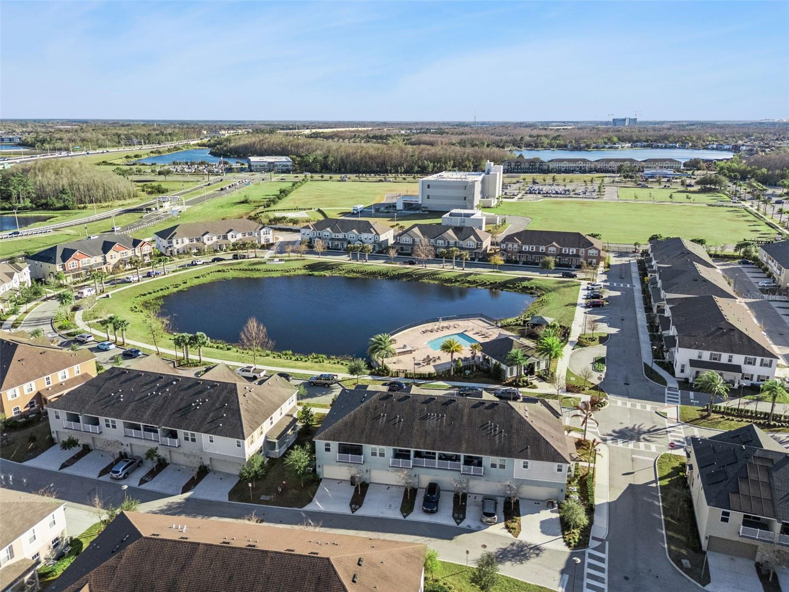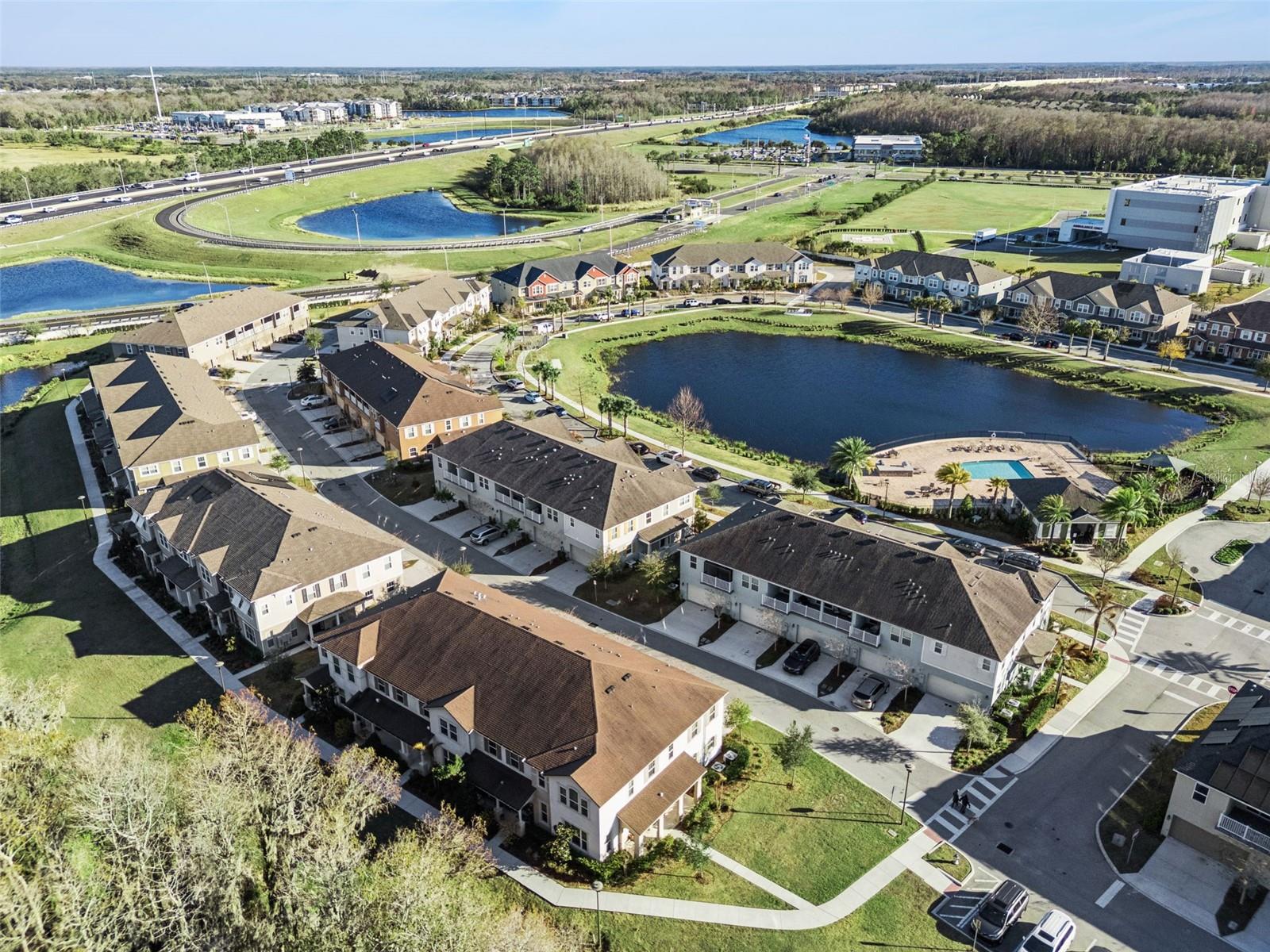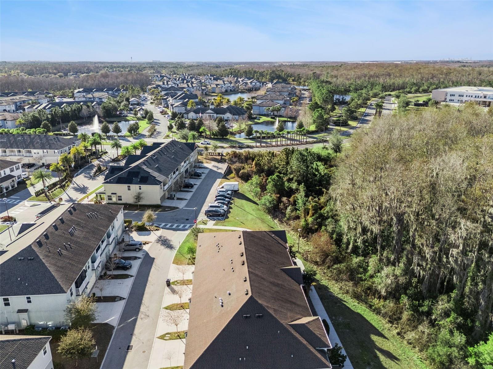 Immaculate and truly turnkey, this 3-bedroom, 2.5-bath Mattamy Homes townhome offers 1,528 square feet of stylish, energy-efficient living in the highly sought-after Lake Nona area. Situated in a prime location with serene views, the first floor welcomes you to a spacious open floor concept with 9’ ceilings and a kitchen with 42” cabinets, granite countertops, stainless still appliances, pendant lighting and a large closet pantry. Enjoy peaceful conservation views while cooking or hosting guests. The primary suite is a private retreat with a tray ceiling, large walk-in closet with custom shelving. The sliding glass door leads to your private oversized balcony — perfect for your morning coffee. The en-suite bath features a double-sink vanity, walk-in shower and luxurious soaking tub. Two additional generously sized bedrooms share a well-appointed full bath. Upstairs also includes a convenient laundry area and an oversized linen closet. Additional highlights include a spacious two-car garage with a wall-mounted garage door opener with battery backup in case of power outages, 18" ceramic tile throughout the house, professionally prewired outlets for 5 speaker surround sound. Located in a gated community offering a pool, outdoor kitchen, and playground. This Energy Star-certified home includes a smart thermostat, energy-saving water heater, R-38 ceiling insulation, LOW-E double-pane windows. Zoned for top-rated Lake Nona schools and conveniently located just minutes from HWY 417, Orlando Health, Nemours Children’s Hospital, Lake Nona Town Center, Boxi Park and Orlando International Airport. Move-in ready - this is Lake Nona living at its best.