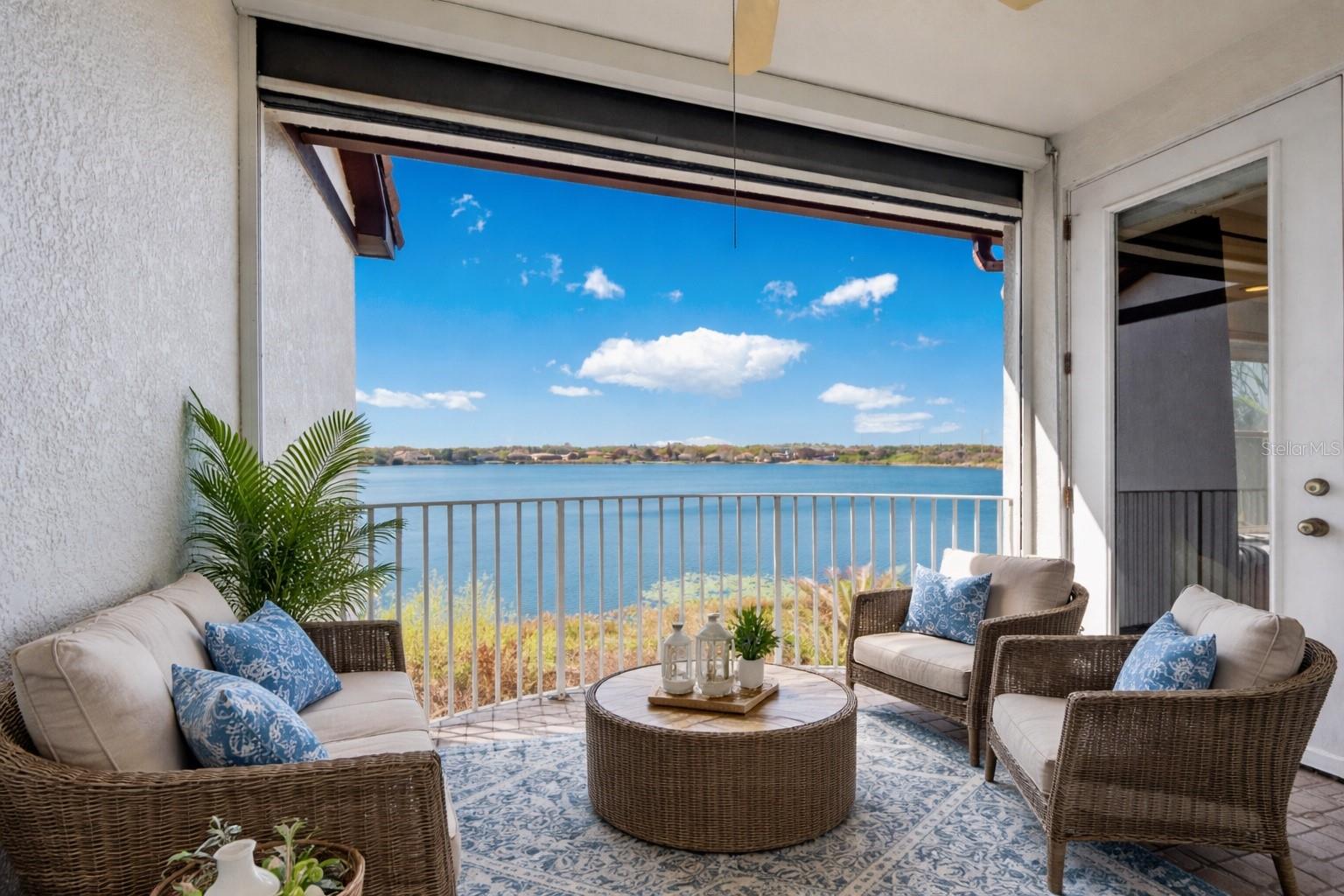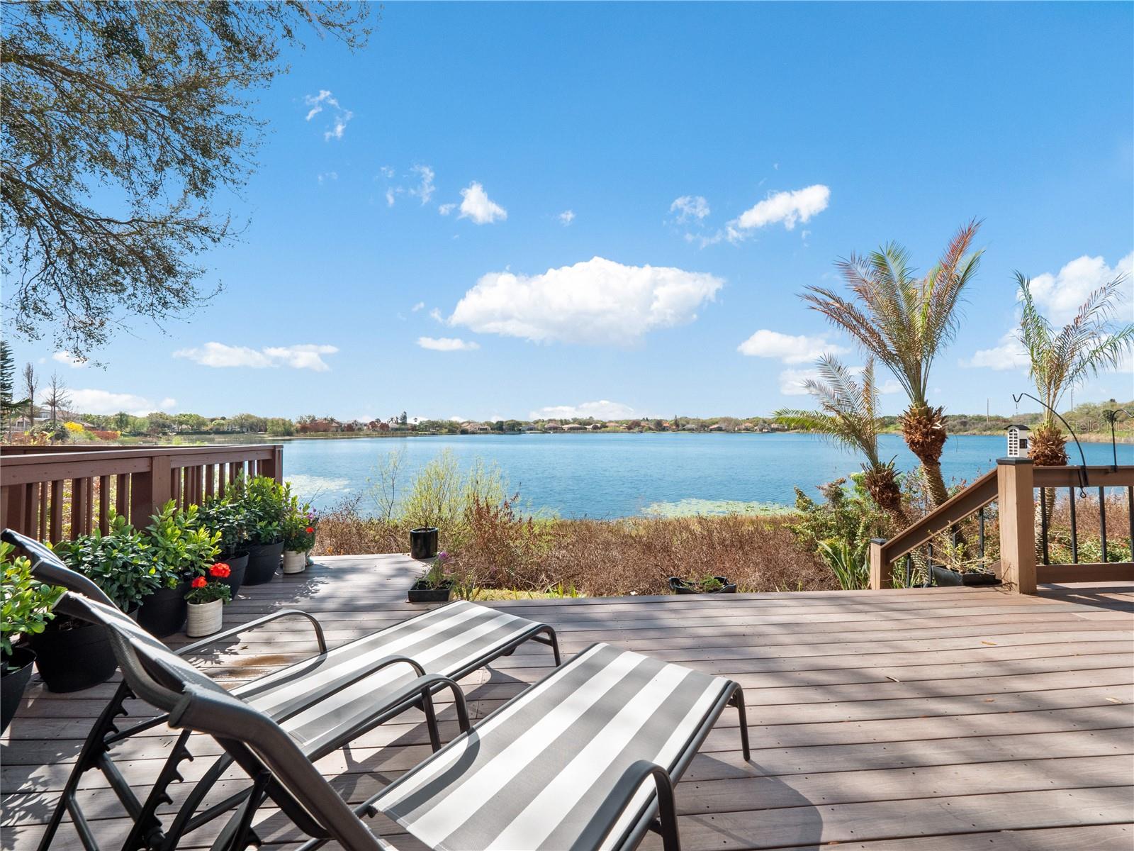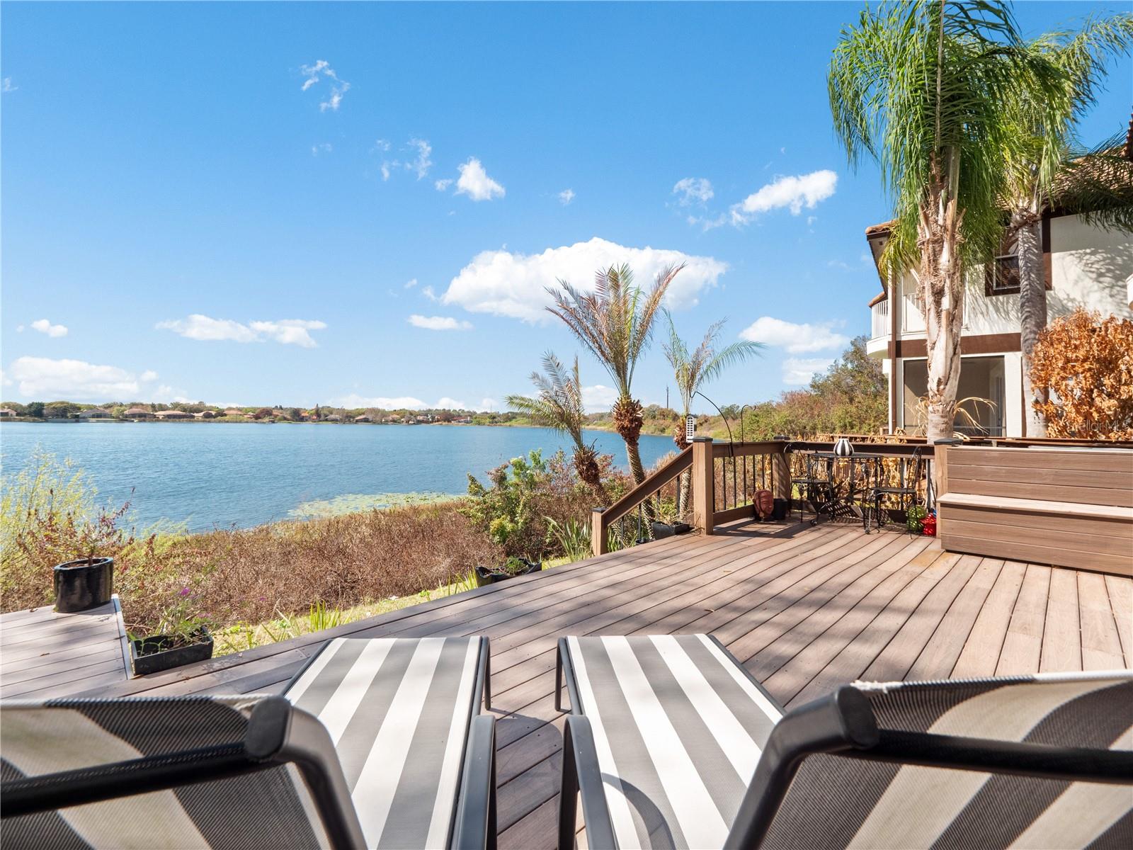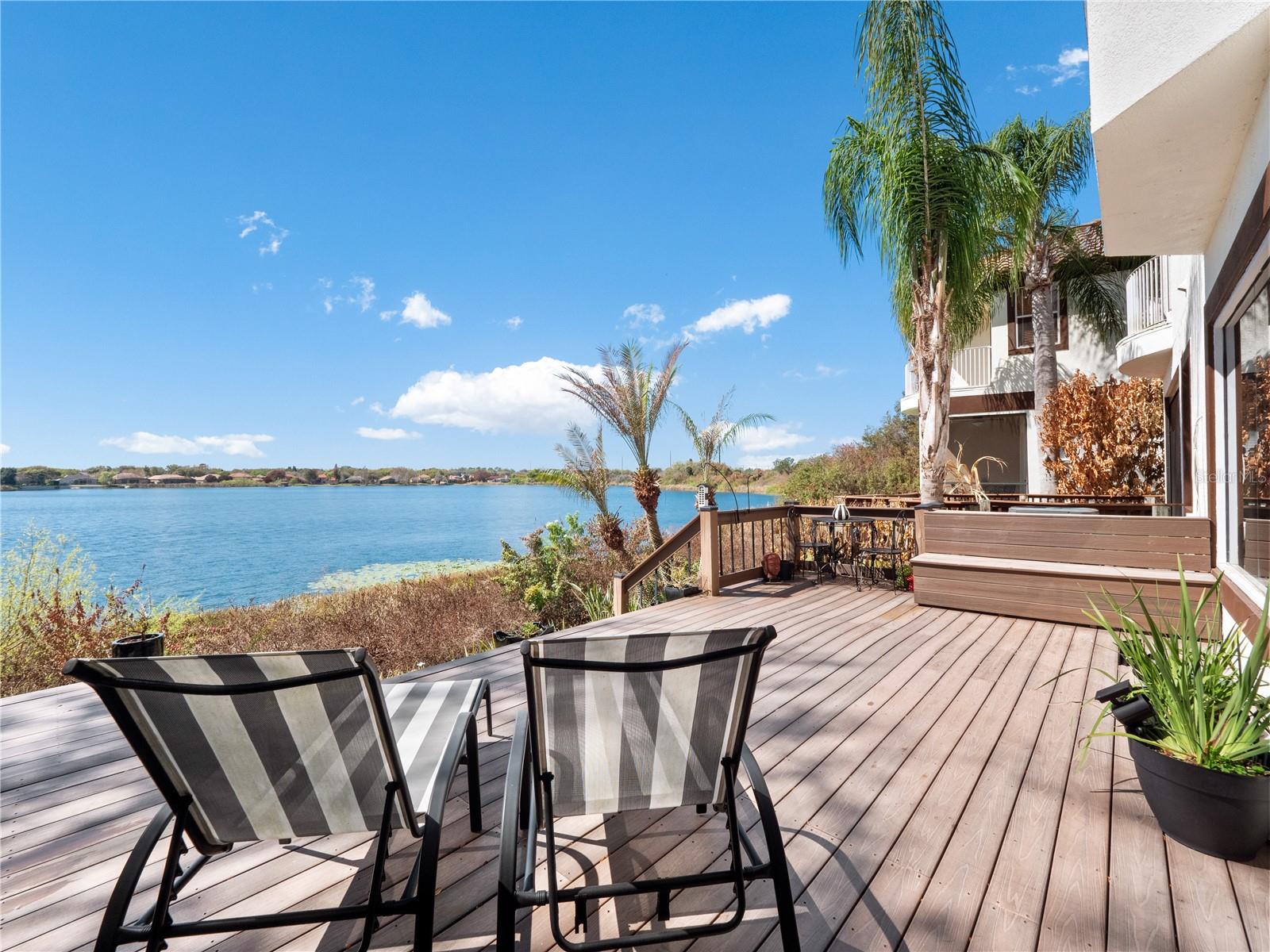 Absolutely stunning LAKEFRONT town home with breathtaking water views in the highly sought-after guard-gated community of Vizcaya, right in the heart of Dr. Phillips! Step through the impressive 8-foot entry door and immediately notice the fresh interior paint, elegant crown molding, and magnificent engineered hardwood flooring flowing throughout the main level. Natural light pours into the home, creating a warm and inviting space that truly feels special. The first floor offers two spacious living areas, both showcasing spectacular lake views, the perfect backdrop for relaxing evenings or entertaining friends and family. Step outside onto the expansive deck overlooking the water, an ideal place to gather with loved ones or unwind at the end of the day while enjoying the peaceful lakefront setting and the lifestyle this beautiful home offers. The chef-inspired kitchen is a true showpiece, featuring real wood cabinetry with upper and under-cabinet lighting, exotic granite countertops with a bullnose finish, stainless steel appliances, and a beautiful breakfast bar that flows seamlessly into the dining nook. Downstairs also offers a generous laundry room with sink and ample cabinet storage. TANKLESS WATER HEATER and NEW HVAC (2024) provide peace of mind and make this home truly move-in ready, just bring your bags! Upstairs, durable stain-resistant Berber carpet leads you to two expansive loft areas offering endless possibilities for a home office, media room, or additional living space. The primary suite is a true retreat featuring a beautiful bay window as well as a fabulous balcony where you can even catch fireworks in the distance, especially on holidays! Enjoy a spacious walk-in closet with custom organizer and a private balcony perfect for sipping your morning coffee while taking in peaceful lake views. The en-suite bath features a relaxing jacuzzi tub, walk-in shower, and dual vanities. Two additional guest bedrooms are generously sized with walk-in closets, newer ceiling fans with lights and share a convenient Jack-and-Jill bathroom. Vizcaya offers resort-style living with amenities including a community pool, fitness center, gated dog park, and picnic areas. Located walking distance to Restaurant Row and zoned for A-rated schools, with easy access to I-4, Orlando International Airport, and Central Florida’s world-class shopping, dining, and entertainment. Lakefront end-unit opportunities in Vizcaya are rare, schedule your private tour today and experience it for yourself!