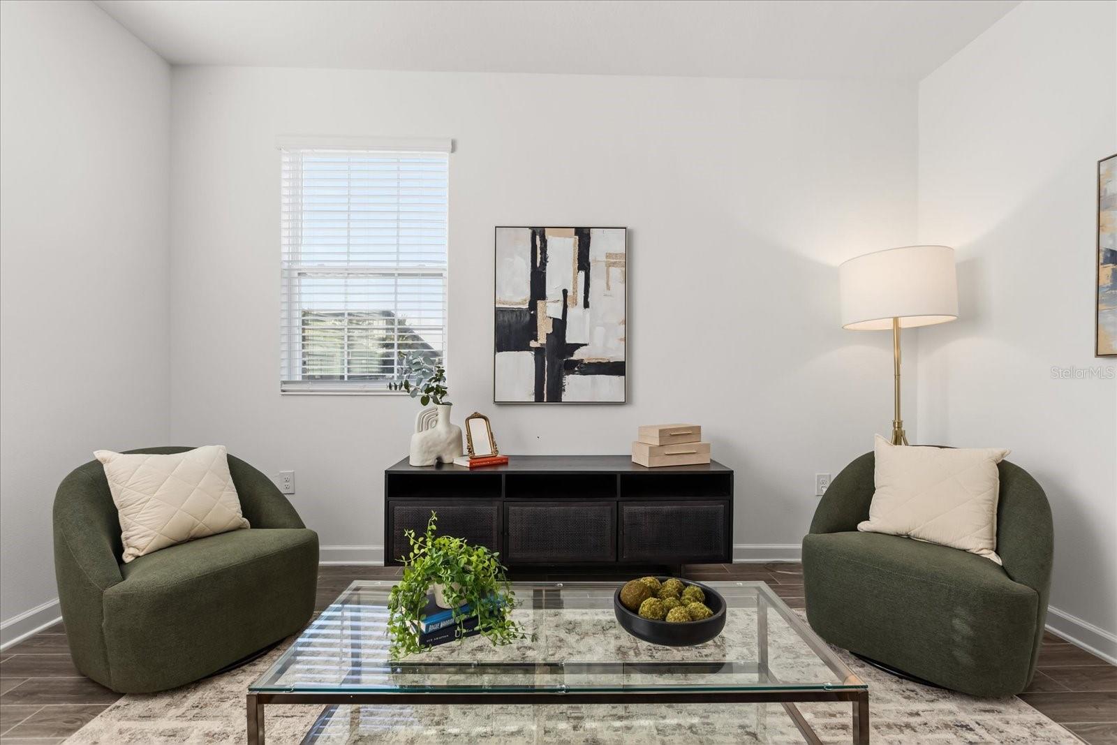 Why wait to build? Stunning, 3 bed, 2.5 bath, end-unit, like-new townhome built in 2022 is move-in ready and waiting for you. This unique property is in the best location – a corner lot across the street from the community clubhouse/pool/fitness center. Stepping up to the large, covered front porch and through the contemporary designed glass front door, you’ll find beautiful wood-look ceramic tile floors running throughout the entire first floor and flush mount LED lighting fixtures throughout the house. Benefits of a corner unit, you’ll have 5 extra windows offering a light and bright living and dining room area. There are even more gathering spaces just past the half-bath and into the open-plan kitchen and family room. The designer color palate of the kitchen is sure to please with an elegant gray subway tile backsplash, white wood 42” cabinets with crown molding, solid gray quartz countertops, fingerprint resistant stainless steel GE appliances, and breakfast bar with sink; watching TV in the family room while washing dishes in the kitchen is so convenient. And don’t miss the walk-in pantry in the under-the stair space (so much storage). The practical indoor laundry room is also a great drop-zone area from your covered, paver breezeway leading to the detached 2 car garage. Plus, as an end-unit you won’t have neighbors looking down into your private back courtyard, offering extra open space with the fully fenced backyard; a perfect spot to grill-out and entertain family and friends with no-hassle yard maintenance. All bedrooms are upstairs, and the spacious primary suite has a lot to offer with a double set of windows, huge walk-in closet (10’ x 7’), and en-suite with double sink, quartz-top vanity, and large, tiled, walk-in shower. The two good-sized secondary bedrooms share a full hall bath with tub/shower combo. Storey Park Townhomes in Lake Nona have so many amenities and the HOA monthly fee covers Spectrum cable with over 300 channels, high-speed internet, home phone line, professional landscaping, pest control, roving security, exterior maintenance including paint and roof, and the resort style pool (with food and beverage service), fitness center, full service café, sand volleyball court, playground, community gardens, walking trail, and elegant clubhouse. The Central Florida Greenway (SR 417) offers an easy commute to Lake Nona shops and restaurants, Orlando International Airport and Brightline high-speed rail terminal, downtown Orlando, and all the theme parks and attractions. With the new Publix built just 1 mile away and sought after “A” Rated schools, come live your best life and call Storey Park your new home.