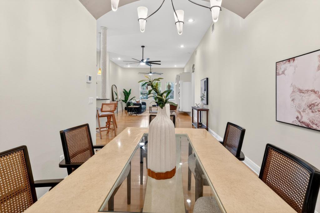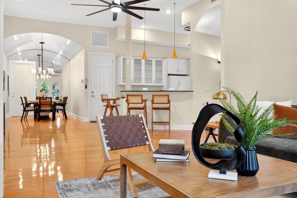 Easy Living in a Unique Lake Davis Home For those seeking a low-maintenance lifestyle with style, this one-of-a-kind residence offers the perfect blend of character and convenience. Located in the charming Lake Davis neighborhood near downtown Orlando, this Art Deco–inspired home was originally a commercial space and thoughtfully transformed in 2000 into 2,000 square feet of distinctive living space. Step inside to soaring 14-foot ceilings, graceful curved walls, and eye-catching architectural details—perfect for showcasing your art, books, or personal collections. The open layout features 3 bedrooms and 2 full baths, with the third bedroom ideal as a den or office, complete with a cozy gas fireplace. The design creates comfortable everyday living while also offering plenty of space for entertaining. Enjoy the ease of a low monthly fee that covers building insurance (only contents insurance required), lawn care, pest control, irrigation, and AC preventative maintenance, making ownership simple and stress-free. A 1-car attached garage provides convenience and additional storage. One of the most exciting possibilities this property offers is the potential to create a rooftop entertaining deck. With the structure allowing for a rooftop space, imagine designing a multi-level rooftop terrace with seating areas, outdoor dining, or a private lounge space—creating a truly unique entertaining experience rarely found in the area. If you value unique design, a central location, and hassle-free upkeep, this Lake Davis home is ready to welcome you.