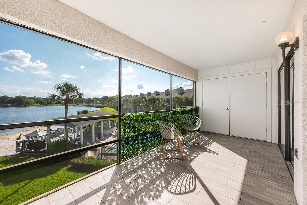 Gorgeous third floor condo with spectacular views! This RENOVATED 2-bedroom, 2 bath unit in the desirable Fairview Vista community offers direct frontage on LAKE FAIRVIEW and PANORAMIC WATER VIEWS from your private SCREENED BALCONY. Located on the top floor (WITH ELEVATOR ACCESS), this light filled layout features vaulted ceilings and floor to ceiling windows that bring the outside in. Major updates have already been completed, so all you need to do is move in and enjoy! The entire interior was FRESHLY PAINTED IN (2024), with new attic fiberglass insulation added for energy efficiency. The A/C WAS REPLACED IN (2020), the ELECTRICAL PANEL UPGRADED IN (2022), and the ROOF on the building was replaced in (2021). Inside you will appreciate the sleek and timeless finishes: white cabinetry topped with crown molding, a subway tile backsplash, must have STAINLESS STEEL APPLIANCES, elegant countertops, and a breakfast bar perfect for casual meals or entertaining. The kitchen and both bathrooms were stylishly remodeled in (2020), and durable WOOD LOOK TILE FLOORING was installed throughout that same year. The living room features a chic WOOD BURNING FIREPLACE and opens to the spacious screened balcony overlooking the pool, sand beach and lake – the ideal spot to relax and unwind or entertain with a sunset backdrop. The PRIMARY SUITE also enjoys direct WATER VIEWS, while the SPLIT BEDROOM floor plan provides privacy for guests or a home office. Additional perks include a new front screen door (2024), IN-UNIT LAUNDRY with extra storage, a covered front entry, and your own covered parking space just steps from the elevator. Fairview Vista is a friendly, well-kept, small waterfront community offering resort-style amenities: a lakeside pool and spa, tennis courts, a sandy beach, covered seating, and a boat dock with ramp and parking. With direct lake access and boat slips available, it is a rare opportunity for lakefront living in the heart of Orlando. Tucked away just off 441, you are also just minutes from College Park’s shops and dining, and have quick access to all that Central Florida has to offer. Whether you are looking for full-time, seasonal, or low-maintenance living with breathtaking views – this one checks all the boxes. Welcome to the lakefront lifestyle you’ve been waiting for - call today to schedule a tour!