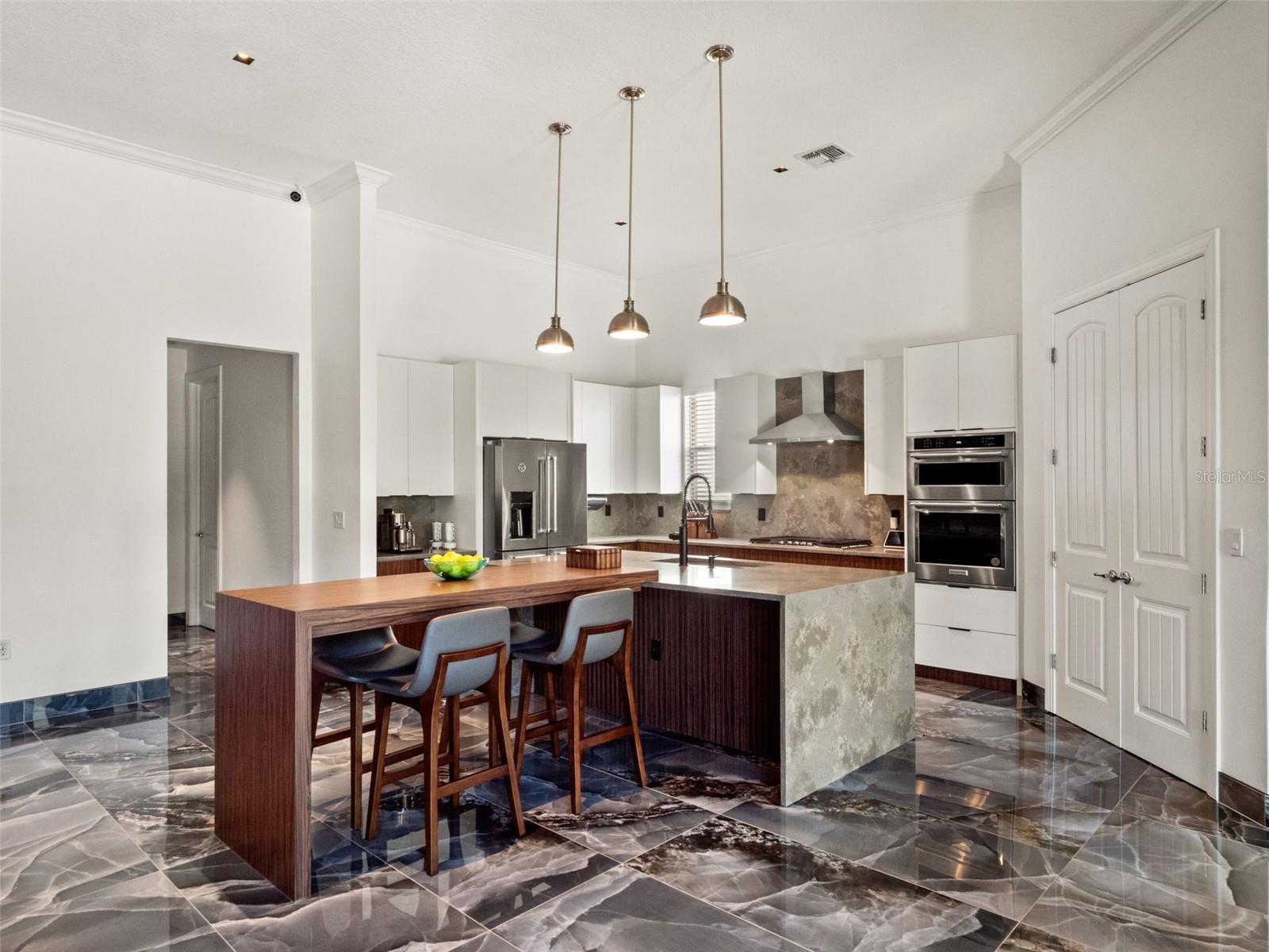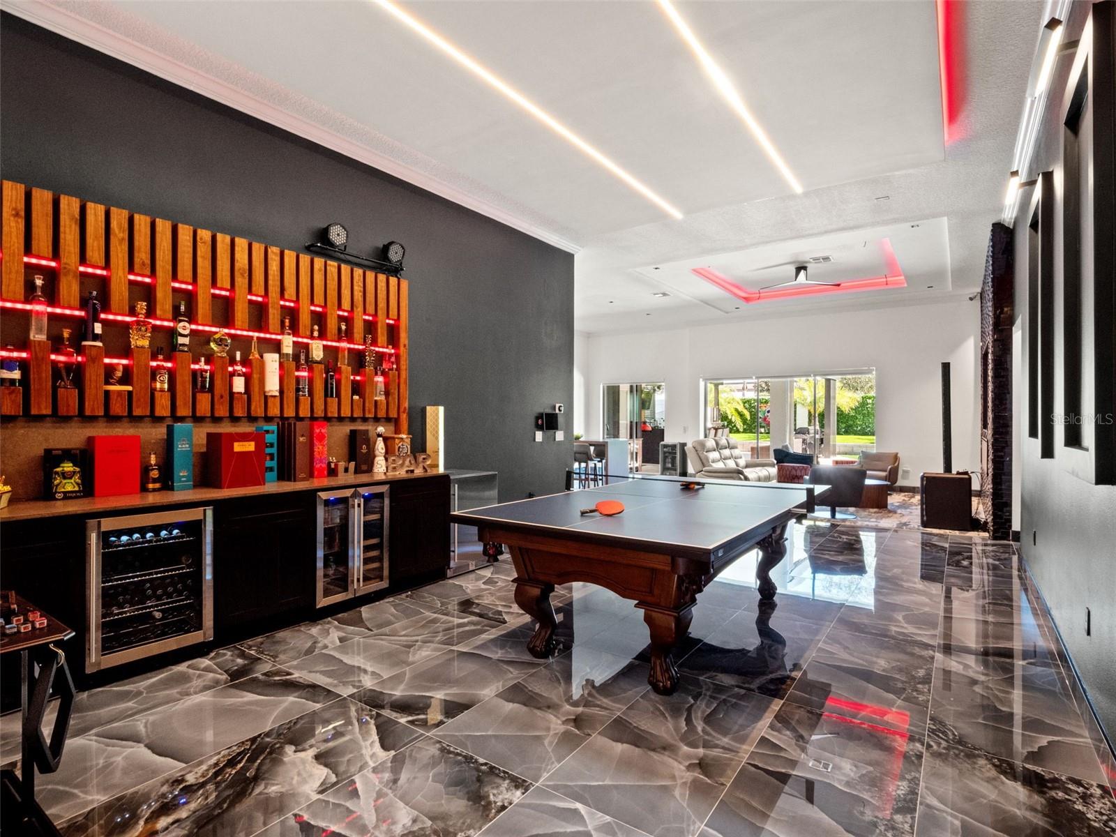 Welcome to a one-of-a-kind masterpiece in the coveted gated community of Phillips Grove—a fully customized, renovated residence unlike anything else in the neighborhood. Every inch of this home has been thoughtfully reimagined with luxury finishes, architectural enhancements, and curated details you simply must see in person. Step inside to discover imported stone countertops, a chef-inspired kitchen with a 5-burner gas cooktop, built-in oven and microwave, and a HUGE walk-in pantry with exceptional storage. The main living spaces showcase stunning Belize Azul flooring, elevated custom ceilings with LED lighting, and a show-stopping stone fireplace wall that anchors the family room with modern elegance. A custom-built bar—complete with wine/beverage cooler and floating shelving—creates the perfect setting for entertaining. The oversized primary suite offers private access to the backyard oasis, while the en-suite bath delivers true spa luxury with a custom soaking tub, walk-in shower, and a boutique-style closet with built-in cabinetry. A thoughtful 3-way split floor plan ensures privacy for all, and the 4th bedroom features its own en-suite bath with walk-in shower. Step outside to the pièce de résistance—a COMMERCIAL-GRADE outdoor kitchen and 6 seater bar designed for the ultimate host. Outfitted for multiple TVs, built-in grills, smokers, hibachi grill, beverage coolers, and more! This space transforms everyday living into resort-style enjoyment. An outdoor full bath adds convenience for guests, while the turfed yard, lush landscaping, and privacy create a serene retreat for dining, lounging, and entertaining. Additional highlights include: Oversized 3-car garage with an extra 4 feet of length for enhanced storage. Quiet cul-de-sac location. Community amenities:Half court basket ball, tennis courts, swimming pool, playground and golf-cart friendly streets. Minutes to Restaurant Row, Whole Foods and Trader Joes. 10 minutes to Disney World, 1 mile to Lakefront Dr. Phillips Park, and minutes to I-Drive, world-class dining, shopping, and downtown Orlando This home is truly a rare find—a custom luxury experience within one of Central Florida’s most sought-after communities. You must SEE it in person to appreciate the craftsmanship and detail. Call today for your private tour.