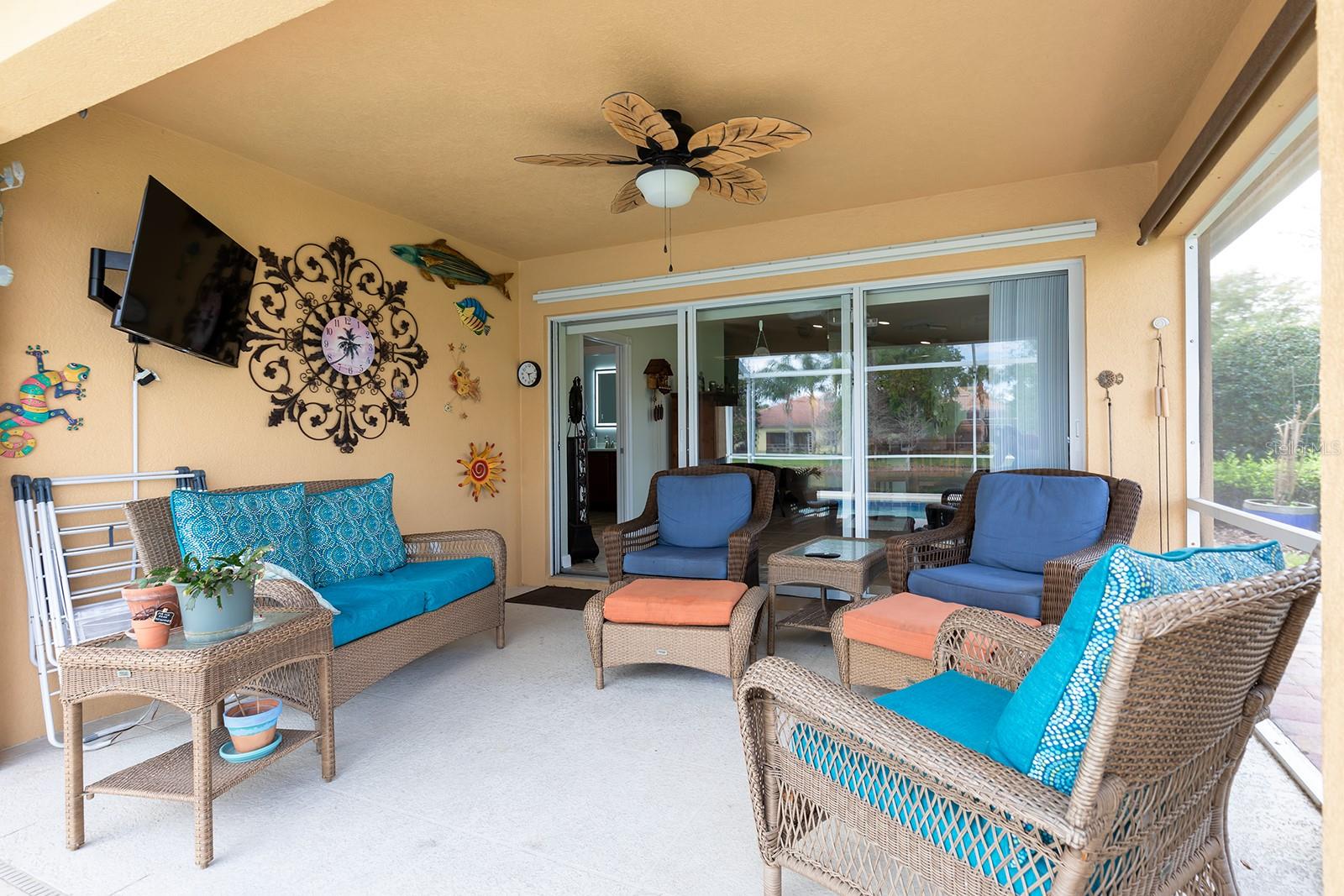 Charming 2 Bedroom, 2 Bathroom Pool Home in a spectacular Guard Gated Community. This well maintained home features a private screened pool, updated appliances, easy care interiors, and it even has an air conditioned garage! The lanai was rescreened 5 years ago, and the pool comes with equipment and a robot vacuum for effortless upkeep. Inside, all cupboards and drawers have convenient slideout shelving, and the home includes a security system for added peace of mind. The owners rave about the spectacular view and the warm, homey feel of the neighborhood. This property is in one of the most desirable areas of the community, with a welcoming mix of families and adults. The owners also love the peaceful view, the easy maintenance, and evenings relaxing on the lanai watching football with their friendly neighbors. The guard gated community offers exceptional amenities, including a clubhouse, tennis courts, recreation pool, lap pool, and regular social activities such as card games, mahjong, and community events and it even has its own gas station! Tennis lessons are available for all, and the nearby U.S. Tennis Association campus adds to the appeal. This property is conveniently located near major highways (SR 417 and SR 528), Orlando International Airport, hospitals, the VA Center, dentists, a fire station, and multiple shopping and dining options. A new hospital and shopping center are also underway nearby. This home offers comfort, convenience, and a vibrant community lifestyle in a prime location. Call us today for a private showing!