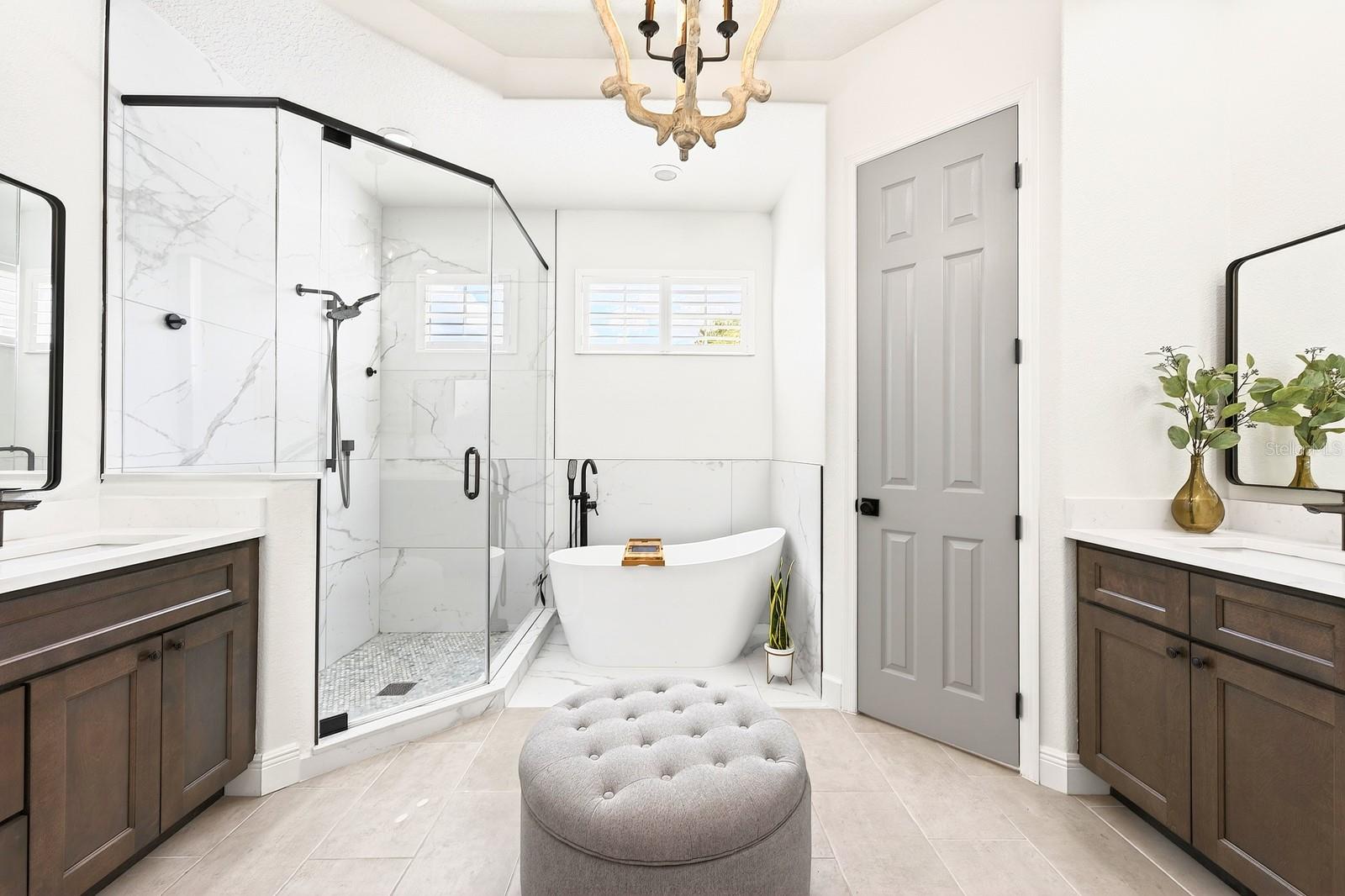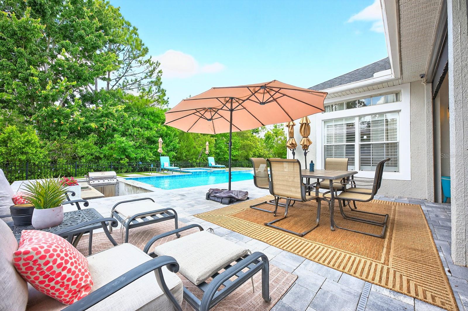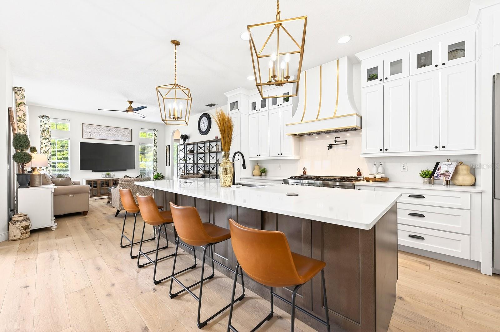 Under contract-accepting backup offers. A true showpiece in the gated Tudor Grove at Timber Springs community, this FULLY REMODELED 4-bedroom, 3.5-bath, two-story home blends thoughtful DESIGN, modern LUXURY and an incredible INDOOR/OUTDOOR LIFESTYLE in one of East Orlando’s most desirable locations! Major updates include a COMPLETE DESIGNER REMODEL IN 2023 ($100K+), a BRAND NEW RESORT STYLE POOL IN 2023 ($80K) and a NEW ROOF (2021), giving buyers peace of mind along with a beautifully updated living space. From the moment you arrive, the home’s CURB APPEAL and CUL-DE-SAC setting on a private .23 ACRE LOT set the tone. Inside, high ceilings, WHITE OAK ENGINEERED HARDWOOD FLOORING, plantation shutters, electric blinds and CUSTOM BUILT-IN FEATURES create a light, bright and polished interior that feels both elevated and welcoming. A FLEX/OFFICE space at the front of the home and a formal dining room offer versatility, while the OPEN CONCEPT kitchen and living room serve as the heart of the home. The chef’s kitchen is truly exceptional, featuring floor-to-ceiling cabinetry, QUARTZ COUNTERTOPS, a large ISLAND with bar seating, GAS RANGE with pot filler, a stylish range hood, upgraded lighting, wet bar with ice maker and beverage fridge, and a chic two-tone color palette. The space flows seamlessly into the living area and out to the lanai, creating the perfect setup for indoor/outdoor Florida living, and a convenient half bath for guests is located nearby. The SPLIT BEDROOM layout keeps all bedrooms on the main floor, offering privacy and convenience. The PRIMARY SUITE occupies its own wing of the home, delivering a peaceful retreat with DUAL WALK-IN CLOSETS and a beautifully designed spa-inspired bath featuring split vanities, a soaking tub and a large glass-enclosed shower. The additional bedrooms are located on the opposite side of the home, including one private en-suite bedroom with a custom sliding barn door, ideal for guests or multi-generational living. Upstairs, a huge BONUS/LOFT expands the living space even further and is designed for entertaining, complete with a built-in bar, beverage fridge and plenty of room for a game room, media space or lounge. Step outside and discover a true backyard oasis – the LANAI is enhanced with REMOTE CONTROLLED ELECTRIC SCREENS and opens to a stunning pool area featuring a CUSTOM POOL & SPA, spacious patio, sunken SUMMER KITCHEN and a SWIM-UP POOL BAR, all overlooking a WOODED BACKDROP for added privacy. It is the perfect place to host friends or unwind at the end of the day. Additional features include a FULLY FENCED BACKYARD, garage with electric vehicle charger, refrigerator and ceiling storage shelves, and a long list of high-end upgrades throughout the home. Residents of Tudor Grove at Timber Springs enjoy GATED ACCRESS, great community AMENITIES and TOP-RATED SCHOOLS, along with easy access to Avalon Park, Waterford Lakes Town Center, SR 417 and SR 408 for convenient travel throughout Central Florida. Shopping, dining, entertainment and even Florida’s east coast beaches are all within easy reach. This is luxury, function and lifestyle all in one beautifully designed home – call today to schedule a tour!