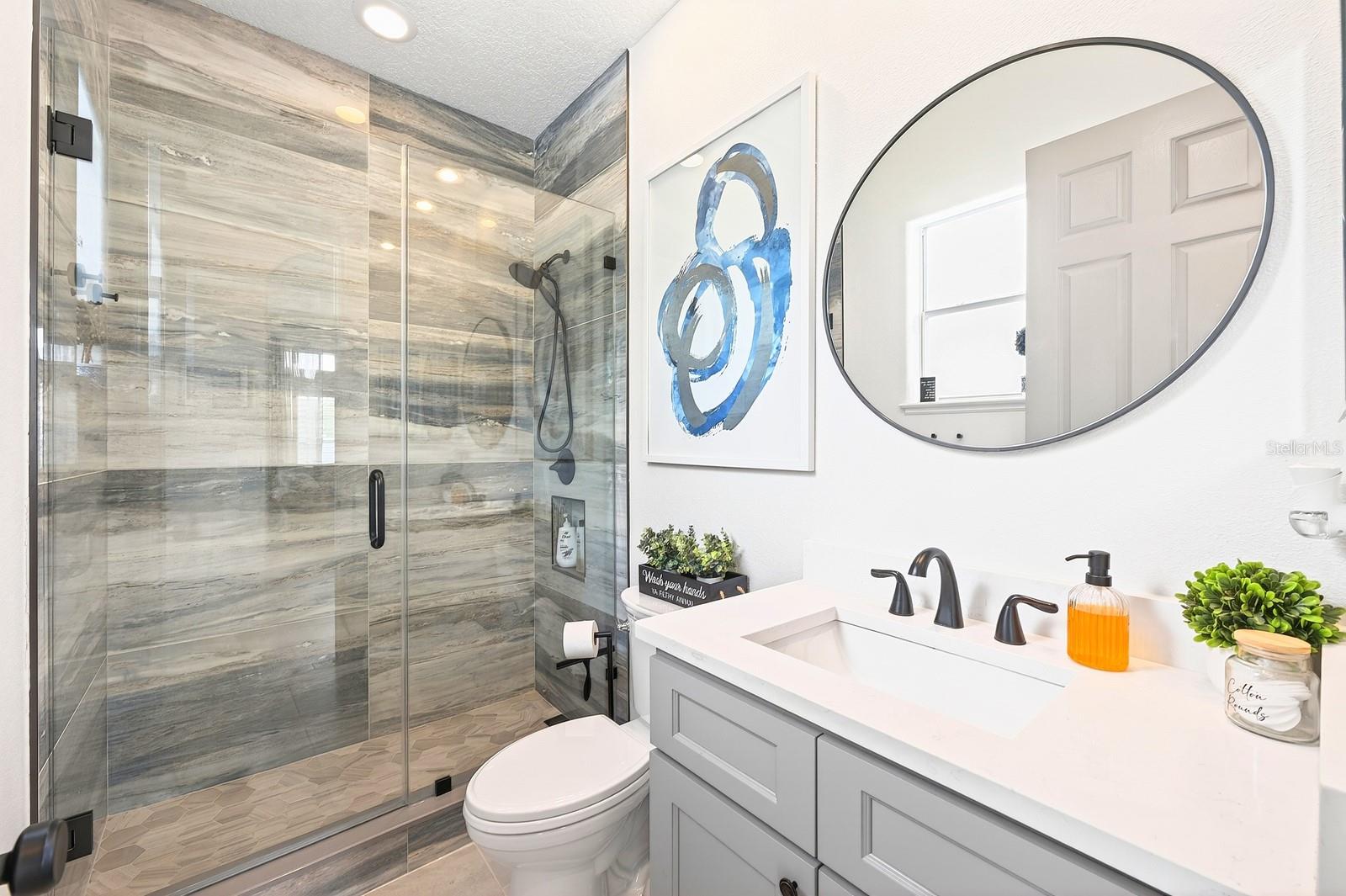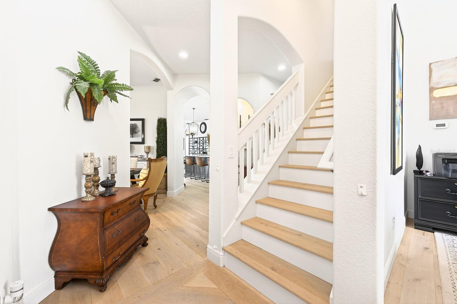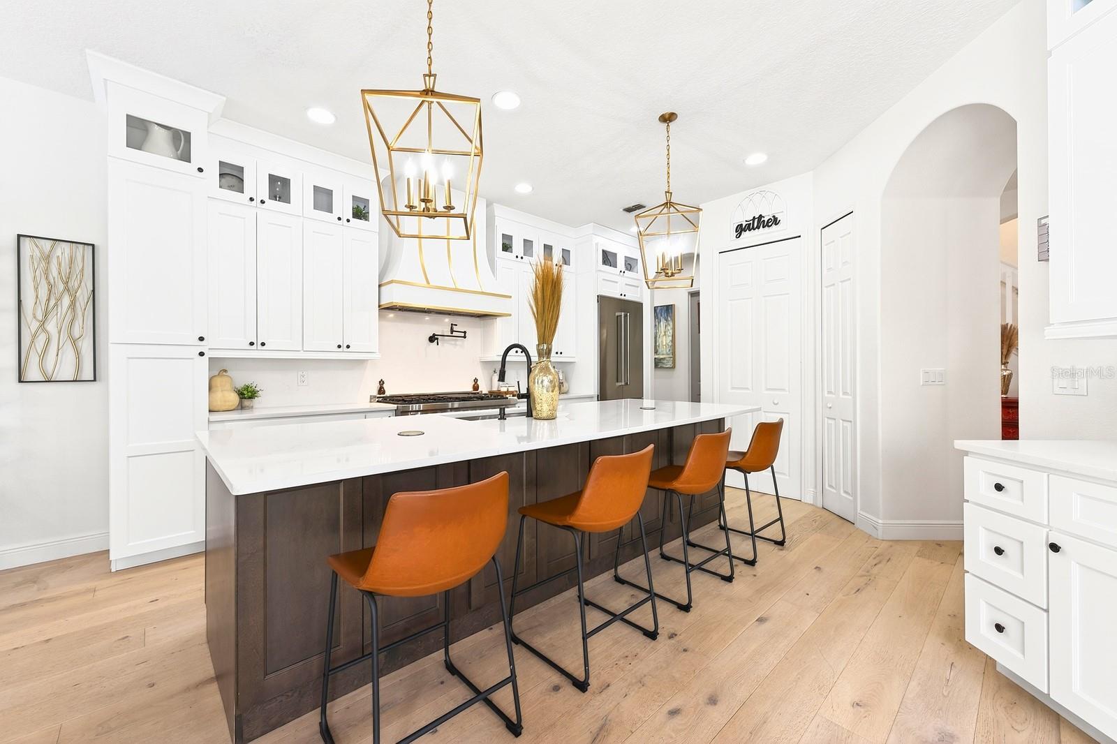 Under contract-accepting backup offers. A true showpiece in the gated Tudor Grove at Timber Springs community, this FULLY REMODELED 4-bedroom, 3.5-bath, two-story home blends thoughtful DESIGN, modern LUXURY and an incredible INDOOR/OUTDOOR LIFESTYLE in one of East Orlando’s most desirable locations! Major updates include a COMPLETE DESIGNER REMODEL IN 2023 ($100K+), a BRAND NEW RESORT STYLE POOL IN 2023 ($80K) and a NEW ROOF (2021), giving buyers peace of mind along with a beautifully updated living space. From the moment you arrive, the home’s CURB APPEAL and CUL-DE-SAC setting on a private .23 ACRE LOT set the tone. Inside, high ceilings, WHITE OAK ENGINEERED HARDWOOD FLOORING, plantation shutters, electric blinds and CUSTOM BUILT-IN FEATURES create a light, bright and polished interior that feels both elevated and welcoming. A FLEX/OFFICE space at the front of the home and a formal dining room offer versatility, while the OPEN CONCEPT kitchen and living room serve as the heart of the home. The chef’s kitchen is truly exceptional, featuring floor-to-ceiling cabinetry, QUARTZ COUNTERTOPS, a large ISLAND with bar seating, GAS RANGE with pot filler, a stylish range hood, upgraded lighting, wet bar with ice maker and beverage fridge, and a chic two-tone color palette. The space flows seamlessly into the living area and out to the lanai, creating the perfect setup for indoor/outdoor Florida living, and a convenient half bath for guests is located nearby. The SPLIT BEDROOM layout keeps all bedrooms on the main floor, offering privacy and convenience. The PRIMARY SUITE occupies its own wing of the home, delivering a peaceful retreat with DUAL WALK-IN CLOSETS and a beautifully designed spa-inspired bath featuring split vanities, a soaking tub and a large glass-enclosed shower. The additional bedrooms are located on the opposite side of the home, including one private en-suite bedroom with a custom sliding barn door, ideal for guests or multi-generational living. Upstairs, a huge BONUS/LOFT expands the living space even further and is designed for entertaining, complete with a built-in bar, beverage fridge and plenty of room for a game room, media space or lounge. Step outside and discover a true backyard oasis – the LANAI is enhanced with REMOTE CONTROLLED ELECTRIC SCREENS and opens to a stunning pool area featuring a CUSTOM POOL & SPA, spacious patio, sunken SUMMER KITCHEN and a SWIM-UP POOL BAR, all overlooking a WOODED BACKDROP for added privacy. It is the perfect place to host friends or unwind at the end of the day. Additional features include a FULLY FENCED BACKYARD, garage with electric vehicle charger, refrigerator and ceiling storage shelves, and a long list of high-end upgrades throughout the home. Residents of Tudor Grove at Timber Springs enjoy GATED ACCRESS, great community AMENITIES and TOP-RATED SCHOOLS, along with easy access to Avalon Park, Waterford Lakes Town Center, SR 417 and SR 408 for convenient travel throughout Central Florida. Shopping, dining, entertainment and even Florida’s east coast beaches are all within easy reach. This is luxury, function and lifestyle all in one beautifully designed home – call today to schedule a tour!