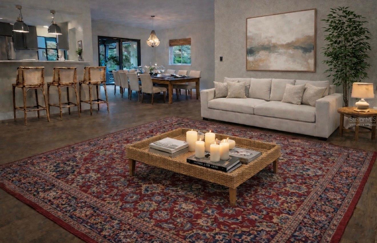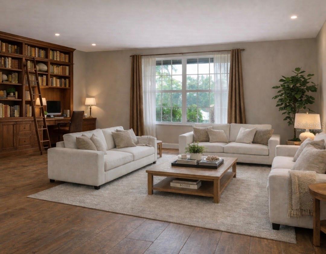 Nestled on a generous 0.34-acre cul-de-sac lot, this residence offers a rare combination of privacy, space, and an elevated indoor-outdoor lifestyle. The home opens and naturally divides into two expansive living areas, creating a sense of separation and functionality. To one side, the inviting family room, centered around a wood-burning fireplace, provides a warm and intimate gathering space. To the other, a separate living and dining area offers flexibility, with ample room for a desk or workspace, ideal for today’s lifestyle. Designed in an L-shaped layout, the home embraces its outdoor setting, with main living areas oriented toward the pool and lanai. Step outside to a serene retreat featuring a covered lanai with a waterfall spa and saltwater system, creating a peaceful, resort-like ambiance for both relaxing and entertaining. Elegant Italian porcelain tile flooring runs throughout the home, with the exception of the laundry area, adding a cohesive and refined aesthetic. The kitchen features quartz countertops and pass-through windows to the outdoor area, enhancing the indoor-outdoor connection. Two bedrooms enjoy tranquil views of a lush ligustrum hedge exceeding 10 feet in height, offering exceptional privacy and a calming natural backdrop, while two additional bedrooms overlook the pool, further connecting the home to its outdoor spaces. Ideally located, this home offers convenient access to Orlando’s most desirable destinations: • 6 minutes to Bay Hill Club & Lodge • 10 minutes to Sand Lake’s renowned Restaurant Row • 15 minutes to Universal CityWalk • 22 minutes to The Mall at Millenia • 24 minutes to Walt Disney World’s Magic Kingdom Combining space, privacy, and location, this property offers a refined yet relaxed lifestyle in one of Orlando’s most convenient settings.