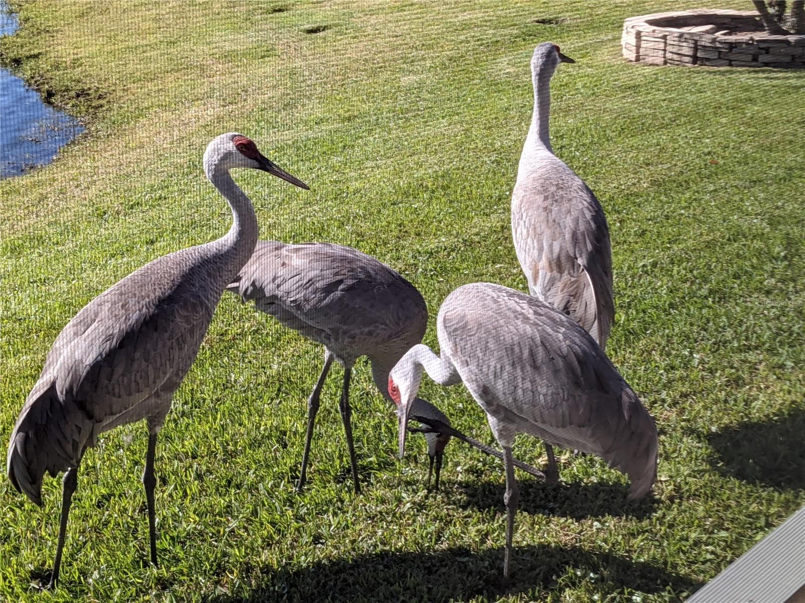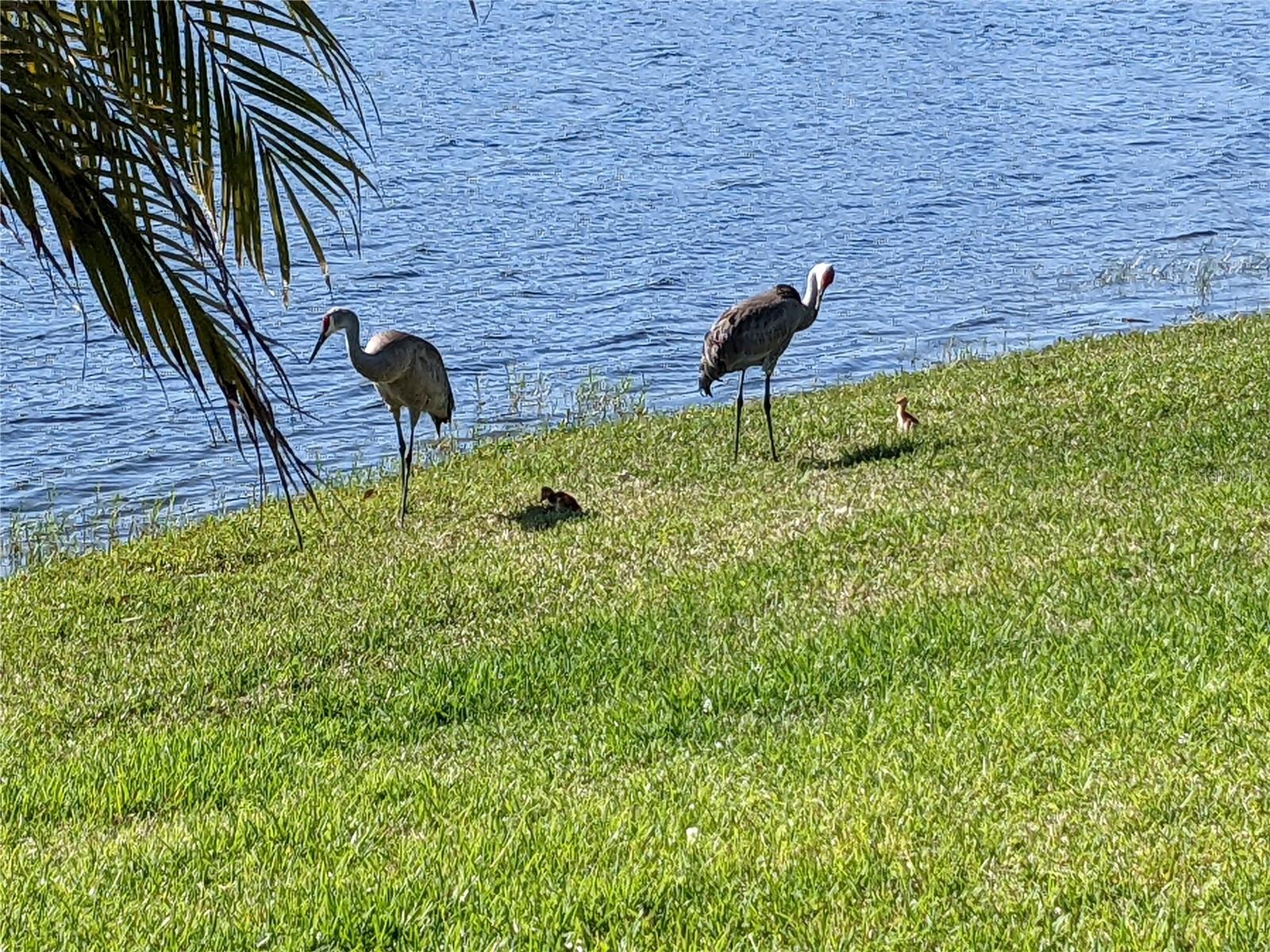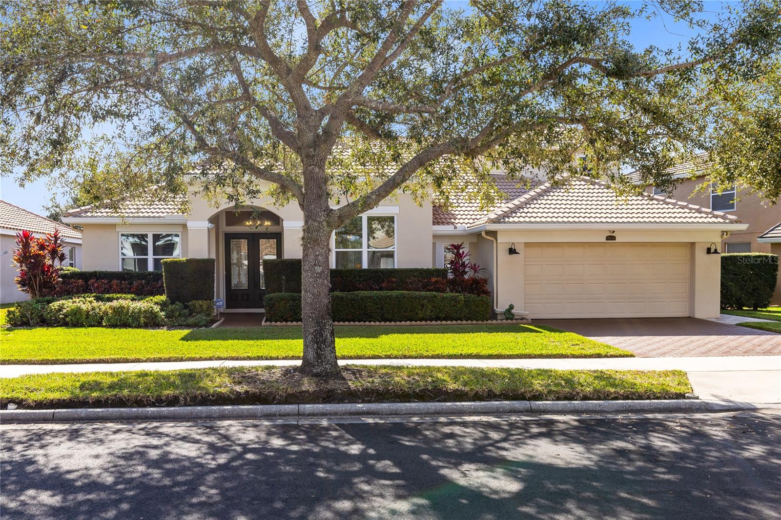 Combining nature with convenience just 8 minutes to Orlando International Airport, 2 minutes to Highway 417, 12 minutes to Lake Nona Town Center, and walking distance to retail, this lakefront residence offers a rare blend of privacy and refined living in a quiet, gated enclave. Set along the tranquil shores of the 33 acre Lake La Vina, the home enjoys direct water frontage and unobstructed lake views in a natural preserve setting with frequent visits from Sandhill cranes and ducklings. The outdoor living space with southern exposure highlights the property. A triple panel of sliding glass doors opens to approximately 1800 square feet of screened pool area with brick paver deck, ideal for dining and entertaining against an open lake backdrop. The custom saltwater lap pool features clean architectural lines with an infinity edge toward the water, an integrated raised spa, and a separate beach entry. Plumbing for hot and cold water is in place for a future outdoor kitchen. With wide water frontage and no rear neighbors, the backyard offers serenity and space for canoeing, paddle boarding, or fishing directly from the property, and the canoe conveys. Inside, the layout is expansive and intuitive, supporting both everyday living and elegant gatherings. Formal living and dining rooms near the entry feature crown molding, architectural details, wall to wall bookcase, built in architectural niches, and abundant natural light. A dedicated office with matching glass doors and built in storage provides a quiet workspace while remaining connected to the main living areas. The spacious family room with tray ceiling opens fully to the screened lanai, creating seamless indoor outdoor flow. The kitchen is appointed with 42 inch wood cabinetry, stone countertops, stainless steel appliances, large center island, built in dry bar with wine storage, and additional architectural niches that enhance the design. A bright breakfast nook overlooks the lake. The main level primary suite is designed as a private retreat with tray ceilings, wood flooring, large windows, and direct lanai access. The en suite bath includes dual vanities, soaking tub beneath a window, oversized walk in shower with glass enclosure, private water closet, and separate walk in closets with custom shelving. Two additional first floor bedrooms share a Jack and Jill bath, and a pool half bath opens to the lanai. A laundry room with pedestal washer and dryer and access to the garage with newly epoxied floor completes the main level. Upstairs features a large bonus room ideal for media or game space, an additional bedroom with lake view, full bath, and separate utility storage room. Additional highlights include new hurricane impact windows, resealed driveway and walkway, zoned variable speed heat pump HVAC systems, electric heat pump water heater, central vacuum, smart irrigation controls, and tile hip roof. Located within a small gated community with park and playground, this lakefront home offers comfort, privacy, and timeless design surrounded by nature.