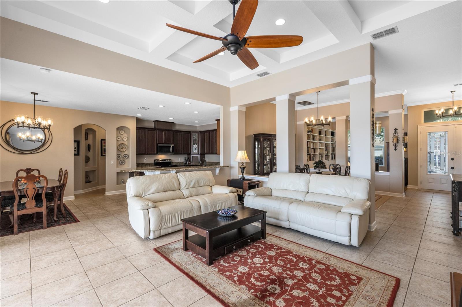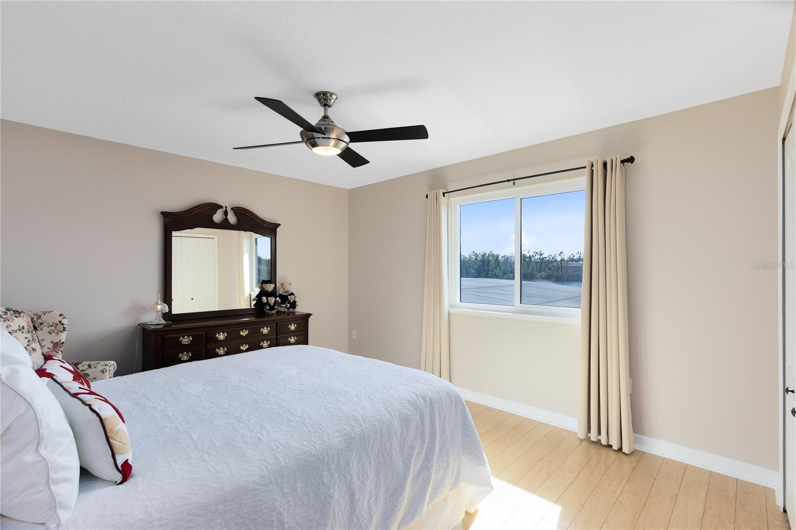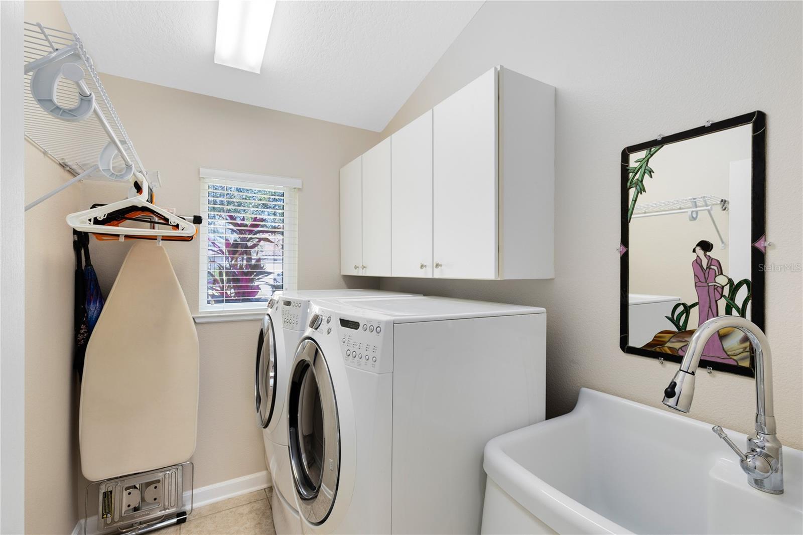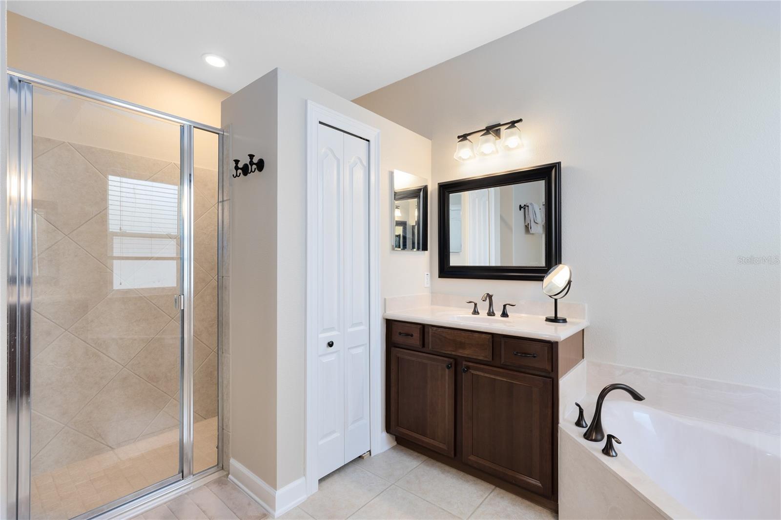 Combining nature with convenience just 8 minutes to Orlando International Airport, 2 minutes to Highway 417, 12 minutes to Lake Nona Town Center, and walking distance to retail, this lakefront residence offers a rare blend of privacy and refined living in a quiet, gated enclave. Set along the tranquil shores of the 33 acre Lake La Vina, the home enjoys direct water frontage and unobstructed lake views in a natural preserve setting with frequent visits from Sandhill cranes and ducklings. The outdoor living space with southern exposure highlights the property. A triple panel of sliding glass doors opens to approximately 1800 square feet of screened pool area with brick paver deck, ideal for dining and entertaining against an open lake backdrop. The custom saltwater lap pool features clean architectural lines with an infinity edge toward the water, an integrated raised spa, and a separate beach entry. Plumbing for hot and cold water is in place for a future outdoor kitchen. With wide water frontage and no rear neighbors, the backyard offers serenity and space for canoeing, paddle boarding, or fishing directly from the property, and the canoe conveys. Inside, the layout is expansive and intuitive, supporting both everyday living and elegant gatherings. Formal living and dining rooms near the entry feature crown molding, architectural details, wall to wall bookcase, built in architectural niches, and abundant natural light. A dedicated office with matching glass doors and built in storage provides a quiet workspace while remaining connected to the main living areas. The spacious family room with tray ceiling opens fully to the screened lanai, creating seamless indoor outdoor flow. The kitchen is appointed with 42 inch wood cabinetry, stone countertops, stainless steel appliances, large center island, built in dry bar with wine storage, and additional architectural niches that enhance the design. A bright breakfast nook overlooks the lake. The main level primary suite is designed as a private retreat with tray ceilings, wood flooring, large windows, and direct lanai access. The en suite bath includes dual vanities, soaking tub beneath a window, oversized walk in shower with glass enclosure, private water closet, and separate walk in closets with custom shelving. Two additional first floor bedrooms share a Jack and Jill bath, and a pool half bath opens to the lanai. A laundry room with pedestal washer and dryer and access to the garage with newly epoxied floor completes the main level. Upstairs features a large bonus room ideal for media or game space, an additional bedroom with lake view, full bath, and separate utility storage room. Additional highlights include new hurricane impact windows, resealed driveway and walkway, zoned variable speed heat pump HVAC systems, electric heat pump water heater, central vacuum, smart irrigation controls, and tile hip roof. Located within a small gated community with park and playground, this lakefront home offers comfort, privacy, and timeless design surrounded by nature.