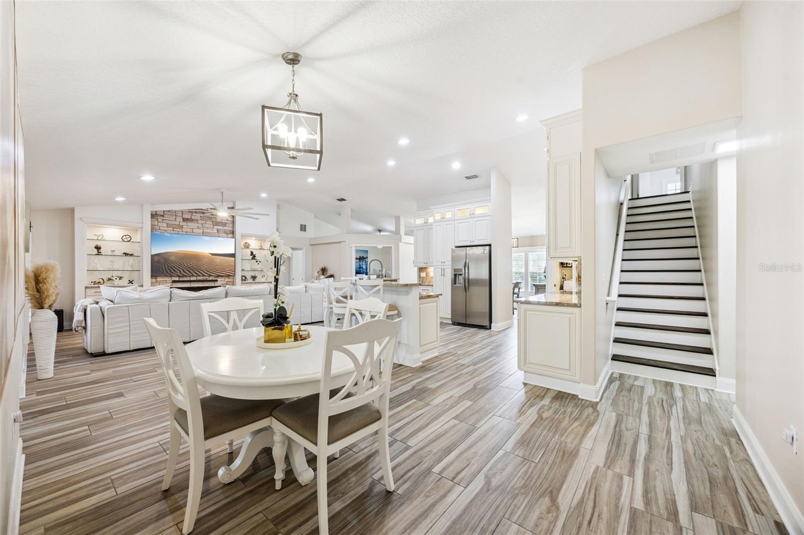 Beautifully updated home in Wedgefield offering the perfect balance of rural space and suburban convenience on a 1.03-acre homesite with NO HOA and NO wetlands. With a renovated interior, flexible layout, and a rare combination of indoor and outdoor living features, this property offers room to spread out without sacrificing access to everything Central Florida has to offer. This stunning 5-bedroom, 3-bath residence offers over 3,100 square feet of light-filled living space with a highly desirable split floor plan and two private primary suites—perfect for multi-generational living, guests, or ultimate flexibility. From the moment you enter, you’re greeted by soaring vaulted ceilings, wood-look tile flooring throughout, and a bright, open layout designed for both entertaining and everyday comfort. The foyer is flanked by the formal dining room on the left and the home office with glass French doors on the right. Directly ahead, the family room has been updated with a stone accent wall, electric fireplace, and built-in cabinets with glass display shelves. A renovated chef’s kitchen is the heart of the home, showcasing solid wood cabinetry with double-stacked uppers, soft-close dovetail drawers, stone countertops with matching backsplash, stainless steel appliances, and an oversized breakfast bar that flows seamlessly into the expansive family room. The main owner’s suite is tucked away on the first floor in its own wing and features peaceful backyard views, a spacious walk-in closet, and a large bath with dual sinks and a granite vanity, a garden tub, and separate shower. Upstairs, a second full suite with private bath and oversized closet doubles as an ideal in-law suite, theater, home gym, or game room. The three additional bedrooms are all on the first floor, on the opposite side of the house from the primary suite. This three-way split layout offers privacy and room for everyone to enjoy their own space to relax. Step outside and this home really starts to show off. The recently added, fully insulated oversized screened lanai with beautiful marble flooring and stacked stone accents creates an incredible indoor-outdoor living experience. Beyond that, the open courtyard and massive backyard offer endless potential for a pool, garden, or just room to breathe. And then there’s the additional building: a detached, climate-enhanced garage / workshop / warehouse built for serious functionality. Measuring approximately 34’ x 23’, it features reinforced concrete for heavy equipment, space for up to 3 vehicles, and 400 square feet of air-conditioned office space—perfect for a home business, hobbyist, or anyone needing storage for boats and other toys. Additional peace-of-mind upgrades include a newer roof (2018) and HVAC system (2019), updated septic (2016), and reconditioned well equipment. The extended circular paver driveway adds both curb appeal and convenience with ample parking. Located in the sought-after Wedgefield community, residents enjoy access to an 18-hole golf course, country club, parks, playgrounds, and the expansive Hal Scott Preserve with miles of trails. All this just minutes to SR 528, Orlando International Airport, Lake Nona, Medical City, UCF, and about 30 minutes to the beach. Rocket launch views included! If you’ve been searching for space, flexibility, and a home that can truly adapt to your lifestyle, this is the one.