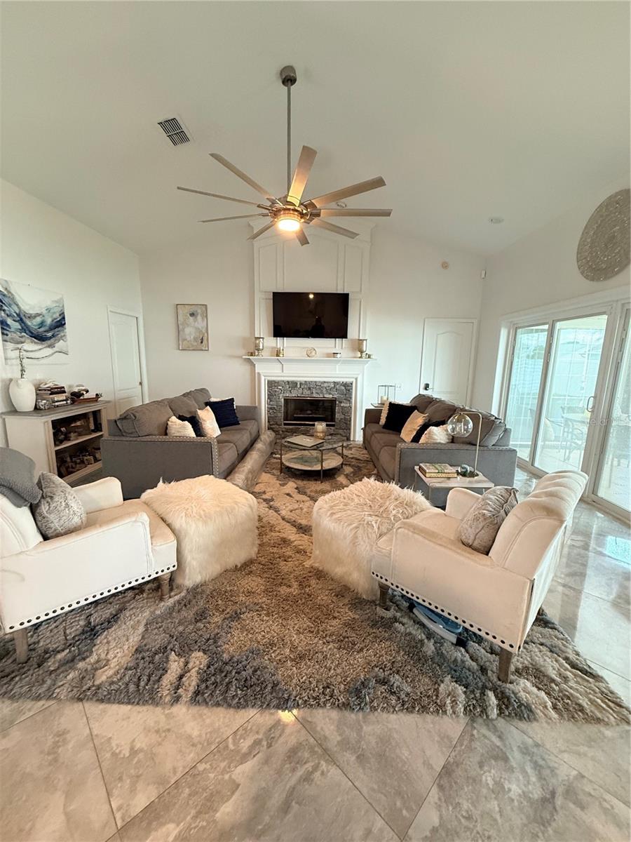 Welcome Home to the highly sought after, resort-style gated community of Ventura Country Club, where everyday living feels like a vacation! Enjoy 24/7 security, a championship, semi private, 18 hole golf course, sparkling Olympic size pool, fitness center, a clubhouse with restuarant and an unbeatable lifestyle packed with amenities. Step inside and fall in love with an open foyer leading into a bright, airy floor plan with soaring ceilings and abundant natural light. This beautifully maintained 3-bedroom, 2 bath home features: A spacious living area with fireplace, perfect for entertaining. A formal dining room plus casual eat-in kitchen space. A one-of-a-kind kitchen with island, abundant storage and plenty of room to gather. Multiple sliding doors leading to a screened in patio/lanai – ideal for relaxing. The primary suite features a fully remodeled bathroom with custom walk-in shower; elegant dual waterfall vessel sinks and expansive vanity and oversized walk-in closet with additional attic space above. Some upgrades and extras you’ll Love – Ceramic tile, A/C system (2022), In 2023, new security system, new roof and gutters, new lighting interior and exterior, new hot water heater, new driveway and walkway, new fence, paint interior and exterior, new appliances and side patio in 2026. This is your chance to own a stunning, move-in-ready home in a prime location. Just minutes from Orlando International Airport, shopping, dining, Lake Nona Medical City and all World Famous attractions. Owner/Broker