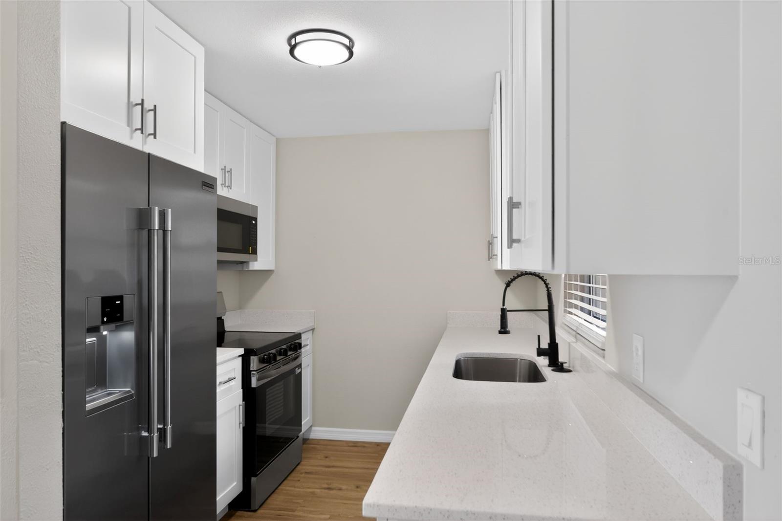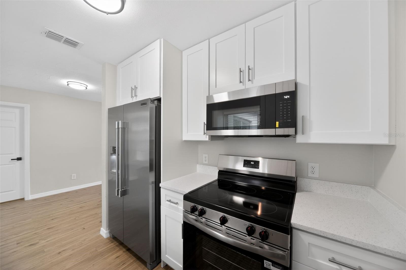 One or more photo(s) has been virtually staged. Fully renovated 3-bedroom home in the rapidly growing Hourglass District. This move-in-ready property features a brand-new roof (2026), new HVAC system, fresh interior and exterior paint, and new luxury vinyl plank flooring throughout with updated baseboards. The redesigned kitchen offers modern shaker cabinets, quartz countertops, and stainless steel appliances, creating a clean, functional space for everyday living and entertaining. Both bathrooms have been updated with contemporary finishes, along with new hardware and fixtures throughout the home. The living room centers around a wood-burning fireplace, adding character and a practical focal point. Outside, a fenced side yard provides privacy and usable outdoor space, along with a detached shed for additional storage. Located in the sought-after Hourglass District, this home benefits from close proximity to local dining, coffee shops, parks, and downtown Orlando, while still offering a neighborhood feel. Easy access to major roadways makes commuting straightforward.