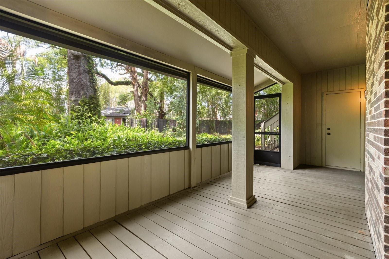 Welcome to one of Orlando's best-kept secrets - Cherokee Place at Lake Cherokee, a meticulously maintained 20-unit community that feels like a nature preserve in the heart of downtown. This stunning ground-floor corner unit offers 1,751 square feet of thoughtfully designed living space with spectacular nature and pool views and an expansive screened porch perfect for soaking it all in. The generously sized primary bedroom is a true retreat, complete with custom built-in closets and its own private wood-burning fireplace. A second wood-burning fireplace located in the living room, is a focal point and near the wet bar and dining area. The home has been comprehensively updated for modern living: engineered laminate wood floors throughout, fully renovated gourmet kitchen with opened walls (2022), neutral cabinetry, granite countertops and natural light. Two fully renovated bathrooms (2016) with quartz counters, tile and glass tub and shower surrounds. Completed 2026 - fresh interior paint, new light faceplates, popcorn ceilings removed and a new hot water heater. A bonus or home office front room overlooking the courtyard, a separate kitchen eat-in area with beautiful pool and lush green views. The existing garage has been converted into a den and laundry room, with a one-car garage added, plus a washer and dryer that may convey. Buildings were reported to be re-plumbed prior to owner. The community itself is impeccably kept -newer roof, freshly painted exteriors, pool bath, garbage enclosure and the building under active termite bond. The HOA covers landscaping, the resort-style pool, and all building exteriors including decks and outdoor stairs, making this truly maintenance-free living. Low utility bills and ample guest parking add everyday ease. Nestled among the brick-paved streets of Lake Cherokee Park and adjacent to Lake Davis and Delaney Park, this home delivers both serene, parklike privacy and unbeatable urban access. Walk to Lake Eola, Thornton Park, the Dr. Phillips Center for the Performing Arts, top restaurants, and Amway Center. Three major Orlando Health hospitals are moments away, and elite schools - Blankner K-8, Boone High and Lake Highland Preparatory are all within a couple of miles. Easy access to I-4 and the 408 completes the picture. This is your chance!