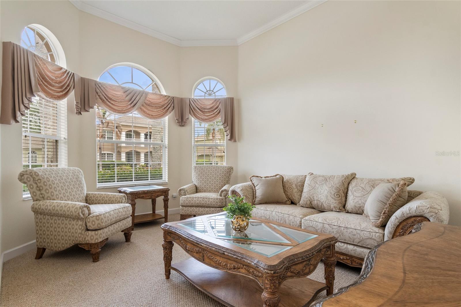 Welcome to this highly desirable immaculate home in sought-after Nona Crest, a gated community in Lake Nona. Spanning 2676 square feet, this spacious residence offers 4 bedrooms, 3 bathrooms, and a 3-car garage equipped with a utility sink, complemented by a paver driveway and inviting curb appeal. Inside, you’ll find a thoughtfully designed three-way split floor plan featuring a dedicated living room and dining room, along with a large family room that opens seamlessly to the kitchen—perfect for both everyday living and entertaining. The kitchen is well-appointed with wood cabinetry (including glass-front accents), tile backsplash, under-cabinet lighting, an island, breakfast bar, built-in desk, abundant storage, closet pantry and a sunny breakfast nook. The primary suite is a true retreat, offering a private sitting area with direct access to the expansive covered and screened lanai. The en-suite bathroom features dual vanities, a garden soak tub, a large walk-in shower, a private water closet, and a spacious walk-in closet. Additional 3 bedrooms offer ample size with large closets. Enjoy Florida living year-round on the oversized screened lanai with tranquil views of private lush backyard, with convenient access from the third bathroom—ideal for guests and future pool use. Additional highlights include an inside utility room equipped with a front-loading washer and dryer, Roof (2019), Rheem Water Heater (2020), Newer HVAC system. Community amenities include a pool, playground, and basketball court, further enhancing the lifestyle here. The location is unbeatable, just minutes from Lake Nona’s Medical City, USTA National Campus, Orlando International Airport, major highways, golf courses, Disney theme parks, Downtown Orlando, UCF College of Medicine, Nemours Hospital, KPMG, and an array of dining and shopping options. This home blends comfort, functionality, and style in one of Lake Nona’s most desirable neighborhoods—don’t miss this opportunity!