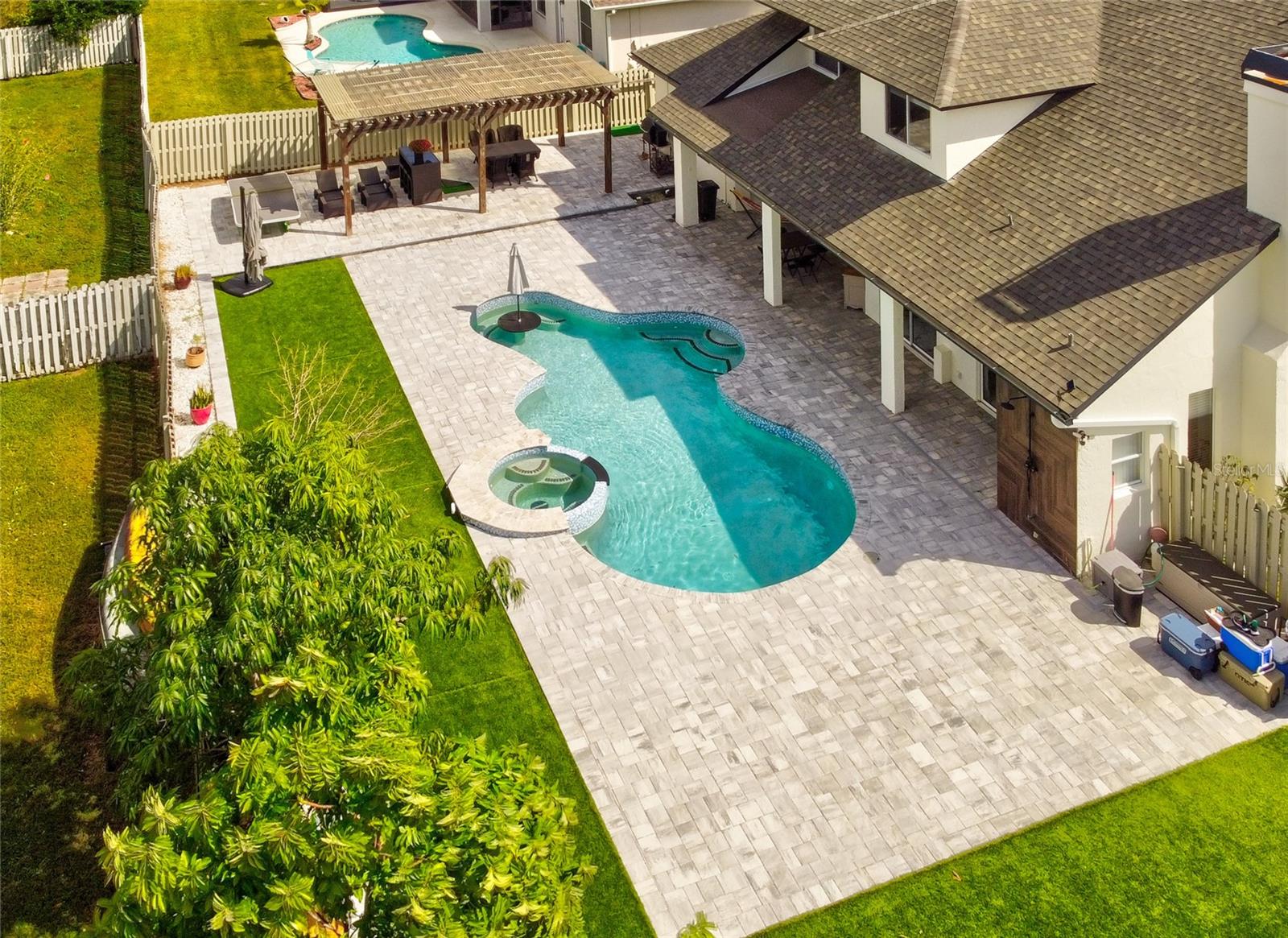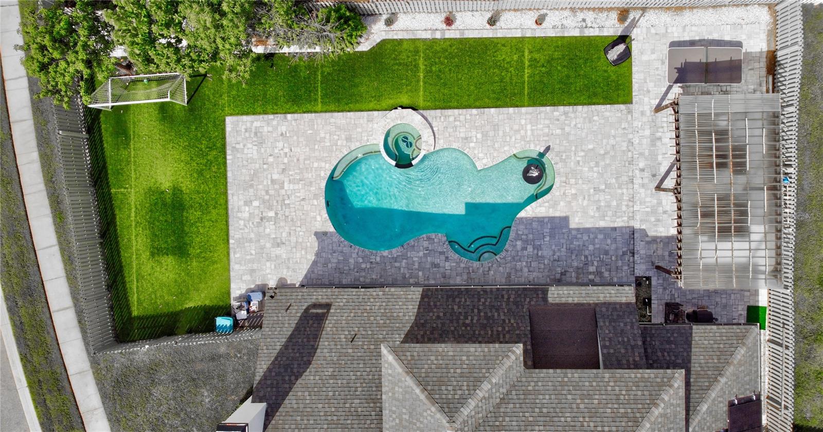 Timeless elegance meets contemporary luxury in the heart of Hunters Creek. From the moment you arrive, a stately circular driveway, secondary side entry, and abundant guest parking set the tone for the grandeur within. A new roof (2022) and fully paid-off solar panel system (2023) deliver lasting value and energy savings from day one. Inside, large-format marble porcelain tile flows throughout an open-concept layout anchored by a custom entertainment wall with wood-textured paneling, floating console, sleek electric fireplace, and designer lighting. The show stopping kitchen features gold-hardware cabinetry, a bold navy waterfall island, quartz countertops, high-end stainless steel and glass appliances, and a sculptural LED chandelier — where cooking and entertaining are equally inspired. Outside, your private backyard oasis awaits: a sparkling pool and spa surrounded by lush artificial turf, a stone-paved patio, rustic-modern pergola, outdoor shower, and a convenient half bath — resort-style living at home. The primary suite is tucked on the main floor for privacy and ease, with four additional bedrooms upstairs. Every detail deliberately chosen. Every finish beautifully realized. Hunters Creek was built for those who love to move. Residents enjoy an impressive array of recreational amenities including tennis and pickleball courts, volleyball and sand volleyball courts, basketball courts, soccer fields, and baseball diamonds — all within the community. Whether you're a seasoned athlete or just looking for a friendly game with neighbors, there's always something going on.Few communities offer the kind of convenience Hunters Creek delivers. Walt Disney World and the broader theme park corridor are just minutes away, making weekend magic effortless. Orlando International Airport is a quick, easy drive — a huge plus for frequent travelers and professionals alike. Downtown Orlando, with its thriving dining, arts, and nightlife scene, is equally accessible, and the surrounding area is rich with employment opportunities across tourism, tech, healthcare, and beyond. Tree-lined streets, well-kept parks, and a genuine sense of community set Hunters Creek apart. It's a place where neighbors become friends, and every amenity you need — from shopping and dining to recreation and green space — is right at your fingertips.Hunters Creek is served by some of Orange County's most highly regarded schools.