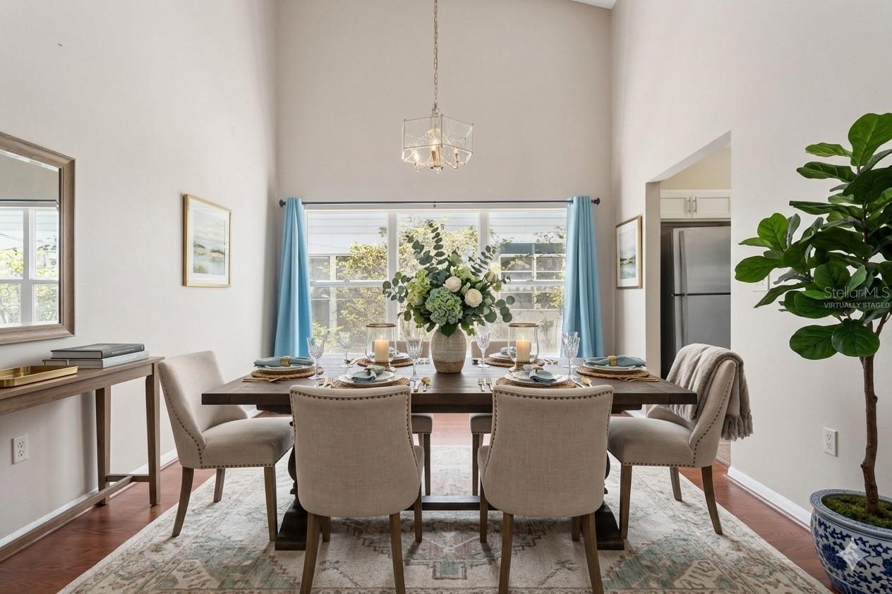 Welcome home to this charming and well-maintained 3-bedroom, 2-bath residence nestled in a highly desirable neighborhood on a quiet street. From the moment you arrive, you’ll appreciate the inviting curb appeal and the cozy screened-in front entry. Step inside to a bright and airy living space featuring soaring vaulted ceilings and beautiful skylights that fill the large living room with natural light. A dedicated dining room offers plenty of room for seating with another large, bright window. The thoughtfully designed split floor plan offers both privacy and functionality, with the spacious primary suite tucked away from the secondary bedrooms. The primary ensuite includes a relaxing soaking tub, separate walk-in shower, double vanities and a generous walk-in closet. Two more spacious bedrooms are separated by a convenient guest bathroom with its own tub and shower. The home boasts a comfortable eat-in kitchen ideal for casual meals including plenty of white Shaker style cabinets for storage and a separate pantry. Also there's an added flex space that can serve as a home office, playroom, or sitting area—leading out to a fully fenced backyard, perfect for entertaining, pets, or simply unwinding outdoors. Additional highlights include an inside laundry room for convenience, an over-sized two-car garage, and a new roof installed in 2023 for peace of mind. This home offers the perfect blend of comfort, functionality, and location—don’t miss the opportunity to make it yours. Schedule your private showing today!