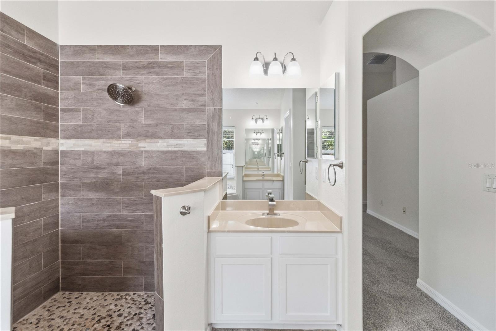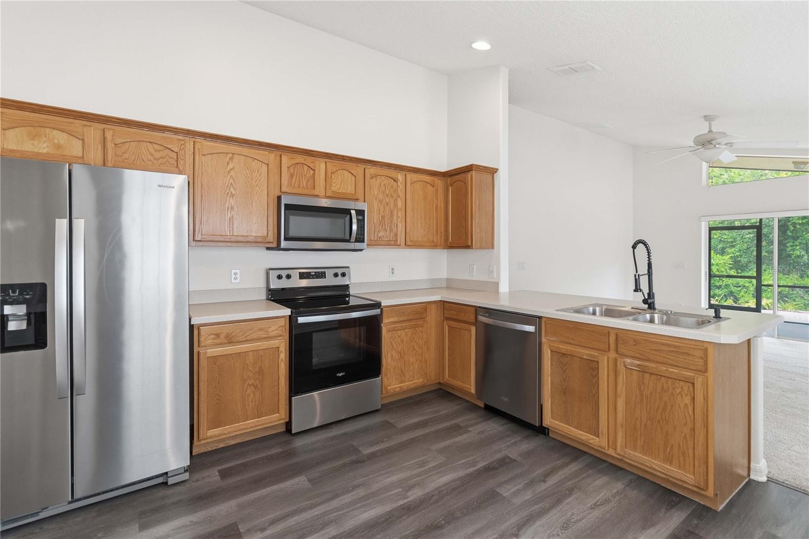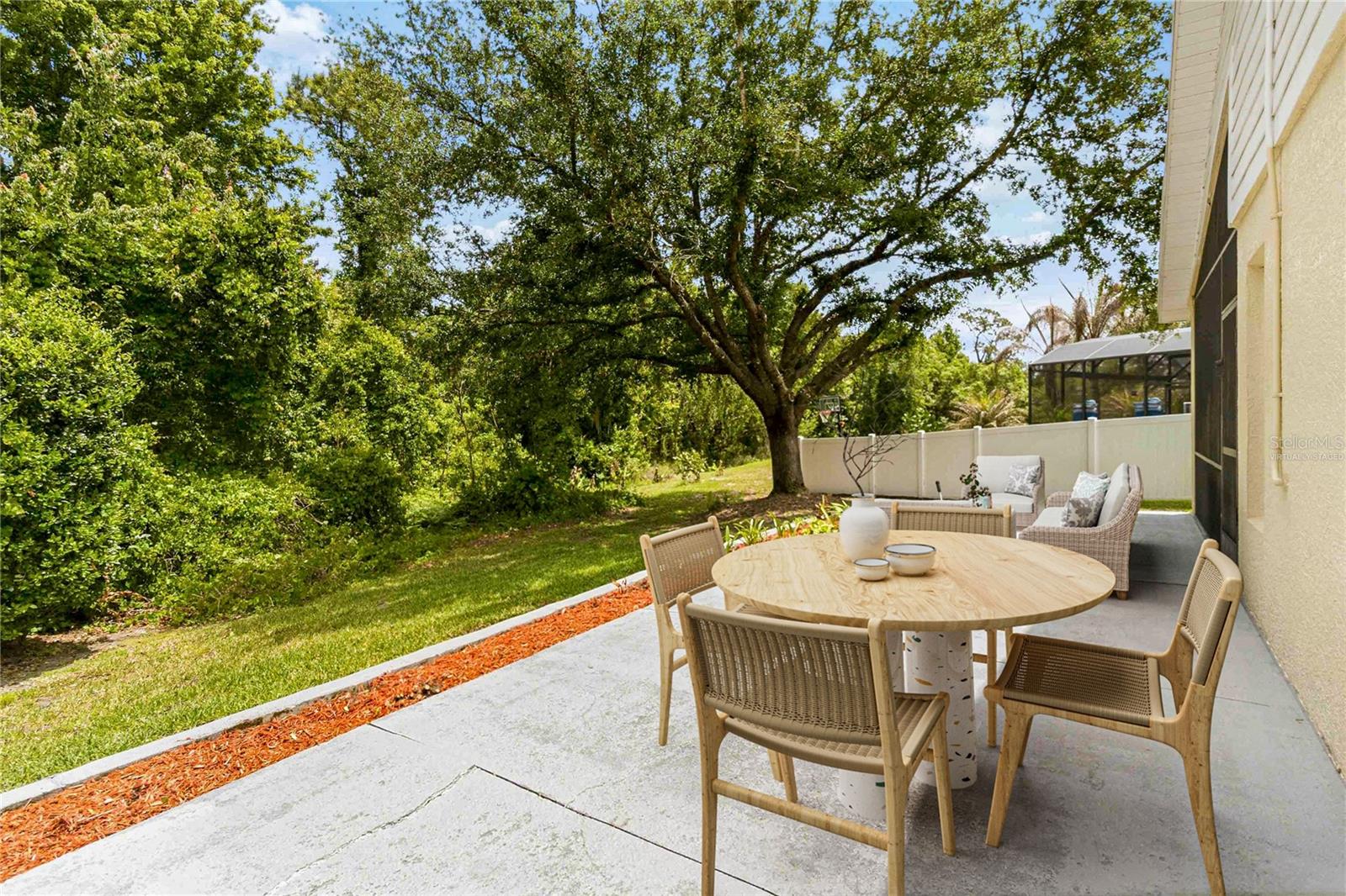 Welcome to this beautifully updated 4-bedroom, 2-bathroom home nestled in the quiet Moss Park subdivision, offering low HOA fees and a serene private conservation view with a screened lanai from which to enjoy it. This single-story residence features high ceilings throughout, creating an open and airy feel, along with brand-new carpet and vinyl plank flooring and fresh interior paint for a move-in-ready experience. The kitchen is equipped with all stainless steel appliances, and an additional refrigerator in the garage provides extra convenience. Energy efficiency is a standout with owned and fully paid-off solar panels and a solar hot water heater, helping to significantly reduce utility costs. A water softener system is also included for added comfort. The roof was replaced just five years ago, offering peace of mind for years to come. Natural Gas community so you have the option for a gas stove, dryer, and heater is natural gas. Low HOA and NO CDD. Ideally located just minutes from Lake Nona and Medical City, you’ll enjoy easy access to shopping, dining, major highways including 417 and 528, and Orlando International Airport—with the beach only 45 miles away. This home combines comfort, efficiency, and prime location in one exceptional package.