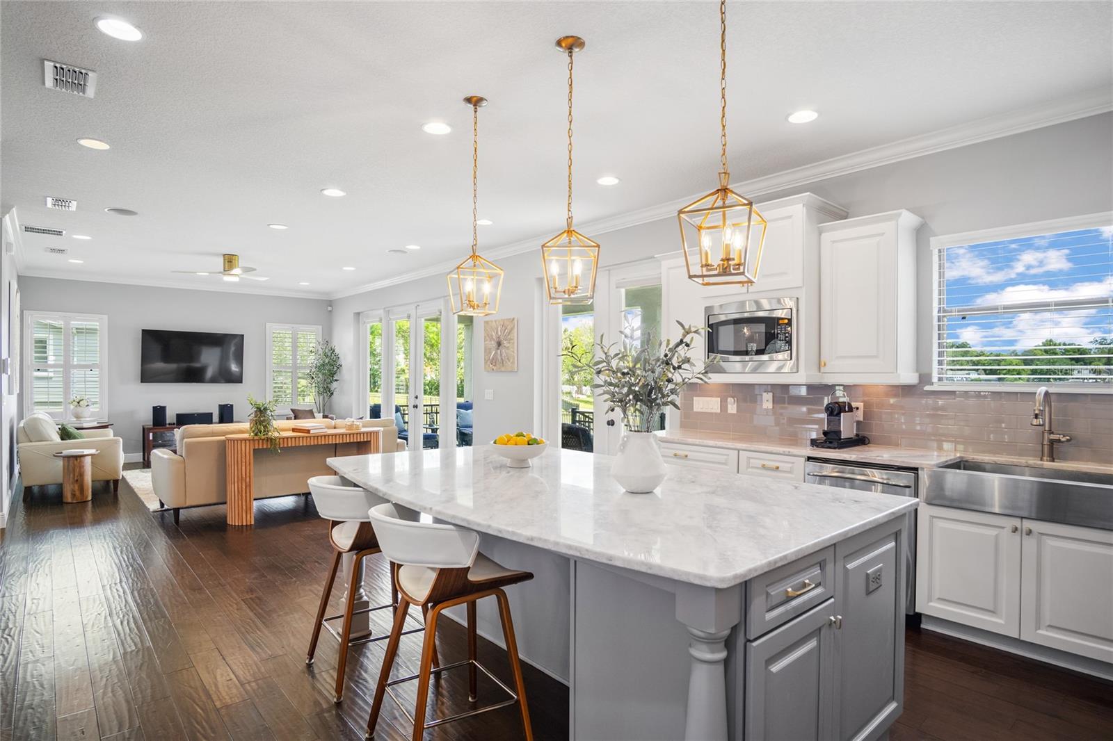 Discover Lake Life Living at Its Best! Welcome to your dream home on the serene shores of Lake Jennie Jewell! This stunning two-story residence boasts 4 spacious bedrooms and 3 pristine bathrooms on approximately a 1 1/2 acre lot, offering a generous 2,629 heated square feet of luxurious living space. Whether you're relaxing by the water or entertaining guests, this home perfectly combines elegance and comfort. As you enter, you’ll find a dedicated office space off the entryway, ideal for remote work or reading. The open-concept downstairs features beautiful wood floors, crown molding, and high ceilings, while recessed lighting and ceiling fans enhance the inviting atmosphere. Ample windows and French doors allow natural light to flood the space, showcasing the stunning views of the lake. The chef’s kitchen is truly a dream, equipped with extensive counter space and a large island to facilitate your culinary adventures. Enjoy the convenience of two pantries designed for easy organization and access. A gas stove with a propane tank promises to make meal preparation a delight. Inviting living areas seamlessly flow into one another, making it easy to entertain while overlooking your private boat dock, complete with electricity for a lift and lights—added in 2016 for your convenience. Head upstairs to discover three guest bedrooms, all carpeted for comfort. One of these rooms is currently being used as a gym and overlooks the backyard, while the other two face the front of the home. The guest bathroom is a spectacle of design, showcasing decorative tile that extends from the bathtub to the ceiling for a touch of luxury. Retreat to the primary bedroom featuring elegant tray ceilings, recessed lights, and an enchanting private balcony—perfect for sipping your morning coffee and soaking in the tranquility of nature. The ensuite bathroom boasts dual vanities, a free-standing tub, and a walk-in closet designed for optimal organization. Recent upgrades ensure peace of mind for new homeowners, including a brand new roof (February 2026), a newly pumped septic tank (December 2025), and a newly installed water heater. Bathrooms were elegantly remodeled in 2021, and the home is equipped with an alarm system, irrigation system, and two HVAC systems for ultimate comfort. Located just south of Downtown Orlando, you are conveniently close to Orlando Health, SODO, and a variety of restaurants, shopping, and entertainment options. With easy access to I-4, Sand Lake Road, and the Orlando International Airport, this home is ideally positioned to enjoy the best of Central Florida living. Don't miss your chance to experience this incredible home—add it to your list of must-see properties today and embrace the Lake Life!
