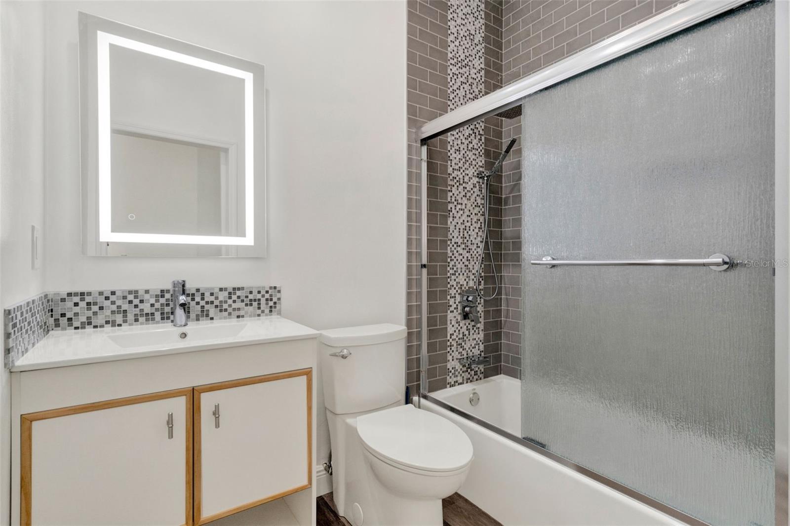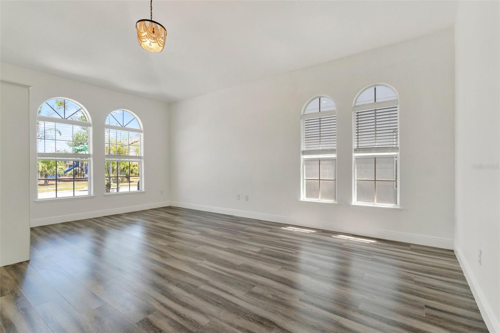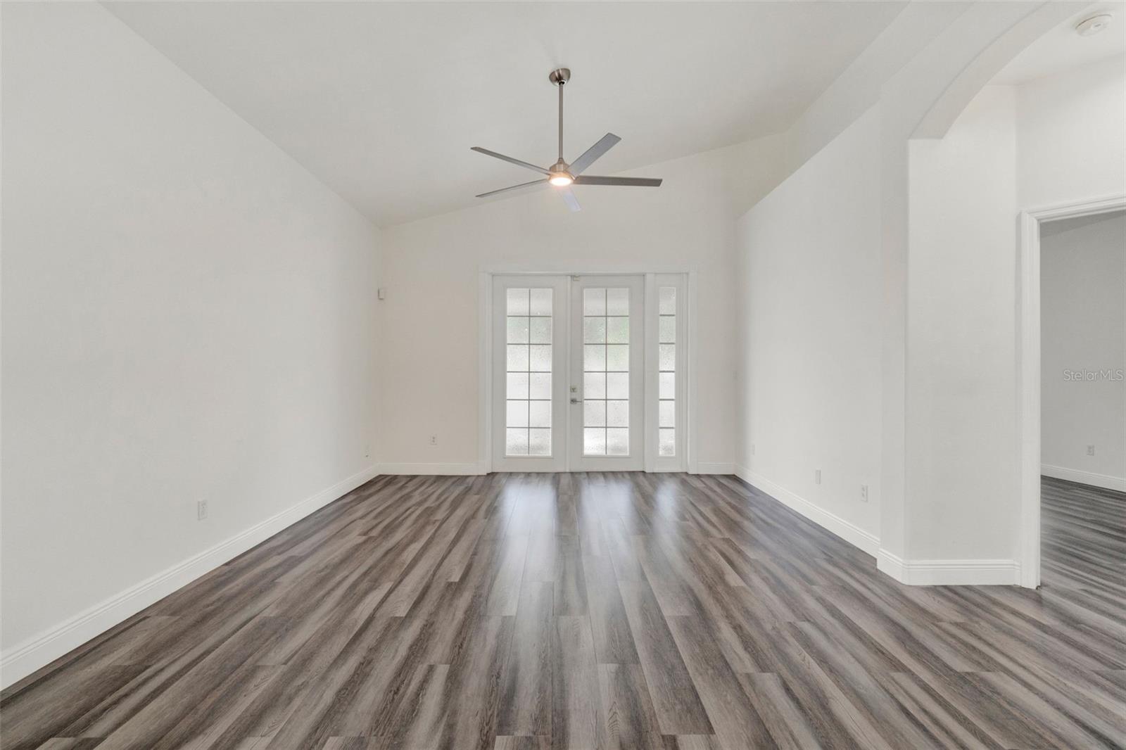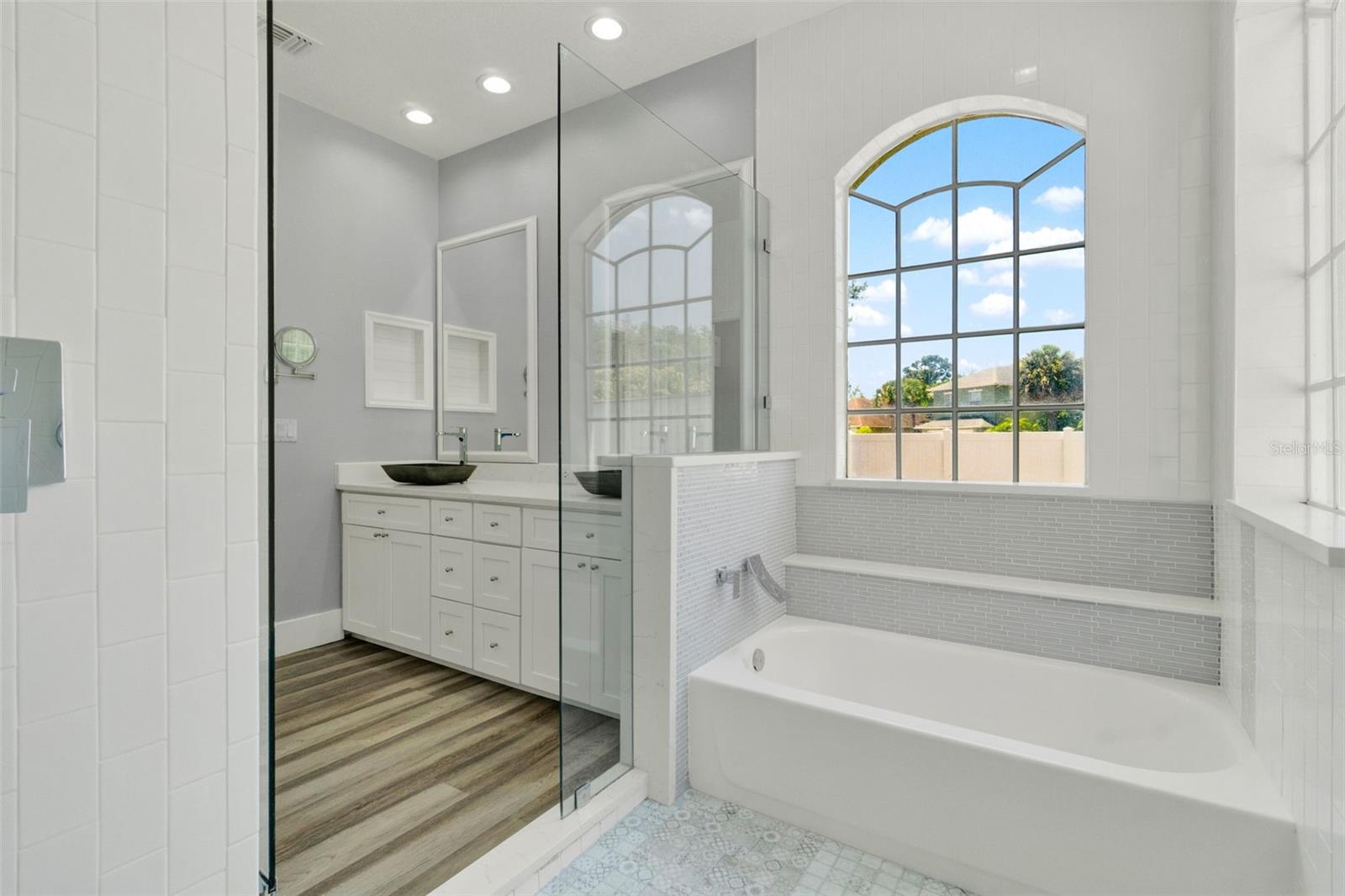 Welcome to this beautifully updated four-bedroom, two-bath home with luxury vinyl flooring throughout and a bright, open layout. The kitchen is a standout, featuring stainless steel appliances, quartz countertops, and plenty of space for cooking and entertaining. The master suite offers a spacious walk-in closet, dual vanities, a soaking tub, a separate shower with dual shower heads, and elegant French doors leading to the bathroom. Two guest bedrooms are accented with crown molding and LED lighting, while the updated guest bathroom showcases stylish tilework. French doors from the living area open to a welcoming porch, perfect for relaxing or hosting guests. Additional highlights include upgraded ceiling lights, a washer and dryer, a new tankless water heater (2024), a newer roof (2023), and a newer AC system (2023). This move-in ready home is in a fantastic location, just minutes from the airport and close to all the shopping, dining, and attractions Orlando has.