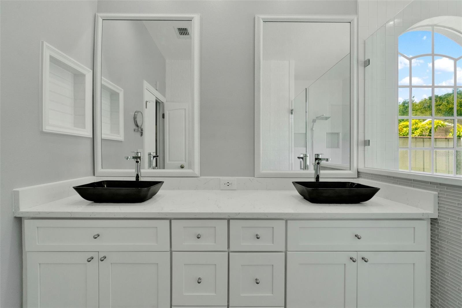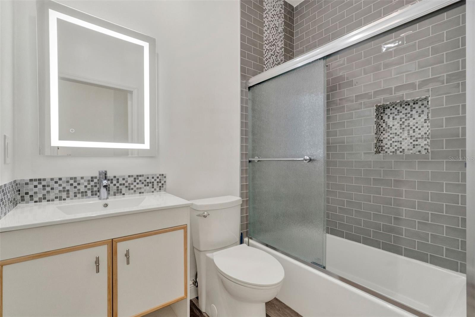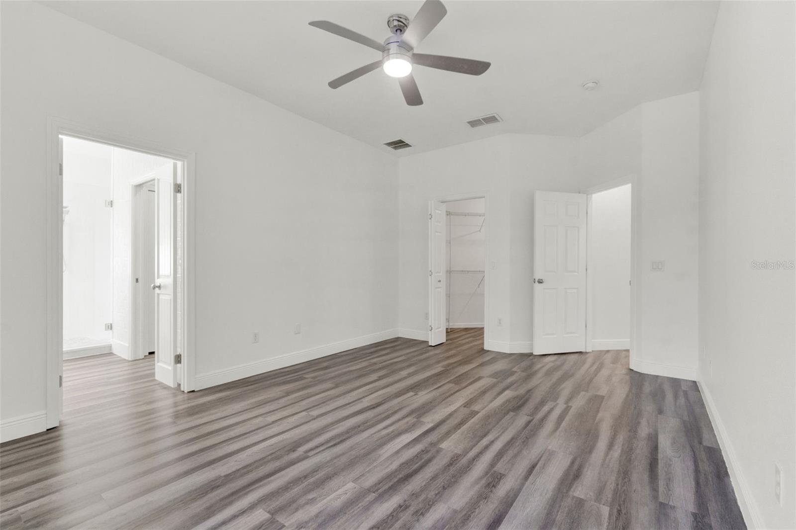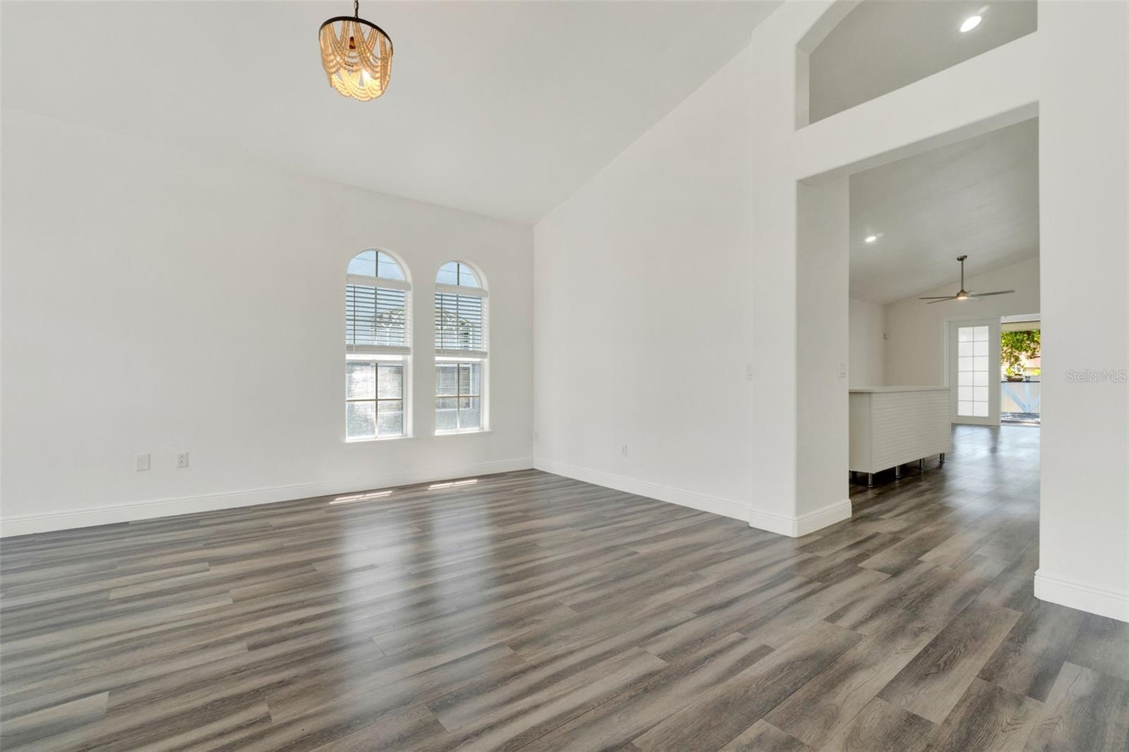 Welcome to this beautifully updated four-bedroom, two-bath home with luxury vinyl flooring throughout and a bright, open layout. The kitchen is a standout, featuring stainless steel appliances, quartz countertops, and plenty of space for cooking and entertaining. The master suite offers a spacious walk-in closet, dual vanities, a soaking tub, a separate shower with dual shower heads, and elegant French doors leading to the bathroom. Two guest bedrooms are accented with crown molding and LED lighting, while the updated guest bathroom showcases stylish tilework. French doors from the living area open to a welcoming porch, perfect for relaxing or hosting guests. Additional highlights include upgraded ceiling lights, a washer and dryer, a new tankless water heater (2024), a newer roof (2023), and a newer AC system (2023). This move-in ready home is in a fantastic location, just minutes from the airport and close to all the shopping, dining, and attractions Orlando has.