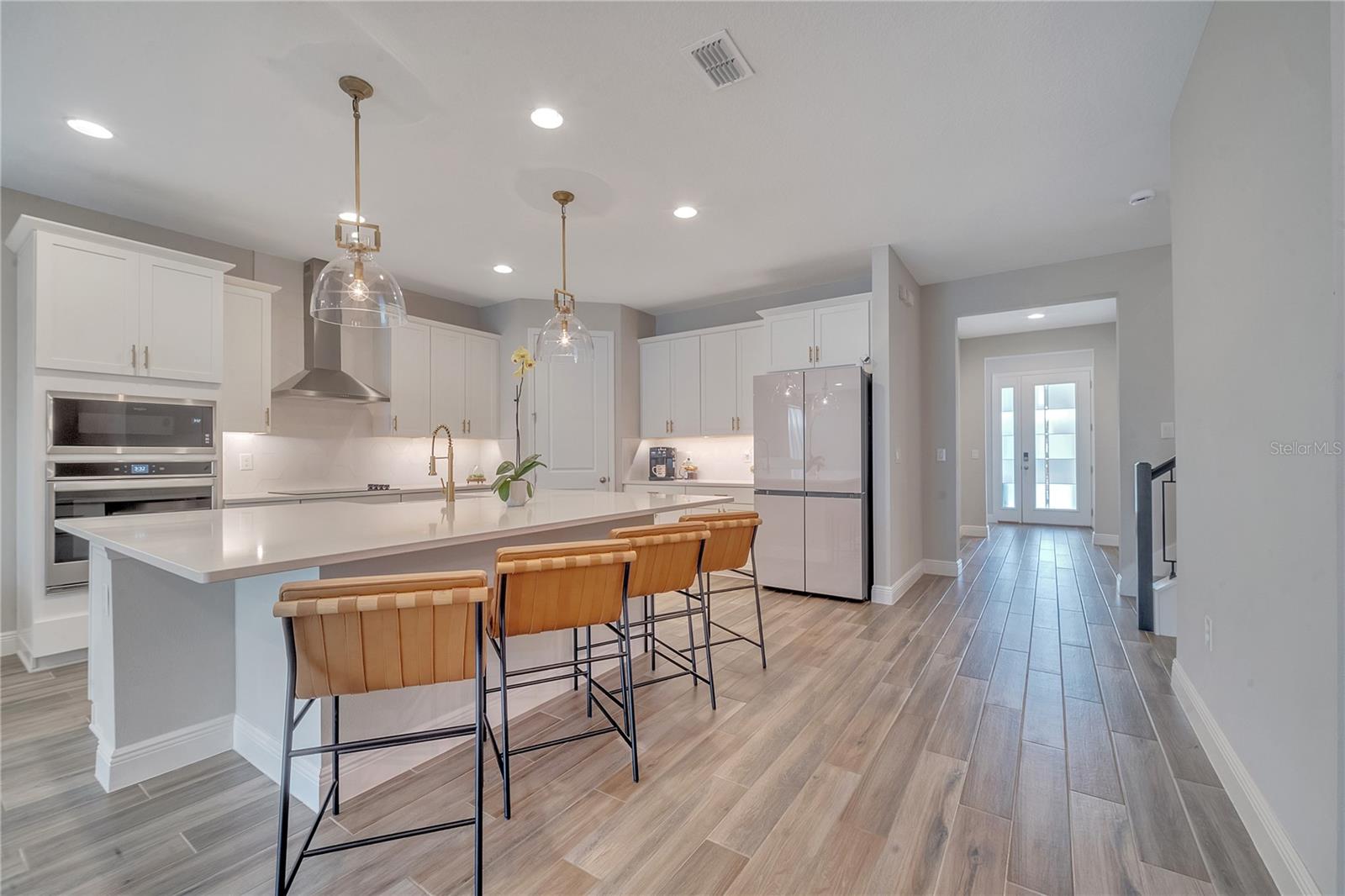 One or more photo(s) has been virtually staged. Priced to sell! Stunning, model-like 4 bed/4 full bath Anna Maria WITH BONUS loft, on a CORNER PREMIUM LOT in one of the newest subdivisions of Lake Nona, Summerdale Park. This immaculate home features over $125,000 worth of structural and design upgrades, including a FRONT PORCH with serene views of the park, pond and incredible sunsets, SECURITY SYSTEM with CAMERAS, Pre-Wired for EV CHARGING STATION, PRE-PLUMBED for OUTDOOR KITCHEN and WATER SOFTENER SYSTEM. The GOURMET KITCHEN is a chef's dream, complete with oversized ISLAND with built in CERAMIC FARMHOUSE SINK, bar seating, STAINLESS STEEL APPLIANCES, HOOD which vents to the outside, ceramic glass stovetop, separate microwave and oven cabinet, designed for entertaining, facing the dining space and OPEN CONCEPT great room. The family room fully opens for indoor/outdoor living with full POCKET DOORS leading to the COVERED LANAI, and is pre-wired for surround sound speakers. High-end WOOD LOOK TILE covers the floors throughout the home, and plush carpet covers the bedrooms. The primary bedroom retreat features TWO WALK-IN CLOSETS, a dual vanity en-suite bathroom, with an extended OVERSIZED WALK-IN SHOWER with double and RAINFALL SHOWERHEADS. The 3 additional spacious bedrooms and bathrooms are in a 3 way SPLIT FLOORPLAN configuration on the first floor for added privacy, and the large 2nd story loft which includes a full bath and walk in closet, which can be easily converted to a 5th bedroom, provides a flexible space to create, work, or entertain. This opulent residence is rounded out by an indoor laundry room with sink pre-plumb, and a 2 car garage, with EPOXY floors and an extra long paver driveway. The community HOA includes HIGH SPEED FIBER OPTIC INTERNET, neighborhood pool, playground, green spaces and Kayak launch pad. Adjacent to Laureate Park, the community is also zoned for Lake Nona's A-rated schools, and close to the airport, major highways, the VA hospital, diverse Michelin star dining, shopping, golf, entertainment, 35 min from theme parks and 50 from the beaches, and the best of the evolving area of Lake Nona!