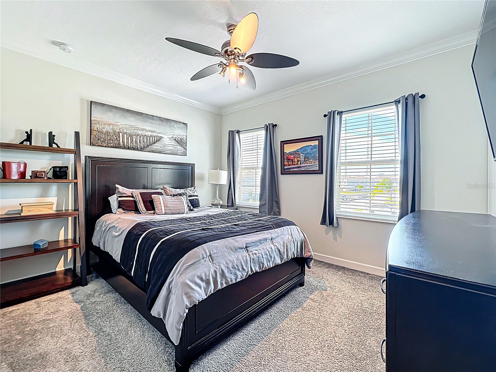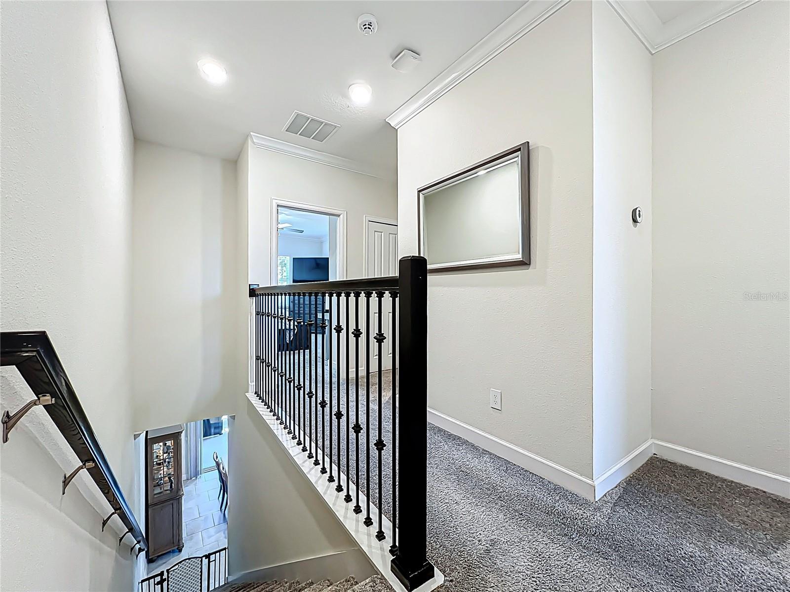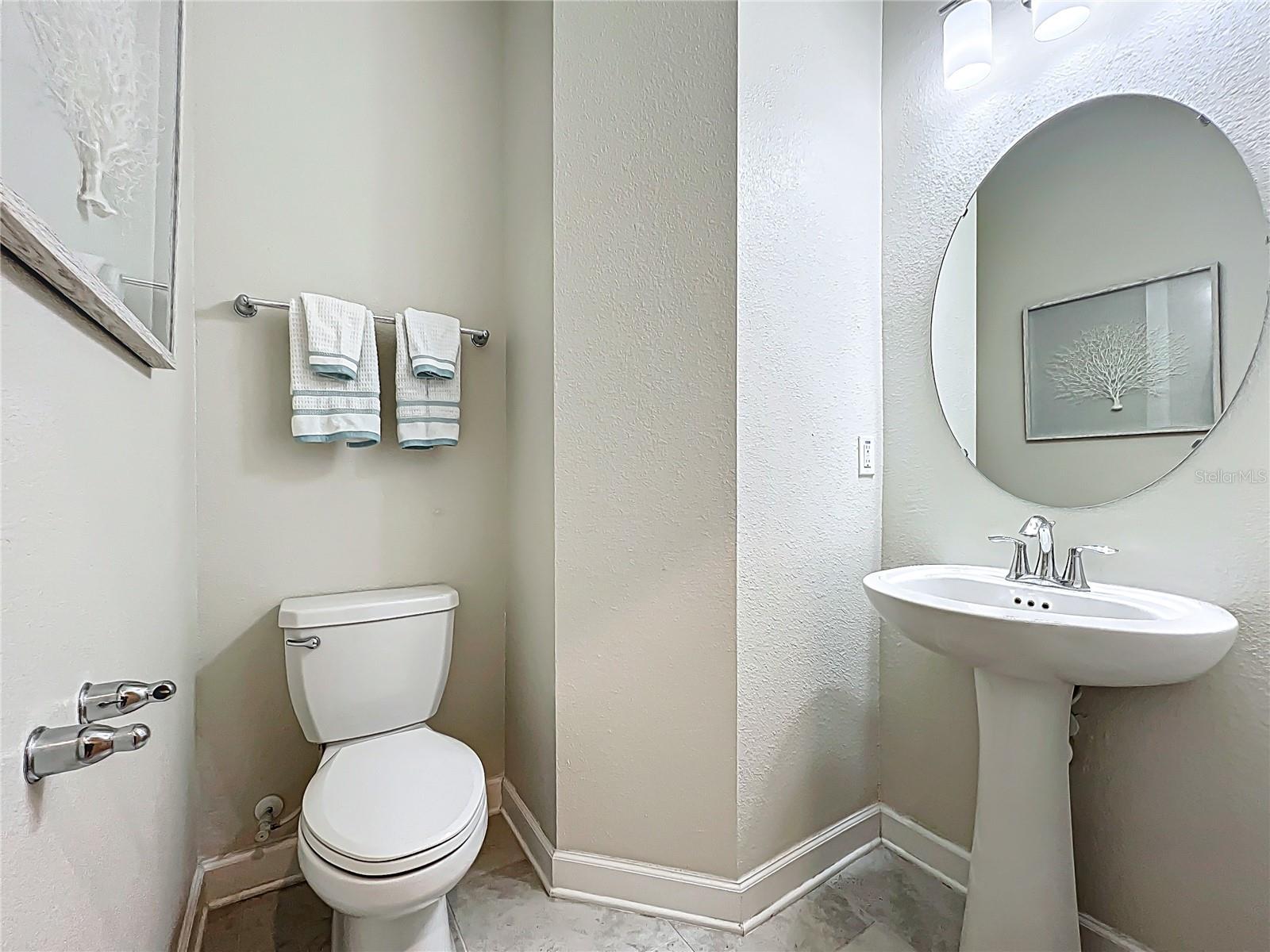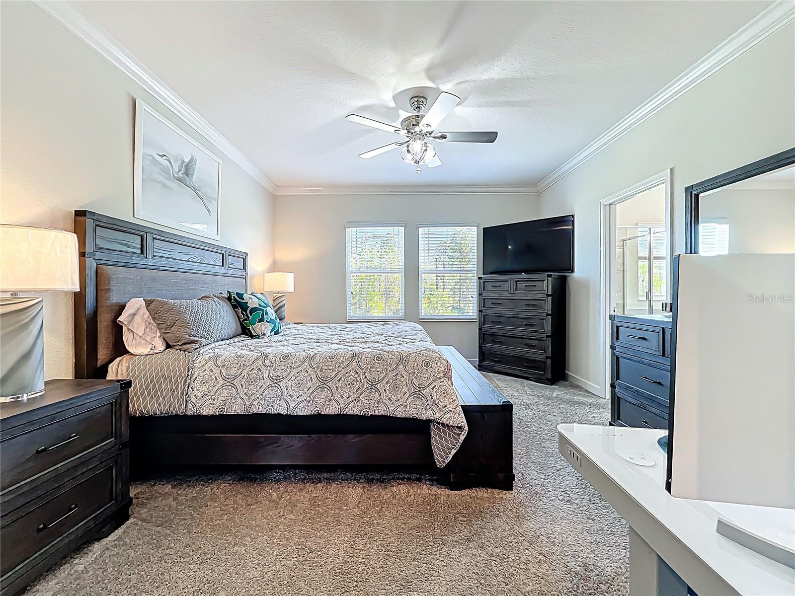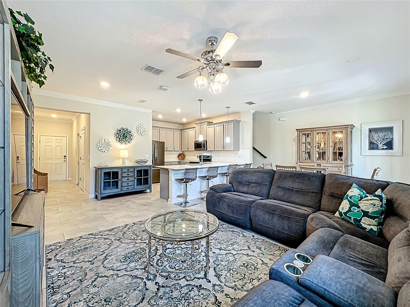 FENCED YARD. EXTENDED SCREEN PORCH. This 3-bedroom, 2.5-bath townhome offers a rare combination of privacy and outdoor living that sets it apart from the rest of the townhouses in this community. It’s the only townhome with a fully fenced-in backyard, ideal for pets or gardening AND the extended screened-in porch creates an outdoor living space. Inside, the open floor plan features a bright living area with light ceramic tile floors throughout the first level. The chef in the family will appreciate a large kitchen with an abundance of cabinets, quartz countertops, tiled backsplash, pantry closet, upgraded stainless steel appliances including a double oven range, microwave/convection combo, and refrigerator with a Keurig. The living and dining room combo is very spacious . A half bath and a 2-car garage with 3 storage racks completes the first floor. Continue upstairs to the generously sized primary suite, offering a comfortable layout that easily accommodates a king bed and additional furnishings. The ensuite bathroom is thoughtfully designed and features dual sinks on a wide vanity, a tiled walk-in shower, and a separate soaking tub—perfect for unwinding after a long day. A large walk-in closet completes the suite, offering abundant storage and organization space. Two additional bedrooms are roomy and share a second full bathroom. There is a laundry ROOM (not a laundry closet) upstairs as well. Notable special features that sets this home apart is crown molding throughout, a whole house water softener/purification system, added storage with the 3 ceiling racks in the garage, the additional living space in the screened room and extra privacy with a wooded view in the back. The Sawgrass Plantation community has an abundance of amenities including a clubhouse, pool, tennis courts, basketball courts, soccer field, dog park, 3 playgrounds, community park with bbq grills, walking trail, picnic areas and plenty of green space throughout. LOCATION is key and this one has it! Orlando International Airport, Amazon warehouse, multiple supermarkets, shopping, area theme parks, attractions and golf are all a short distance away. East coast beaches and Cape Canaveral are just about an hour away adding another special bonus as you can watch the rocket launches from your back yard!
