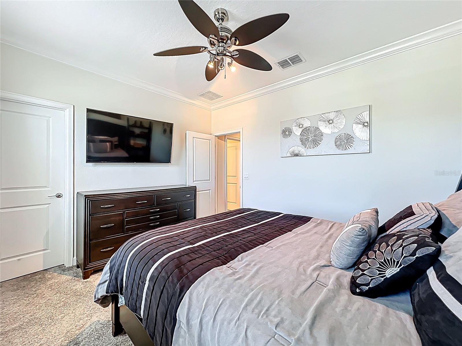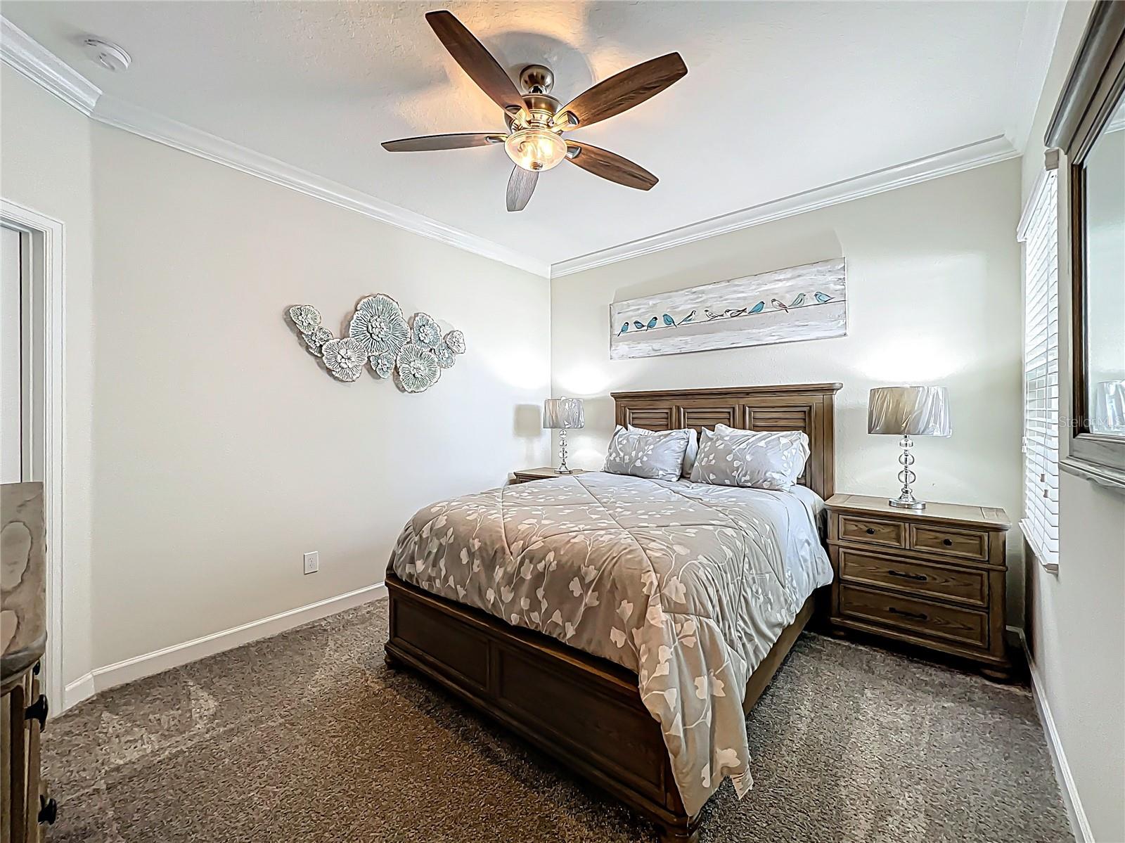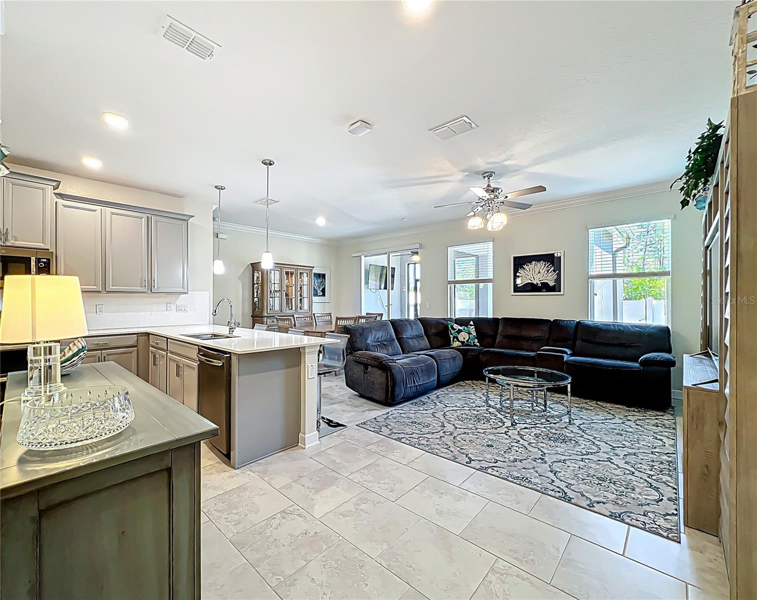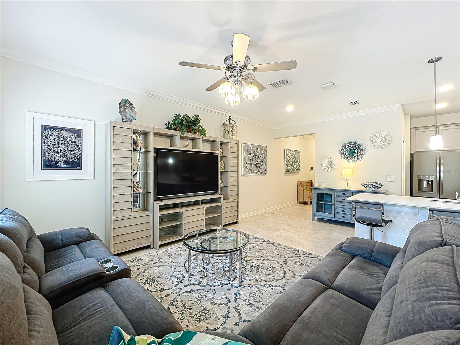 FENCED YARD. EXTENDED SCREEN PORCH. This 3-bedroom, 2.5-bath townhome offers a rare combination of privacy and outdoor living that sets it apart from the rest of the townhouses in this community. It’s the only townhome with a fully fenced-in backyard, ideal for pets or gardening AND the extended screened-in porch creates an outdoor living space. Inside, the open floor plan features a bright living area with light ceramic tile floors throughout the first level. The chef in the family will appreciate a large kitchen with an abundance of cabinets, quartz countertops, tiled backsplash, pantry closet, upgraded stainless steel appliances including a double oven range, microwave/convection combo, and refrigerator with a Keurig. The living and dining room combo is very spacious . A half bath and a 2-car garage with 3 storage racks completes the first floor. Continue upstairs to the generously sized primary suite, offering a comfortable layout that easily accommodates a king bed and additional furnishings. The ensuite bathroom is thoughtfully designed and features dual sinks on a wide vanity, a tiled walk-in shower, and a separate soaking tub—perfect for unwinding after a long day. A large walk-in closet completes the suite, offering abundant storage and organization space. Two additional bedrooms are roomy and share a second full bathroom. There is a laundry ROOM (not a laundry closet) upstairs as well. Notable special features that sets this home apart is crown molding throughout, a whole house water softener/purification system, added storage with the 3 ceiling racks in the garage, the additional living space in the screened room and extra privacy with a wooded view in the back. The Sawgrass Plantation community has an abundance of amenities including a clubhouse, pool, tennis courts, basketball courts, soccer field, dog park, 3 playgrounds, community park with bbq grills, walking trail, picnic areas and plenty of green space throughout. LOCATION is key and this one has it! Orlando International Airport, Amazon warehouse, multiple supermarkets, shopping, area theme parks, attractions and golf are all a short distance away. East coast beaches and Cape Canaveral are just about an hour away adding another special bonus as you can watch the rocket launches from your back yard!