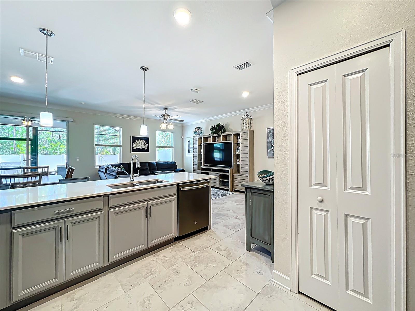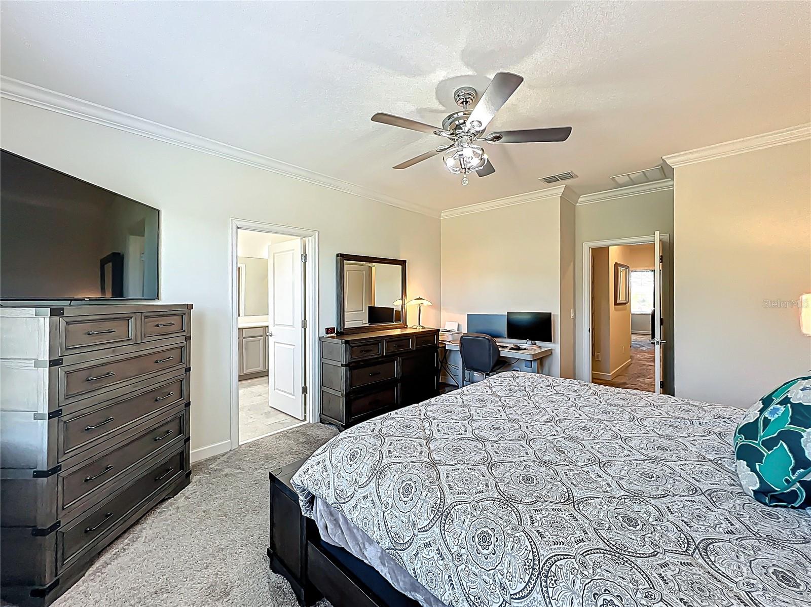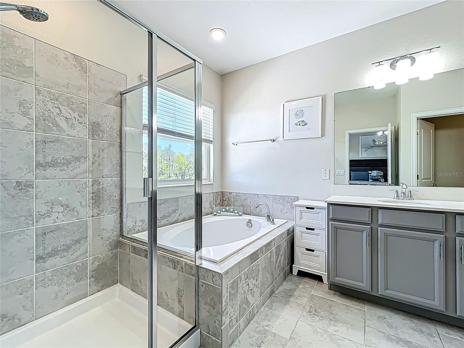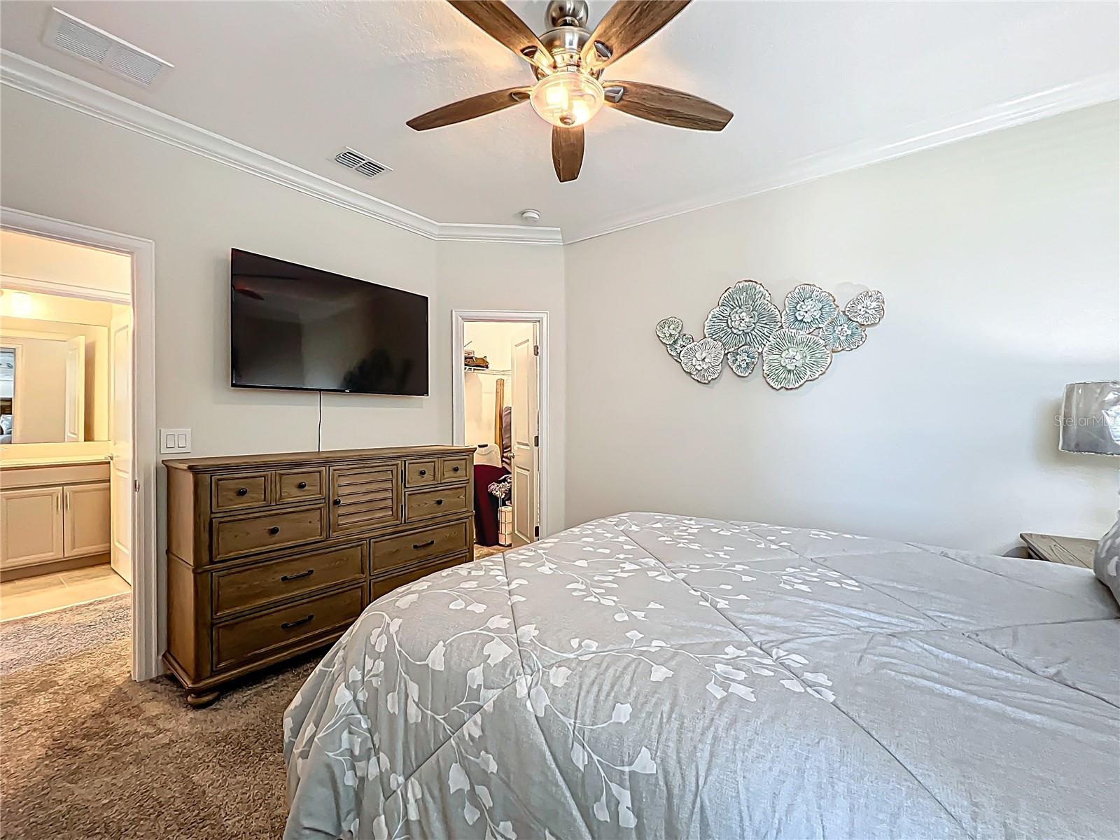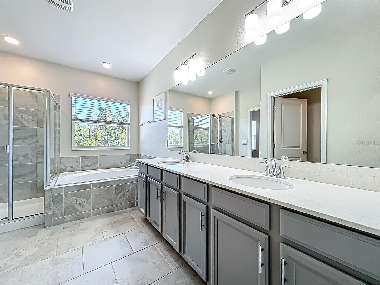 FENCED YARD. EXTENDED SCREEN PORCH. This 3-bedroom, 2.5-bath townhome offers a rare combination of privacy and outdoor living that sets it apart from the rest of the townhouses in this community. It’s the only townhome with a fully fenced-in backyard, ideal for pets or gardening AND the extended screened-in porch creates an outdoor living space. Inside, the open floor plan features a bright living area with light ceramic tile floors throughout the first level. The chef in the family will appreciate a large kitchen with an abundance of cabinets, quartz countertops, tiled backsplash, pantry closet, upgraded stainless steel appliances including a double oven range, microwave/convection combo, and refrigerator with a Keurig. The living and dining room combo is very spacious . A half bath and a 2-car garage with 3 storage racks completes the first floor. Continue upstairs to the generously sized primary suite, offering a comfortable layout that easily accommodates a king bed and additional furnishings. The ensuite bathroom is thoughtfully designed and features dual sinks on a wide vanity, a tiled walk-in shower, and a separate soaking tub—perfect for unwinding after a long day. A large walk-in closet completes the suite, offering abundant storage and organization space. Two additional bedrooms are roomy and share a second full bathroom. There is a laundry ROOM (not a laundry closet) upstairs as well. Notable special features that sets this home apart is crown molding throughout, a whole house water softener/purification system, added storage with the 3 ceiling racks in the garage, the additional living space in the screened room and extra privacy with a wooded view in the back. The Sawgrass Plantation community has an abundance of amenities including a clubhouse, pool, tennis courts, basketball courts, soccer field, dog park, 3 playgrounds, community park with bbq grills, walking trail, picnic areas and plenty of green space throughout. LOCATION is key and this one has it! Orlando International Airport, Amazon warehouse, multiple supermarkets, shopping, area theme parks, attractions and golf are all a short distance away. East coast beaches and Cape Canaveral are just about an hour away adding another special bonus as you can watch the rocket launches from your back yard!