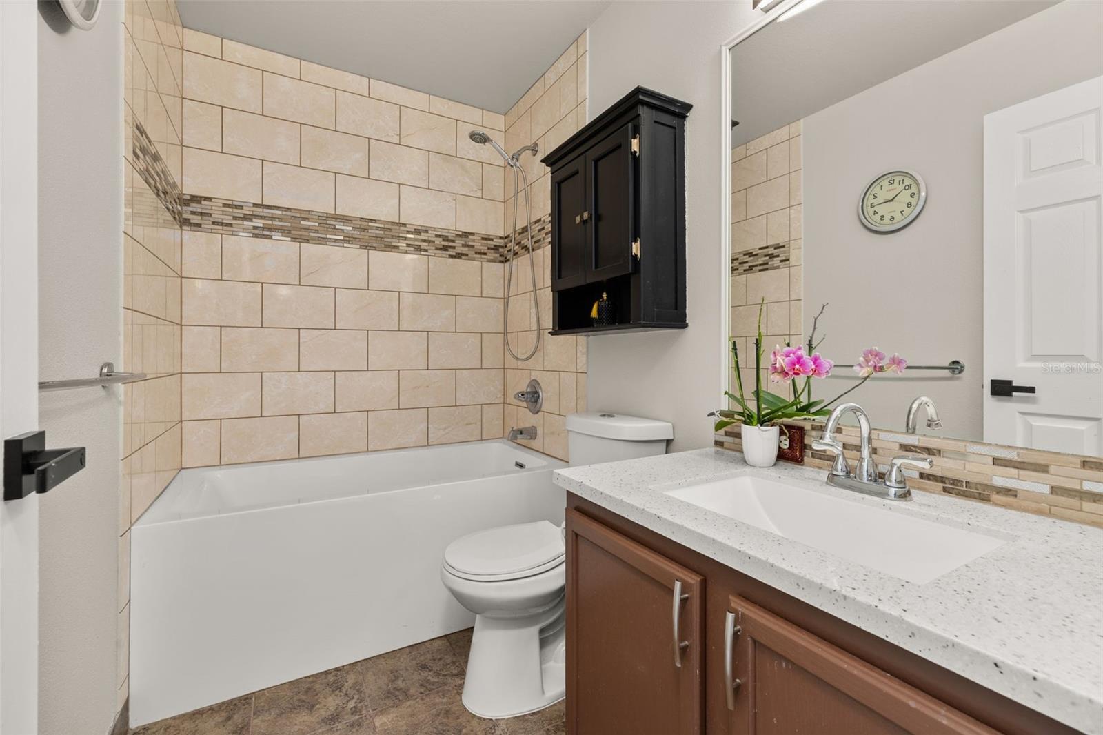 One or more photo(s) has been virtually staged. Meet this neighborhood charm with a Private Spacious Screened Pool, Oversized Fenced Backyard and Mature Landscaping! This immaculate, well maintained two story 4 bedroom 2.5 bathroom single-family home located in a Gated Community of Harbor Lakes comes with a lot of Upgrades, Low HOA and NO CDD fees! The community features a community pool, a playground and is located in a fantastic neighborhood with Top Rated Charter Schools, an easy access to Major Highways - 417, 528, Turnpike, I-4 - as well as close proximity to Lake Nona Medical City, Pediatric Nemours Hospital, the UCF Medical University, Boxi Park, Nona Adventure park, 3 min to Sun Rail station, Hunters Creek area, 10 min drive to Orlando International Airport, short drive to Disney Parks, dining, shopping and entertainment. Orlando Magic Recreation center and Meadow Woods park are just down the road, the home is walking distance to Elementary and Middle public schools. Home features a functional floor plan with ample living spaces including eat-in kitchen, formal dining area and a private separate family room located on the first floor. There is a DURABLE TILE FLOORING throughout the first floor, LED lighting in the family room and dining area, Newer Stainless-Steel Appliances, Granite Countertops, modern light fixtures and a laundry room equipped with New Washer and Dryer. Generously sized DELUXE OWNER'S SUITE is located on the second floor with EN-SUITE bathroom, a Walk-in Shower and a Double Vanity. Three additional bedrooms are also located on the upper floor with a shared Fully Renovated bathroom and an extra deep soaking bathtub. The second level features Wood Flooring as well as LED lighting and Elegant Crown Molding in the primary suite. Outside, enjoy the Florida lifestyle year-round with a generously sized screened-in pool and plenty of space for entertaining. Recent Upgrades include: Pool Pump (2025), Washer/Dryer (2024), Roof Replacement (December 2020), Kitchen Samsung Appliances (2022), Pool Resurfacing (2021), HVAC (2020), New Sliding Doors, Windows Replaced throughout entire home, Newer Water Heater. Optional transferrable home warranty. Schedule your private showing today for a chance to own this beautiful upgraded home in a desirable location where everything is at your doorstep!