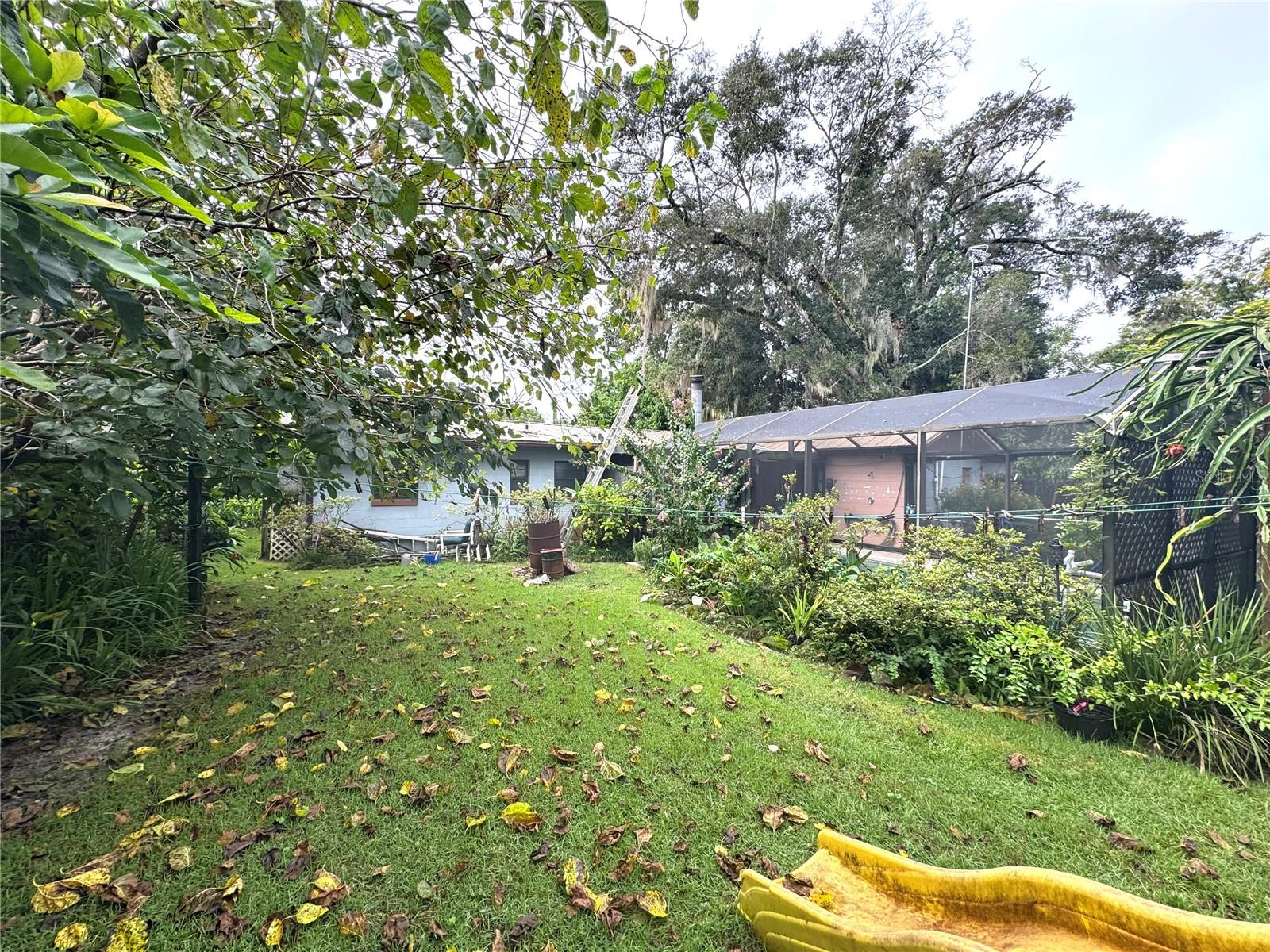 Welcome to this warming and cozy single family pool home. It has 3 bedrooms with 3 full bathrooms. Living and bedrooms flooring have ceramic, laminate and vinyl. Fire place in living room. Kitchen appliances will stay as well as the standup freezer and washer and dryer. 2 ceiling fans, dining room chandelier and primary bathroom vanity will not stay and will be replaced with proper items. New AC Unit installed in 2023; 2020 Roof; next to the electric panel has been added connections for a generator to provide electricity in some of the lights and appliances in the house. Security cameras with recording box. Workshop with power 225sq/ft with loft and covered outside storage. There is irrigation system with Wi-Fi control box on well water. The enclosed pool has a child proof fence, and pool pump is with solar panels; septic tank has been done 3 years ago. There are lots of amenities waiting for nature lovers in the back yard with several fruit trees mango, avocados, papayas mulberry, lemon, dragon fruit & pineapple, 15’ x 50’ garden area. Enclosed carport has its own private entrance, built in entertainment center and could be used as in-law suite o 2nd main bedroom. 2 attic access areas for additional storage.